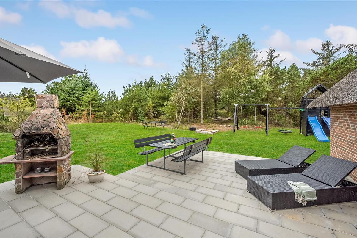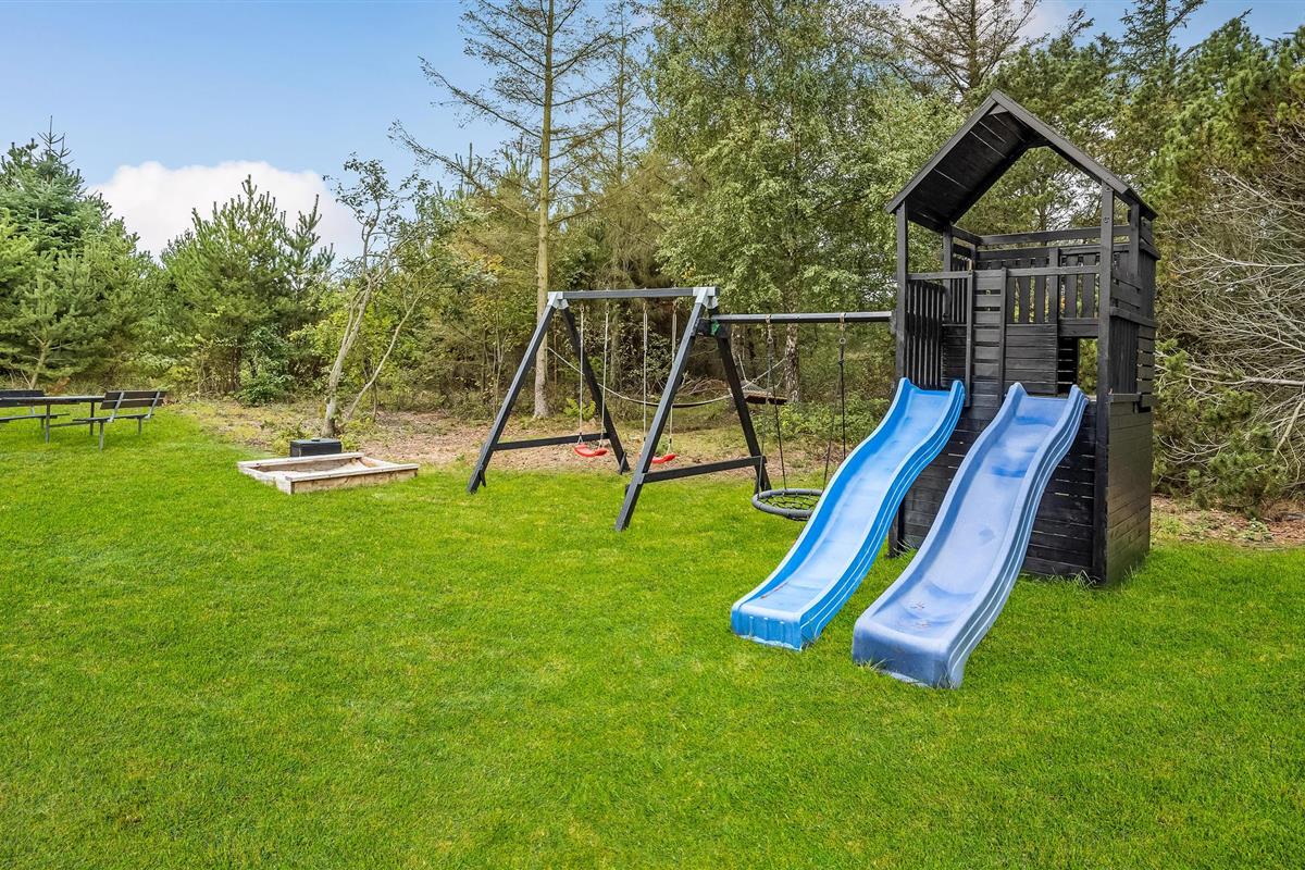 Ruim en comfortabel vakantiehuis nabij Søndervig met zwembad, sauna en speelterrein voor kinderen.