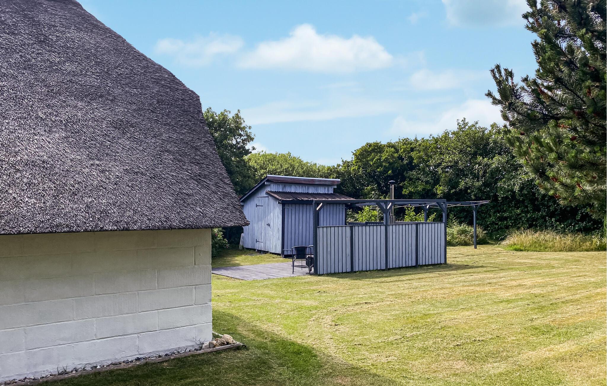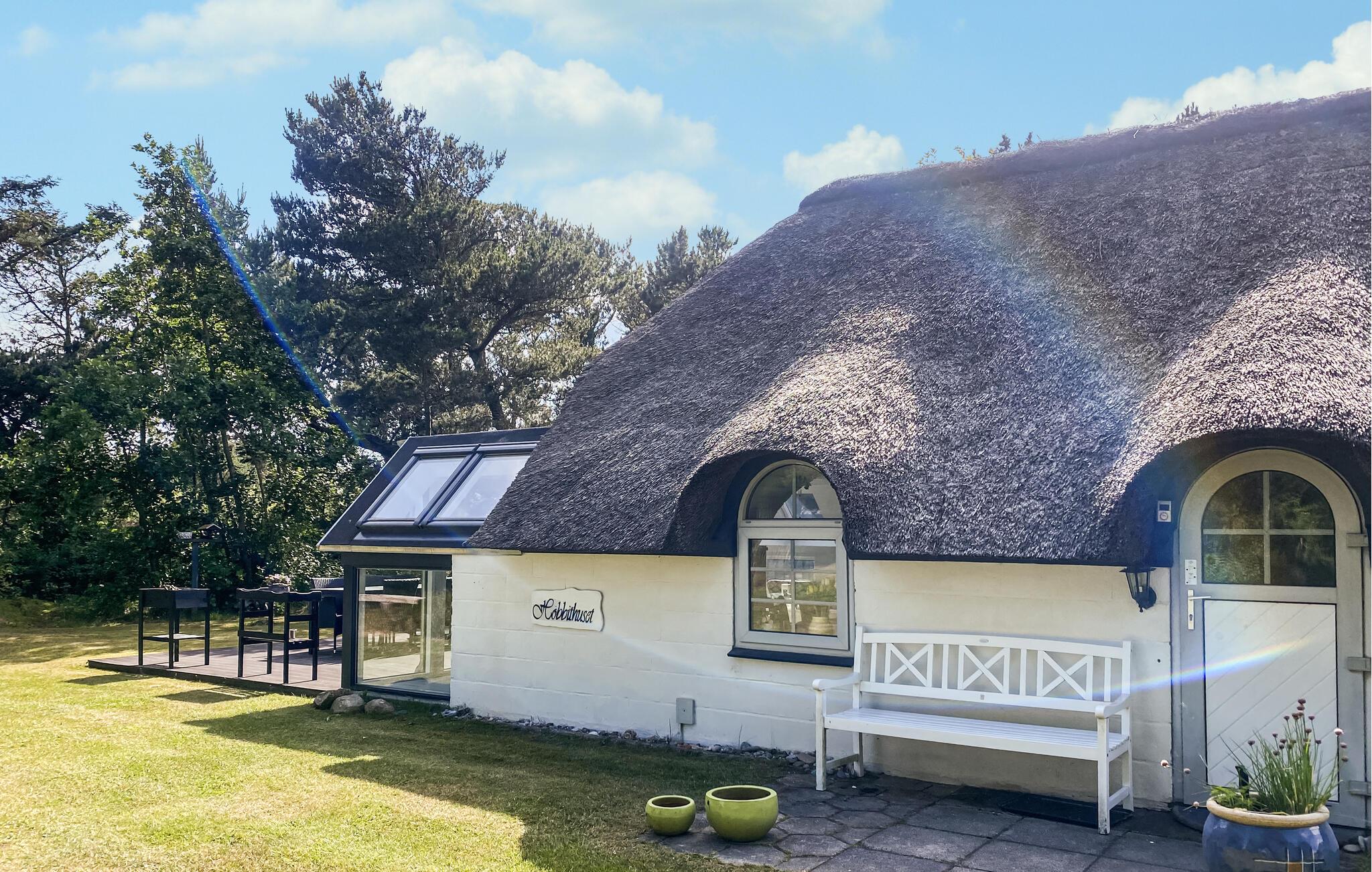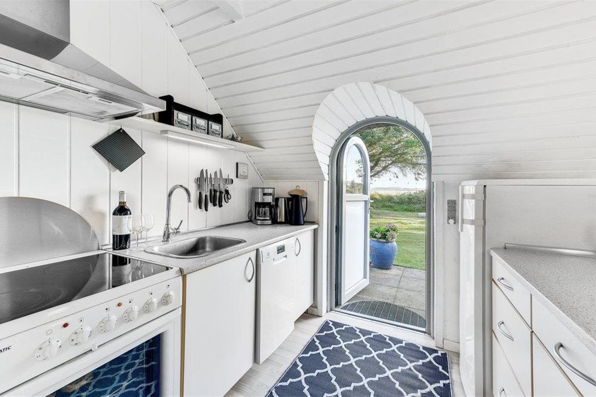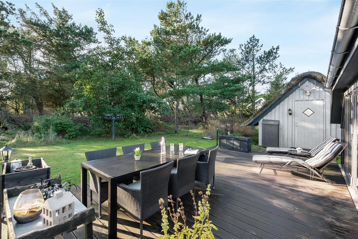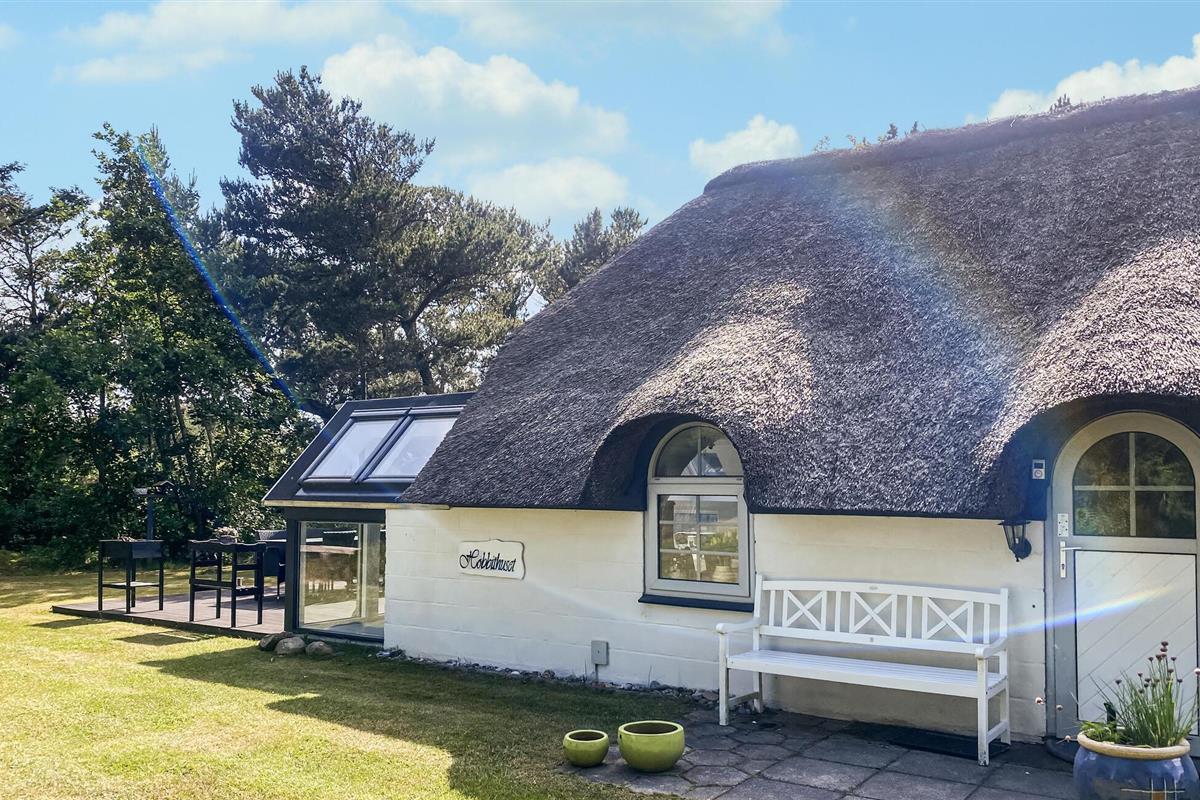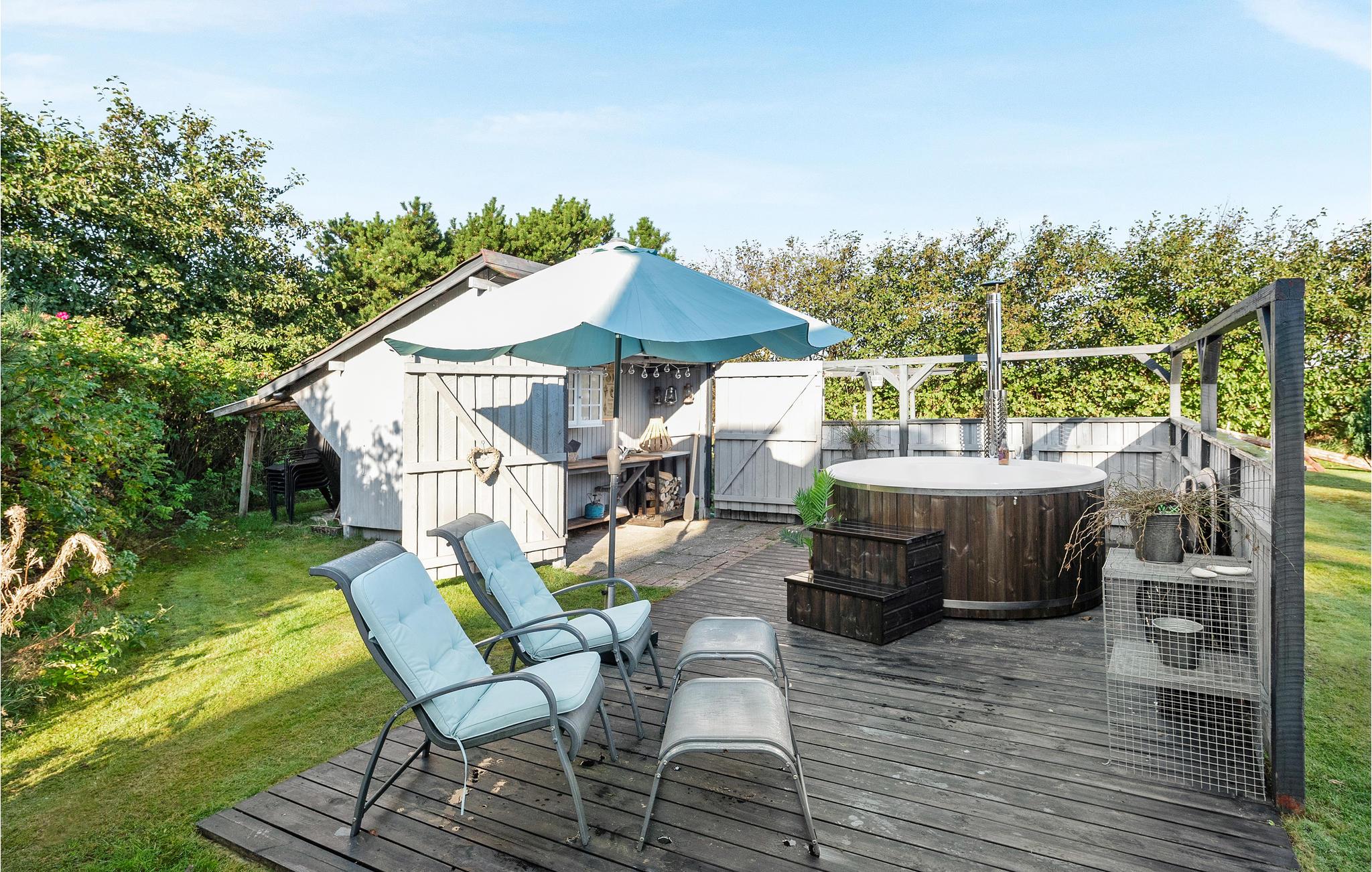 Kijk uit naar het uitzicht op de open vlaktes en velden. Het huis heeft een ideale locatie, op loopafstand van het populaire toeristische stadje Søndervig en de prachtige Noordzee. Het huis biedt een open en lichte keuken, eethoek en woonkamer, die u uitnodigt om veel gezellige tijd door te brengen met het hele gezin. Er is ook een badkamer met douche en vloerverwarming, 2 slaapkamers en een gezellige zolder. Het huis wordt verwarmd door een warmtepomp en heeft een houtkachel voor extra warmte en gezelligheid in de lange avonden. Vanuit de woonkamer heeft u toegang tot een van de terrassen van het huis. Vanaf hier heeft u toegang tot een bijgebouw met nog een slaapkamer en een gastentoilet.