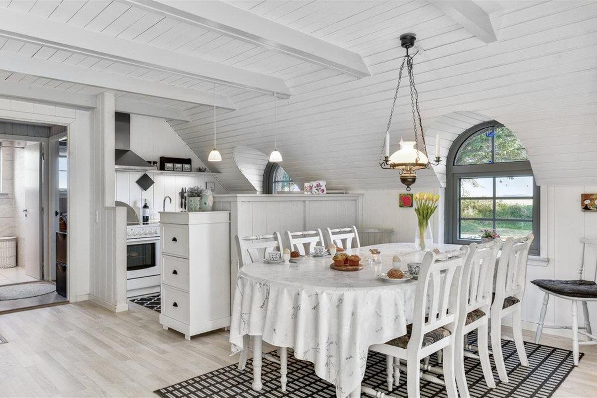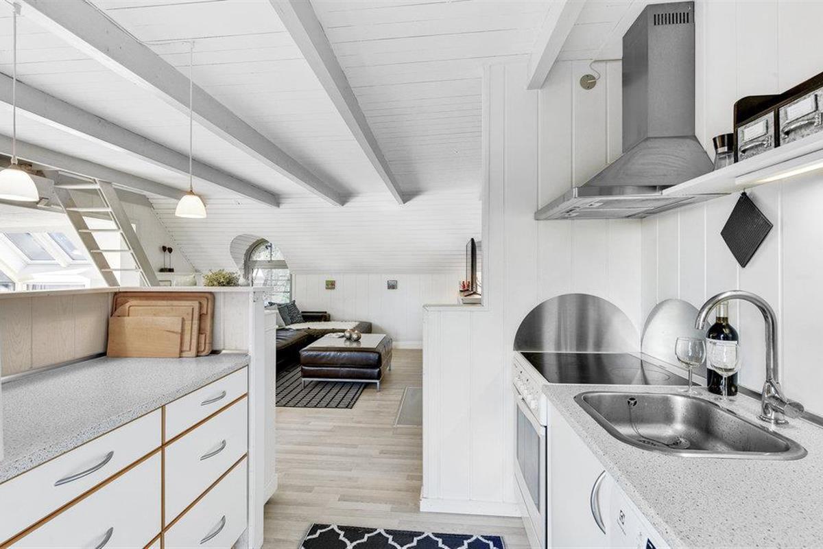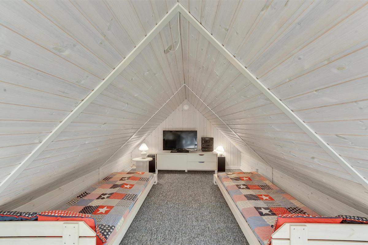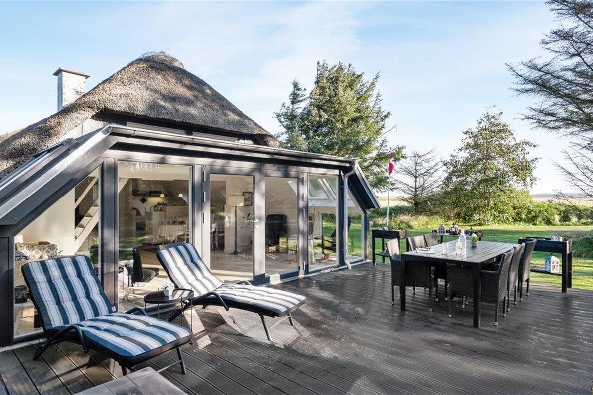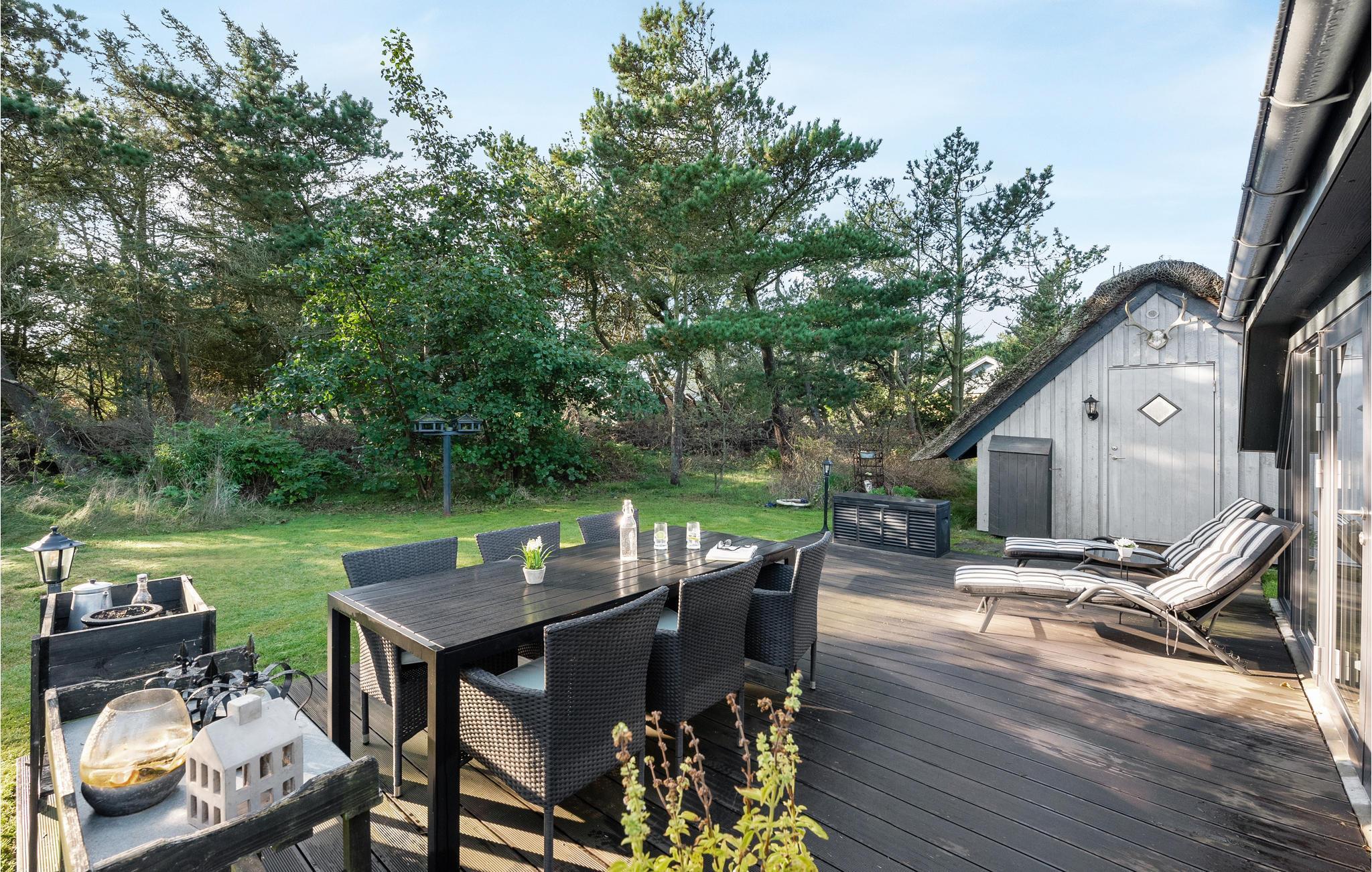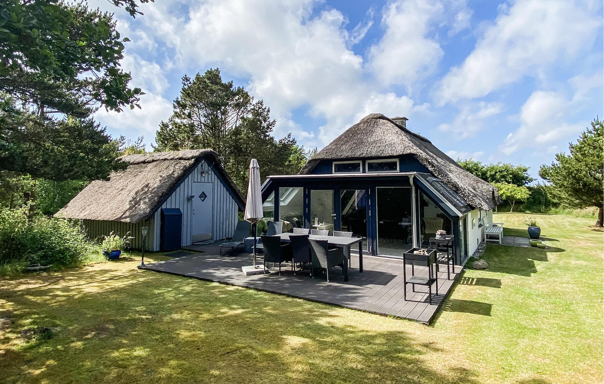 Kijk uit naar het uitzicht op de open vlaktes en velden. Het huis heeft een ideale locatie, op loopafstand van het populaire toeristische stadje Søndervig en de prachtige Noordzee. Het huis biedt een open en lichte keuken, eethoek en woonkamer, die u uitnodigt om veel gezellige tijd door te brengen met het hele gezin. Er is ook een badkamer met douche en vloerverwarming, 2 slaapkamers en een gezellige zolder. Het huis wordt verwarmd door een warmtepomp en heeft een houtkachel voor extra warmte en gezelligheid in de lange avonden. Vanuit de woonkamer heeft u toegang tot een van de terrassen van het huis. Vanaf hier heeft u toegang tot een bijgebouw met nog een slaapkamer en een gastentoilet.