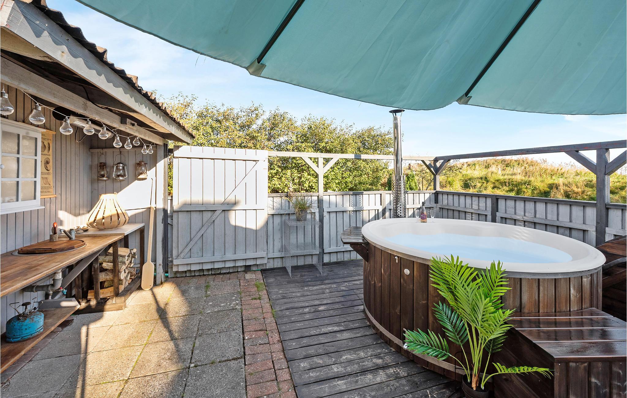 Ontspan en maak het uzelf gemakkelijk op het tweede terras, waar zich een wildernisbad bevindt met plaats voor 6 personen. Naast het wildernisbad is een buitenkeuken waar u heerlijke drankjes kunt bereiden voor een gezellige avond in het warme water.