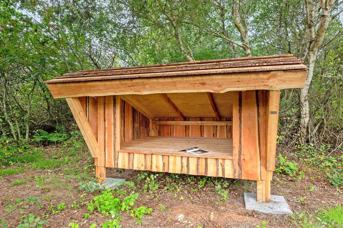 Op het terrein staat een afdak voor overnachtingen buiten. Er is een oplaadpunt voor elektrische auto's bij het huis.
