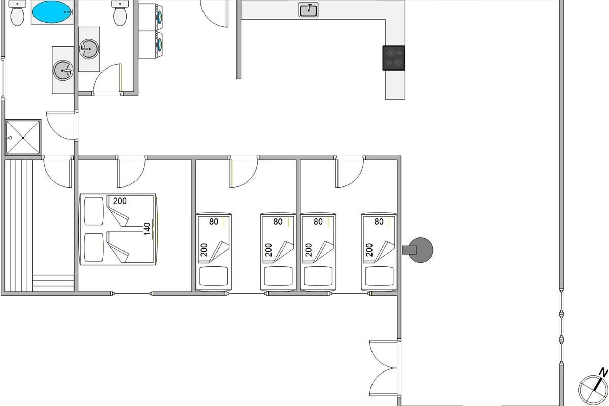Mit insgesamt drei Schlafzimmern bietet das Ferienhaus genügend Platz für bis zu sechs Personen. Ein Doppelbett (140 cm x 200 cm) und vier Einzelbetten sorgen für erholsamen Schlaf nach einem langen Tag an der frischen Seeluft. Das Badezimmer mit Fußbodenheizung ist mit einem entspannenden Whirlpool und einer Sauna ausgestattet, sodass ihr euch in einer privaten Wellness-Oase rundum verwöhnen lassen könnt. Zudem verfügt das Haus über eine praktische Gästetoilette, die für einen entspannten Start in den Tag sorgt. Die praktischen Alltagshelfer, die Waschmaschine und der Trockner stehen bereit, sodass ihr nur eure Lieblingskleidung einpacken müsst.