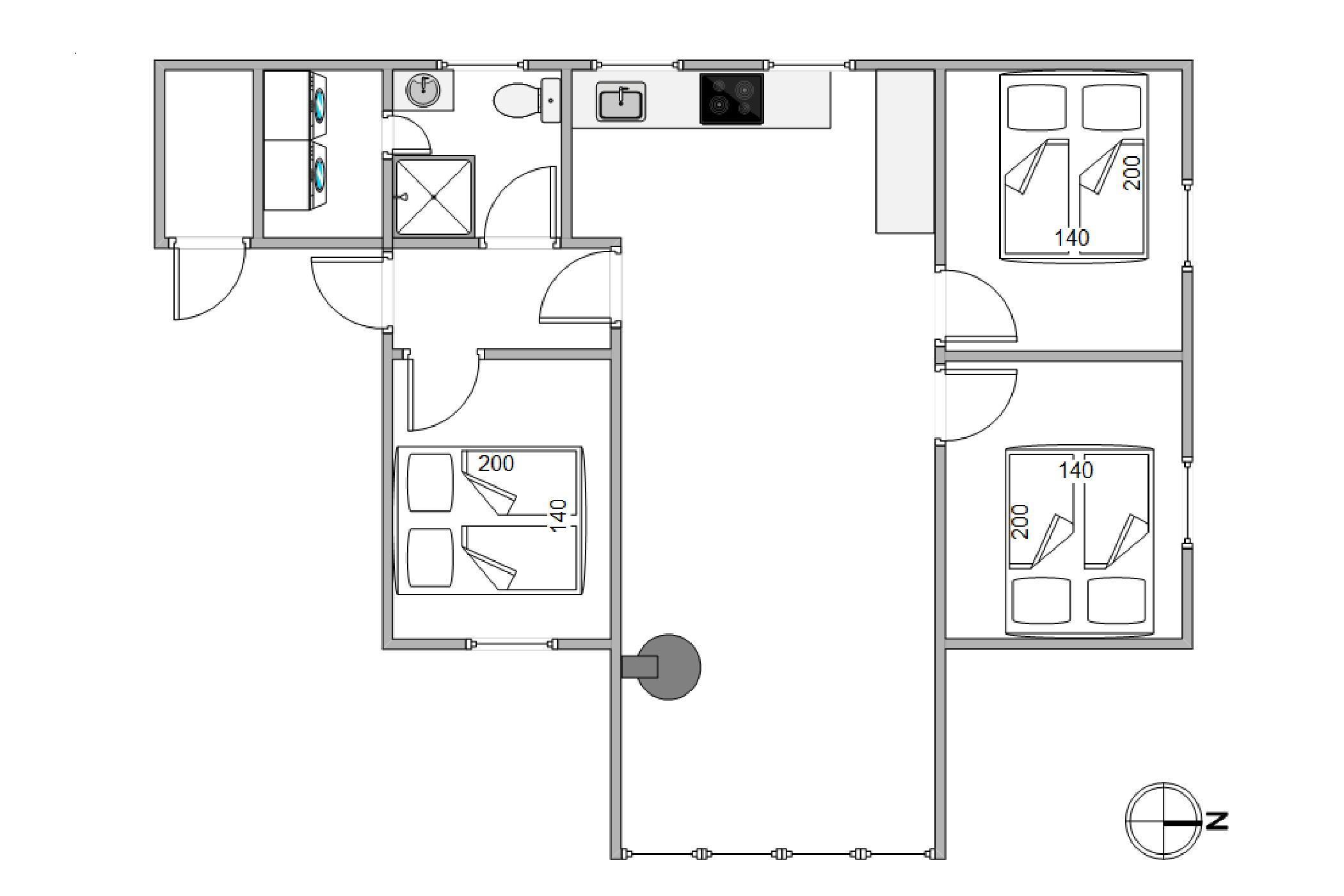 The heart of this holiday home close to the beach is the bright living area, seamlessly connected to the open-plan modern kitchen, which is fully equipped with everything you need to prepare delicious meals. On cooler days, you can settle comfortably on the sofa and watch through the large panoramic windows as the wild westerly winds ruffle the dune grasses. The cosy warmth from the crackling wood-burning stove creates a relaxing holiday atmosphere.