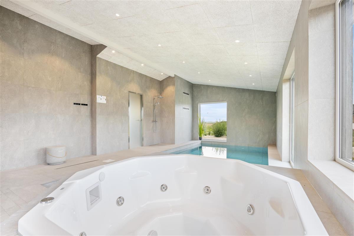 Looking for a holiday home that offers both fun and relaxation? This pool house built in 2023, complete with games room, at Sand Holms Vej 62 in Søndervig is perfect for you. Ideal for family holidays or getaways with friends, while your two dogs are warmly welcome too. The games room features a pool table and table tennis for holiday entertainment, while the large indoor pool provides endless fun. For relaxation, you'll appreciate the outdoor sauna and whirlpool. If you're arriving by electric car, there's no need to worry about charging - the holiday home offers an on-site charging point.
