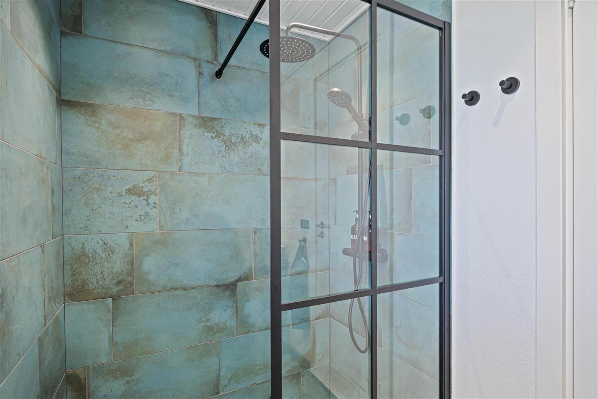 The holiday home has its own charm, combining light and dark colours throughout. Large windows flood the interior with natural light at any time of day. While spacious, the house maintains a cosy and comfortable atmosphere throughout.