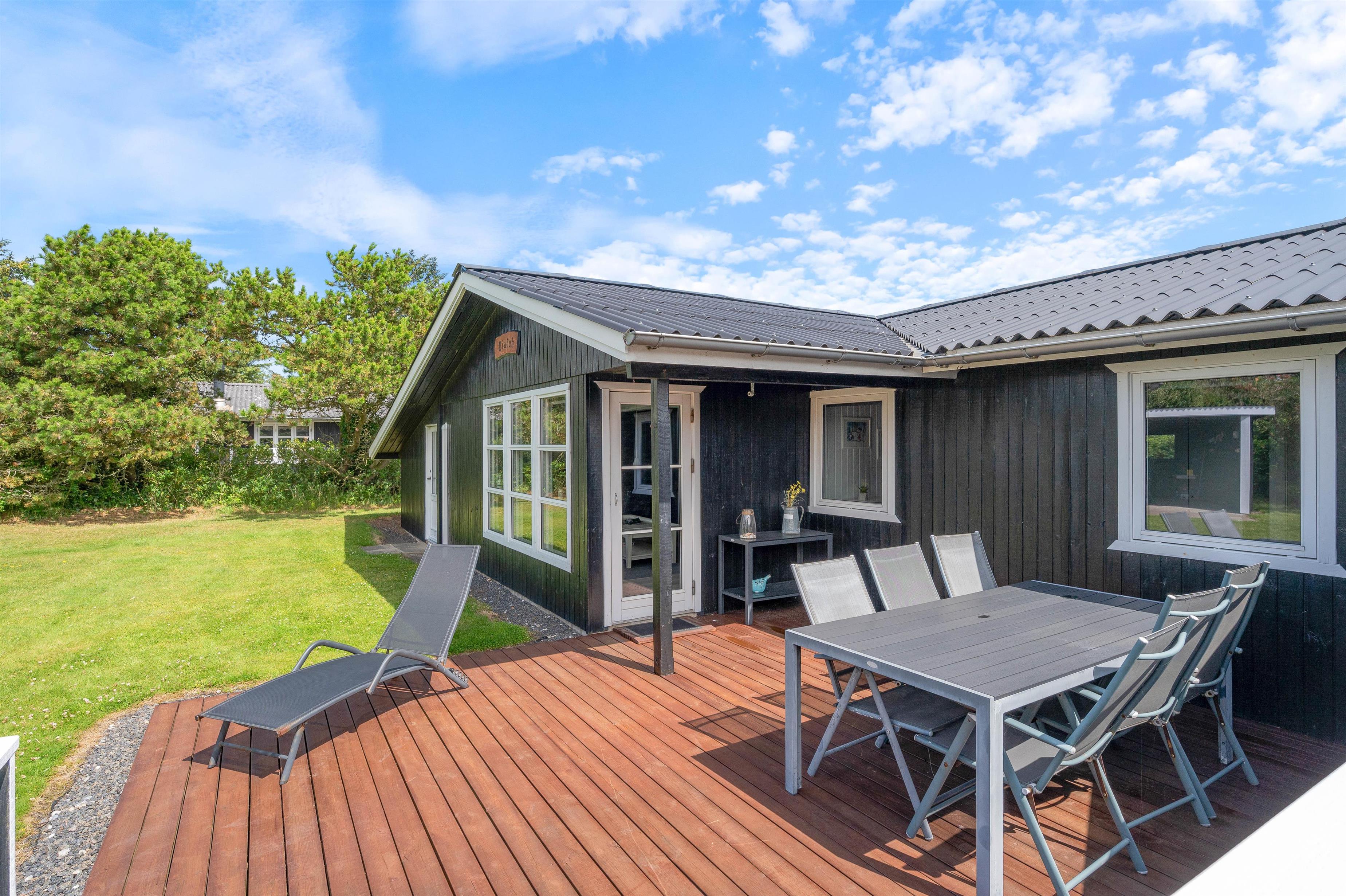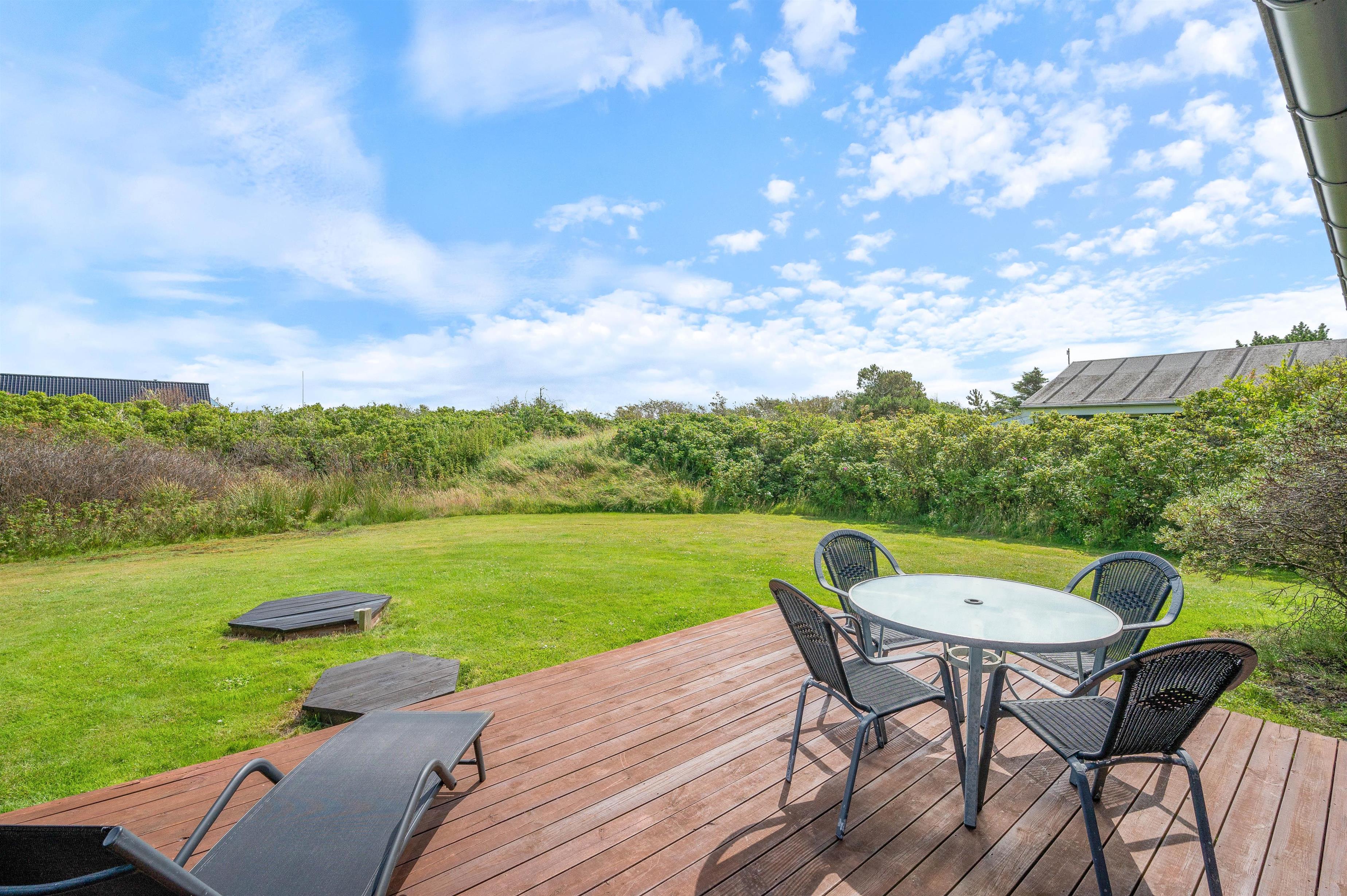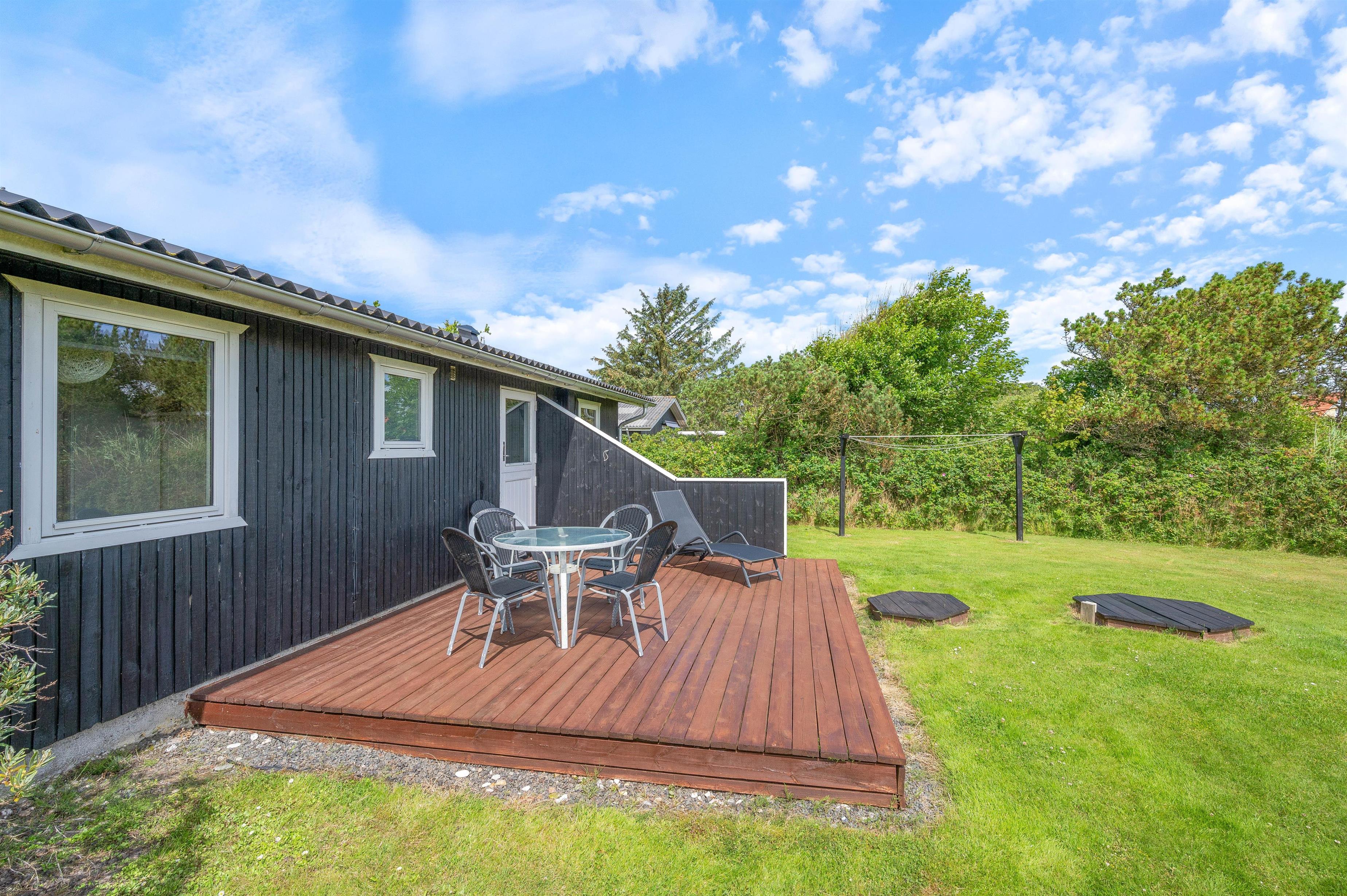 The outdoor area of the holiday home in Søndervig is a true paradise for outdoor enthusiasts. An open terrace, a screened terrace, and a covered terrace offer numerous opportunities to enjoy the fresh air. The garden furniture invites relaxed gatherings, while delicious meals can be prepared on the barbecue. For younger guests, there's a swing and sandpit providing entertainment. The North Sea is just 550 metres away and within walking distance, perfect for extended beach walks and spectacular sunsets. Shopping facilities are only 250 metres away and easily accessible on foot, ensuring you're always well supplied.