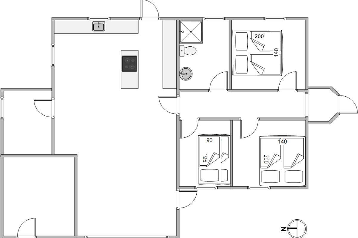 The holiday home impresses with its well-thought-out features. The living room centres around a welcoming wood-burning stove, providing comfortable warmth on cool evenings. An energy-efficient air-to-air heat pump ensures a constant and pleasant indoor climate. The well-equipped kitchen, complete with dishwasher, makes every meal a pleasure. With three bedrooms – two with double beds and one with two bunk beds – there's plenty of space for the whole family. The washing machine helps reduce your holiday packing.