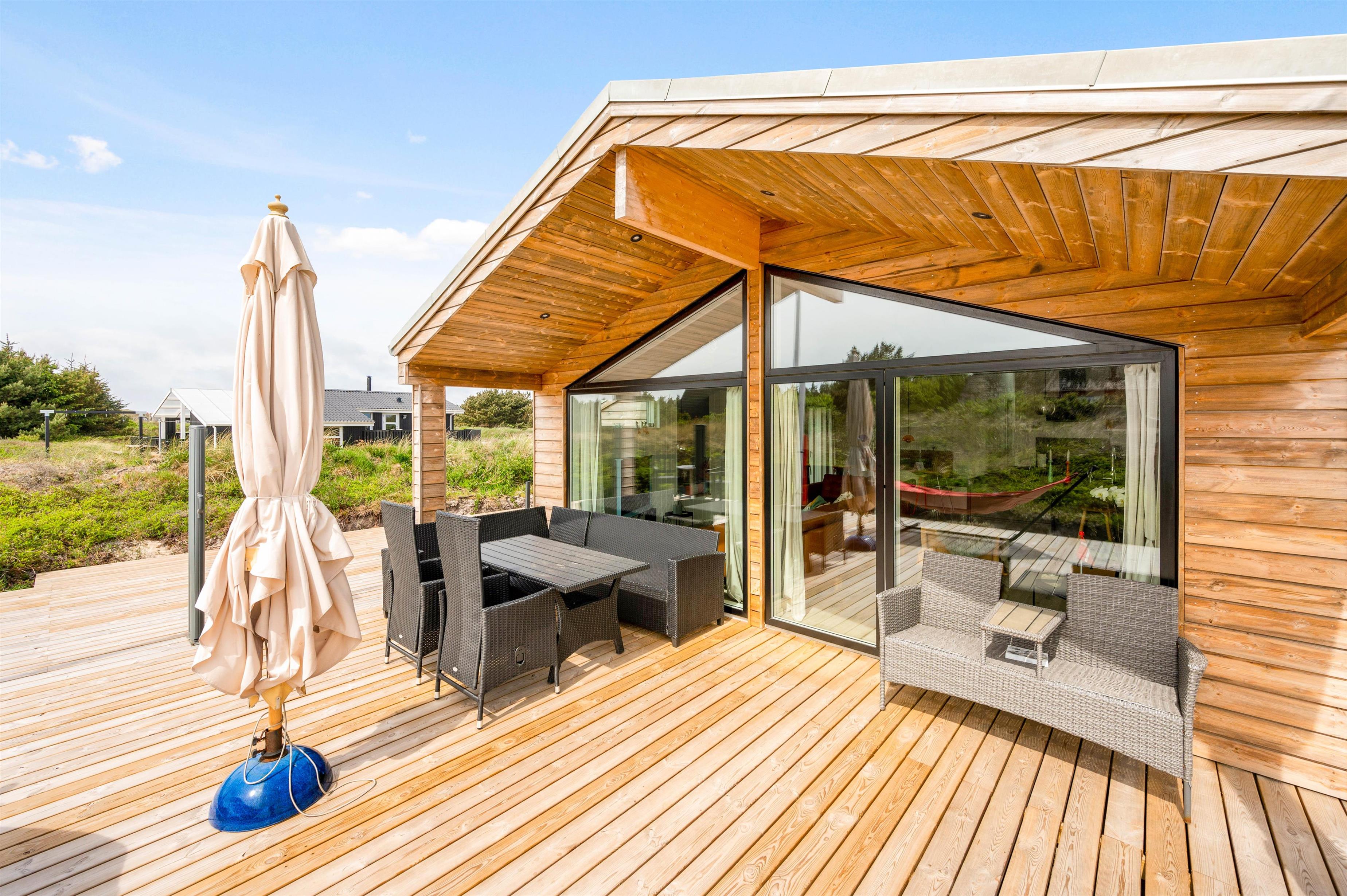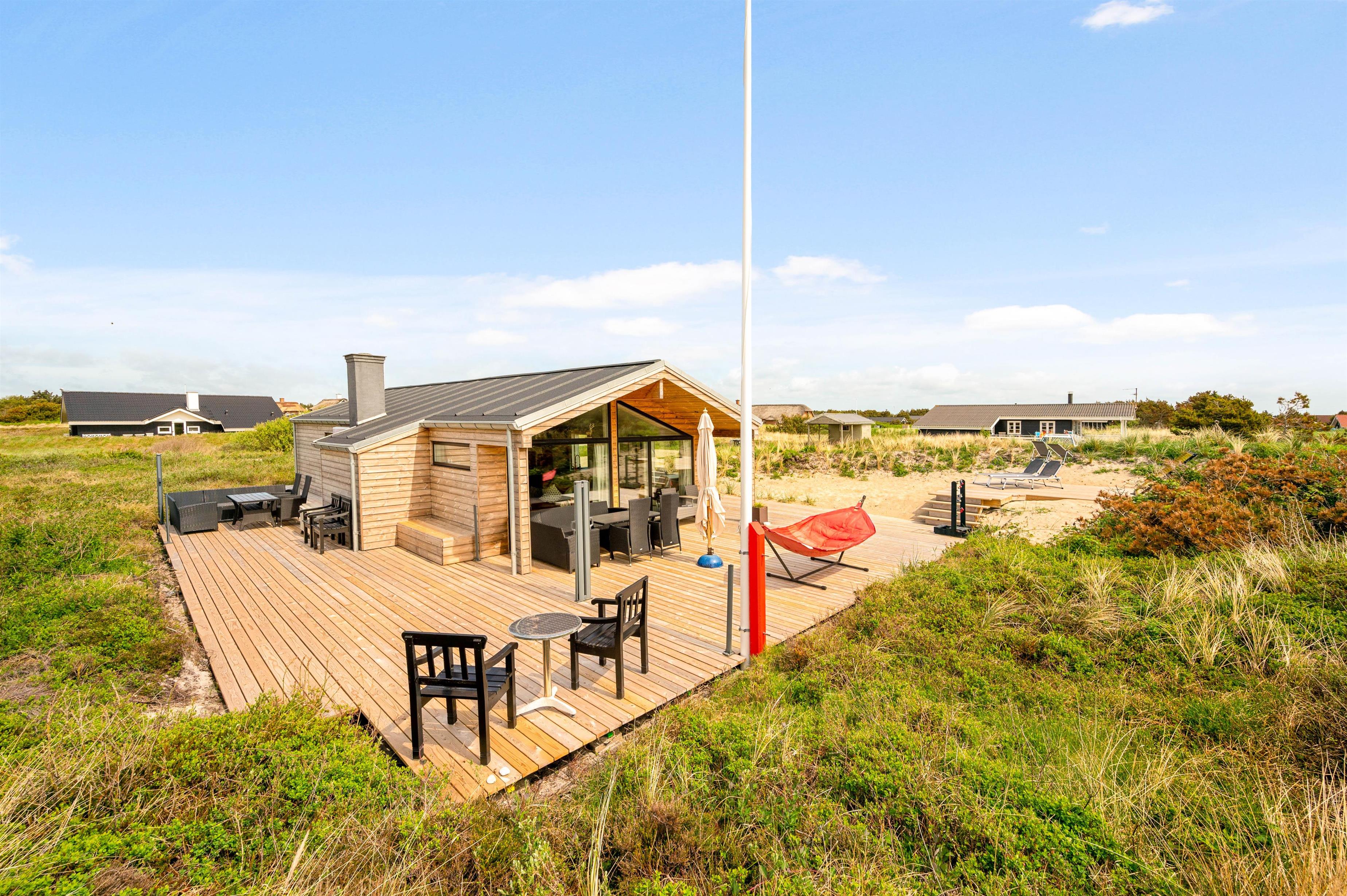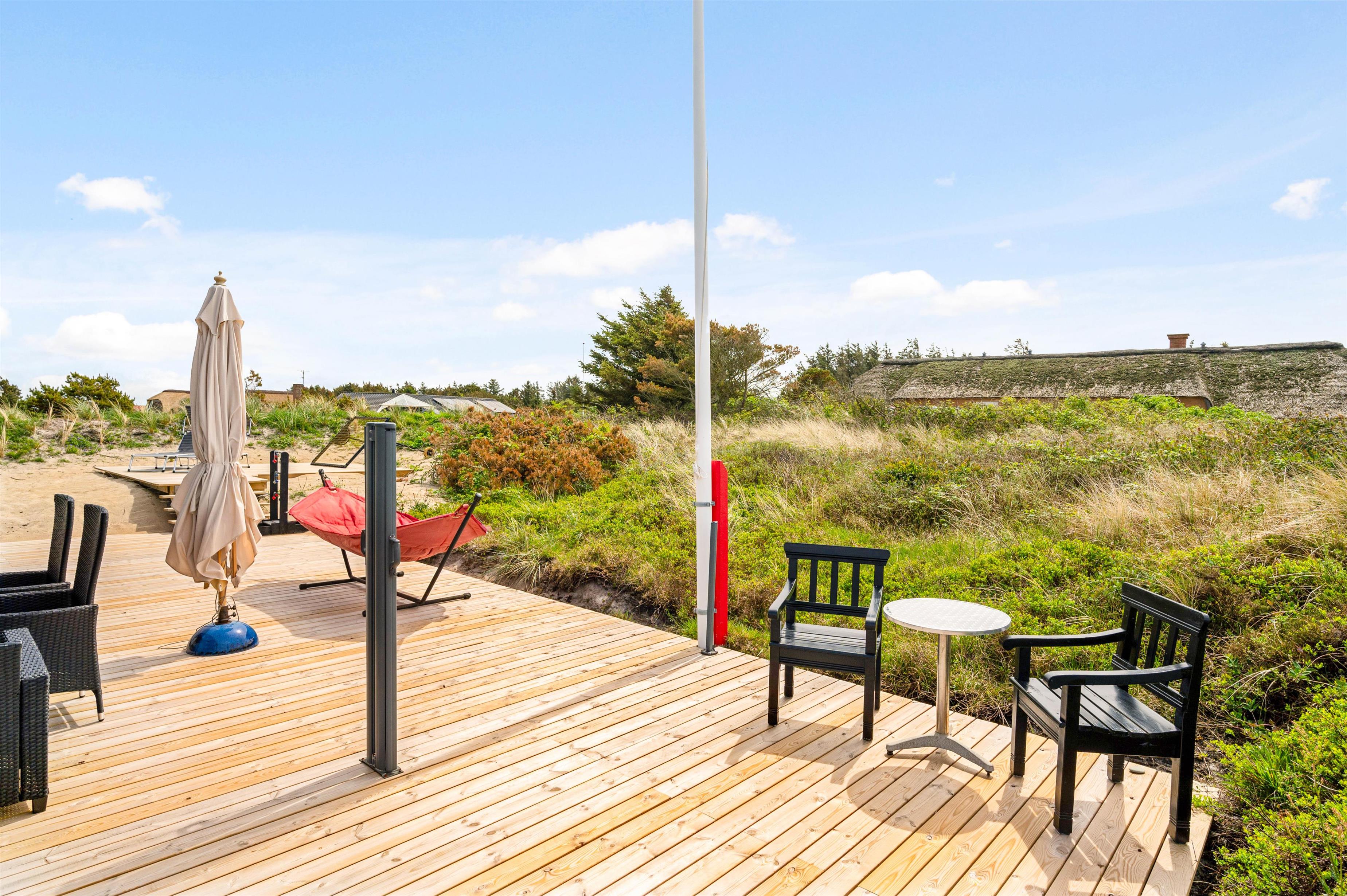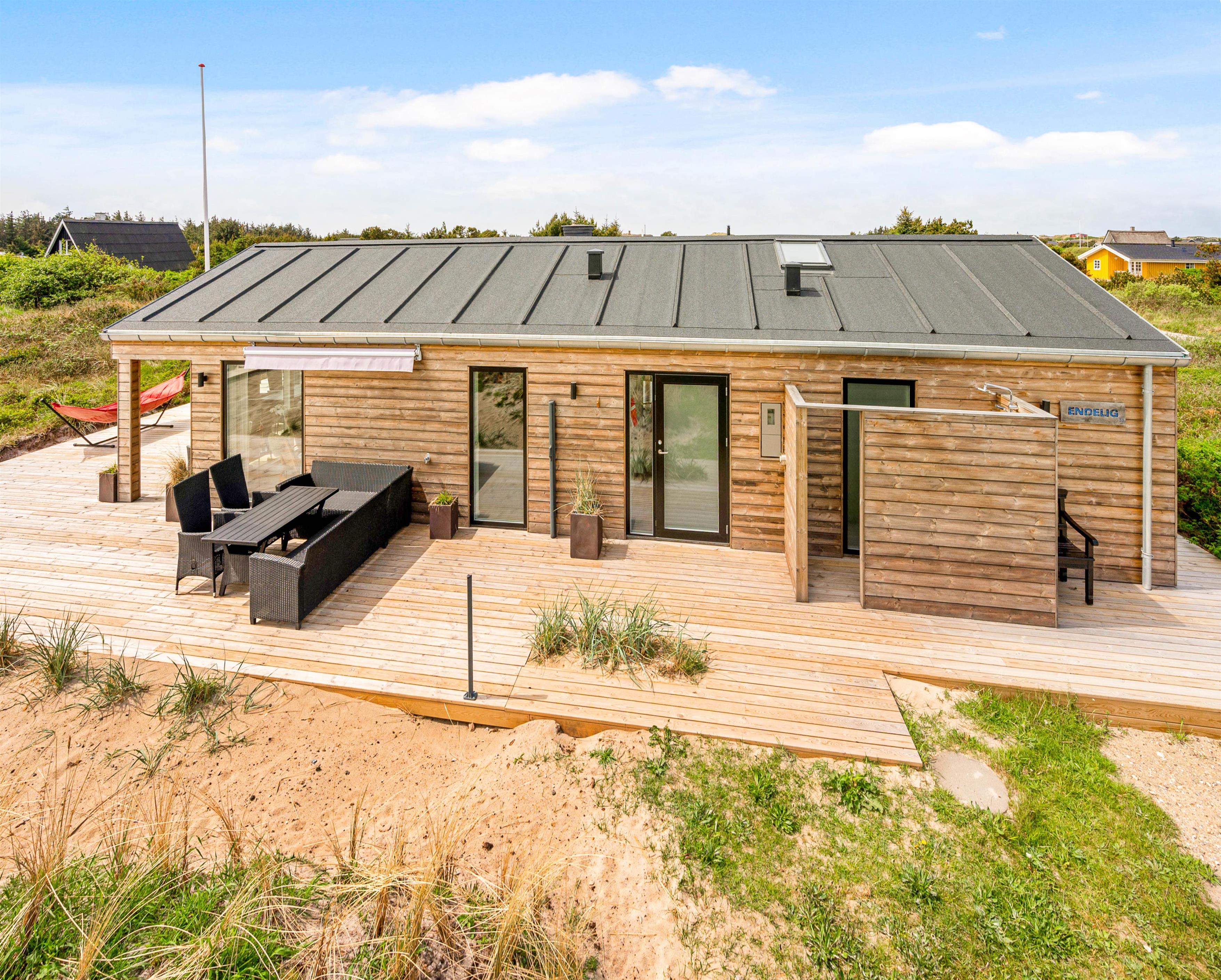 With the beach just 800 metres away, a seaside walk is always within easy reach - almost obligatory when visiting the Danish West Coast. After a long beach walk, you can rinse off the sand using the outdoor shower (available April-November). Round off a perfect holiday day with a barbecue on the terrace.
