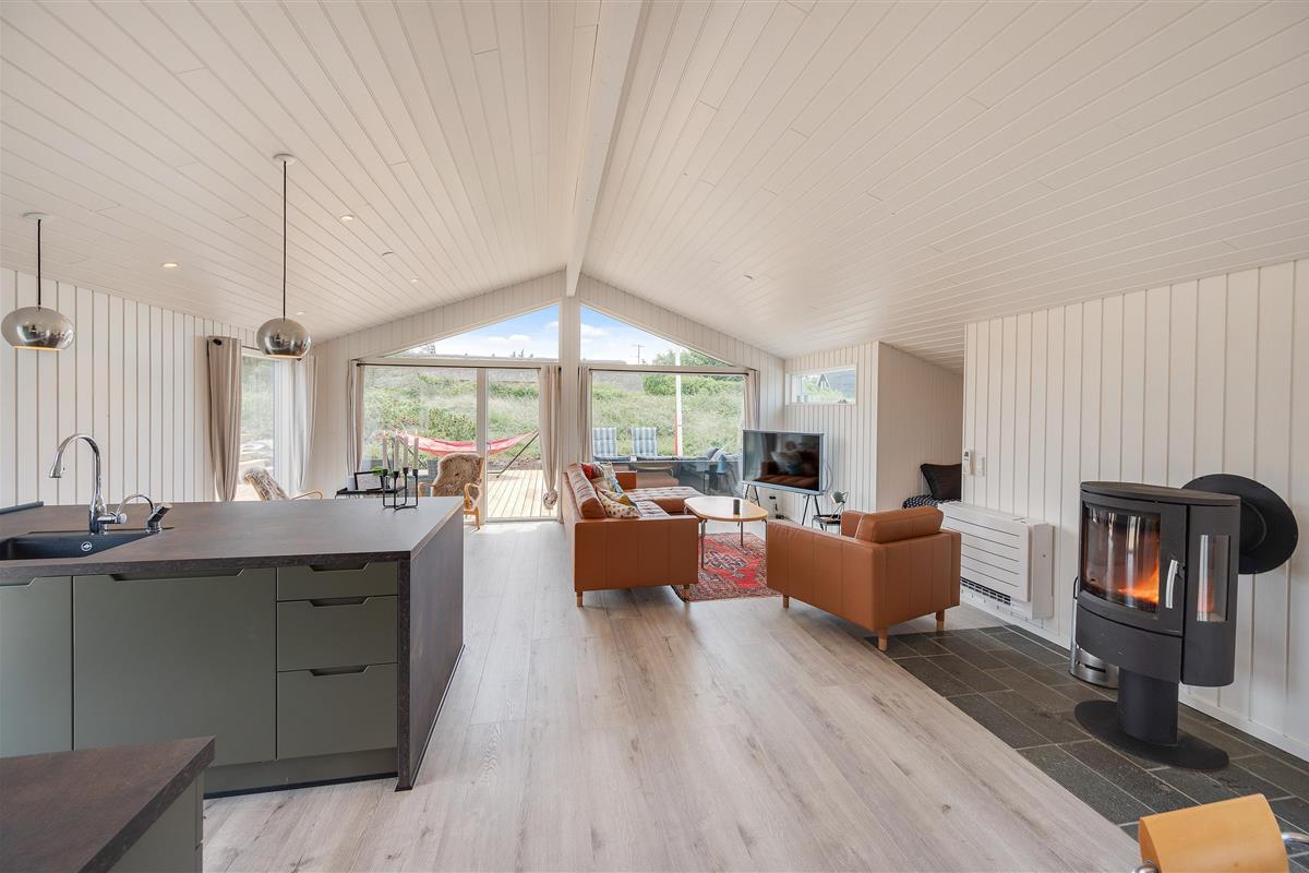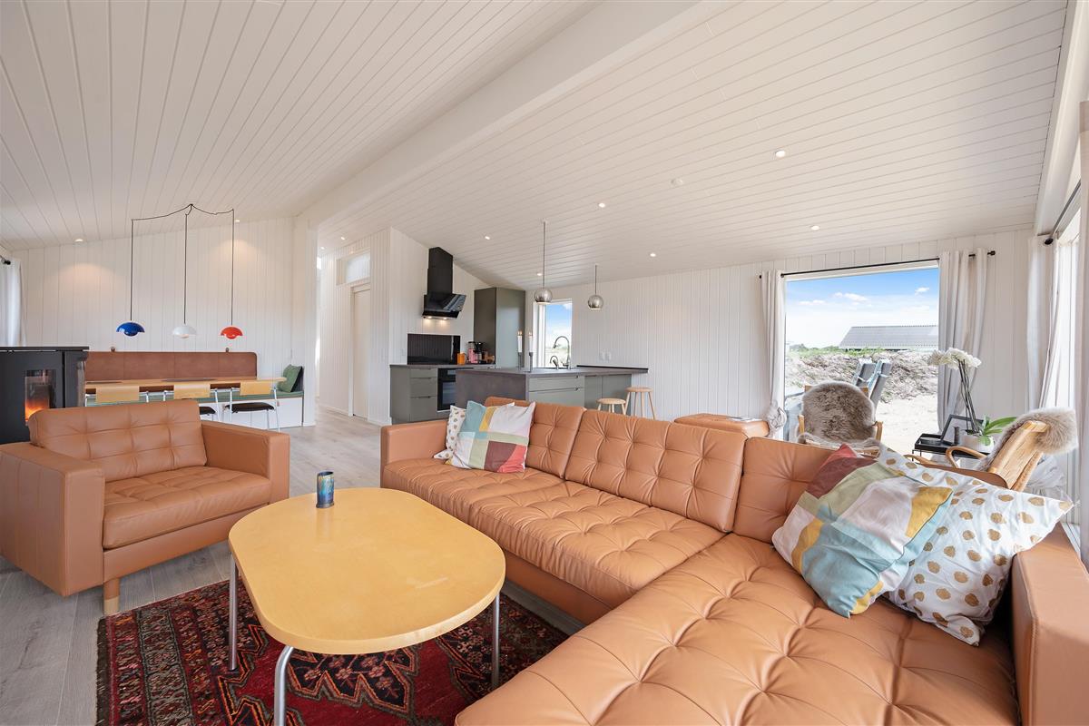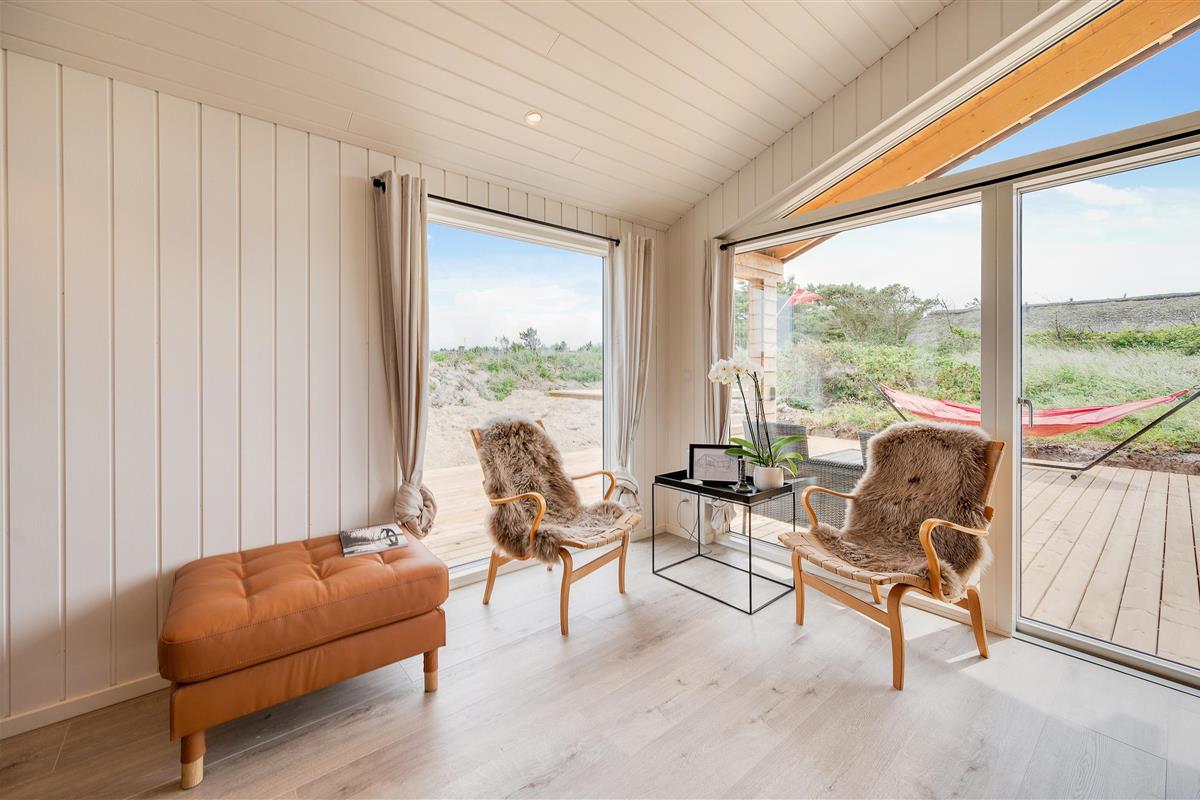 The holiday home at Wolle Friks Vej 35 sits on a 2,280-square-metre natural plot, perfect for children to play and explore. Here, the youngest guests become the greatest adventurers. The holiday home features a sheltered and covered terrace, allowing you to enjoy the Danish West Coast's natural beauty in any weather. The holiday home comes fully equipped with garden furniture and sun loungers for enjoying outdoor leisure time.
