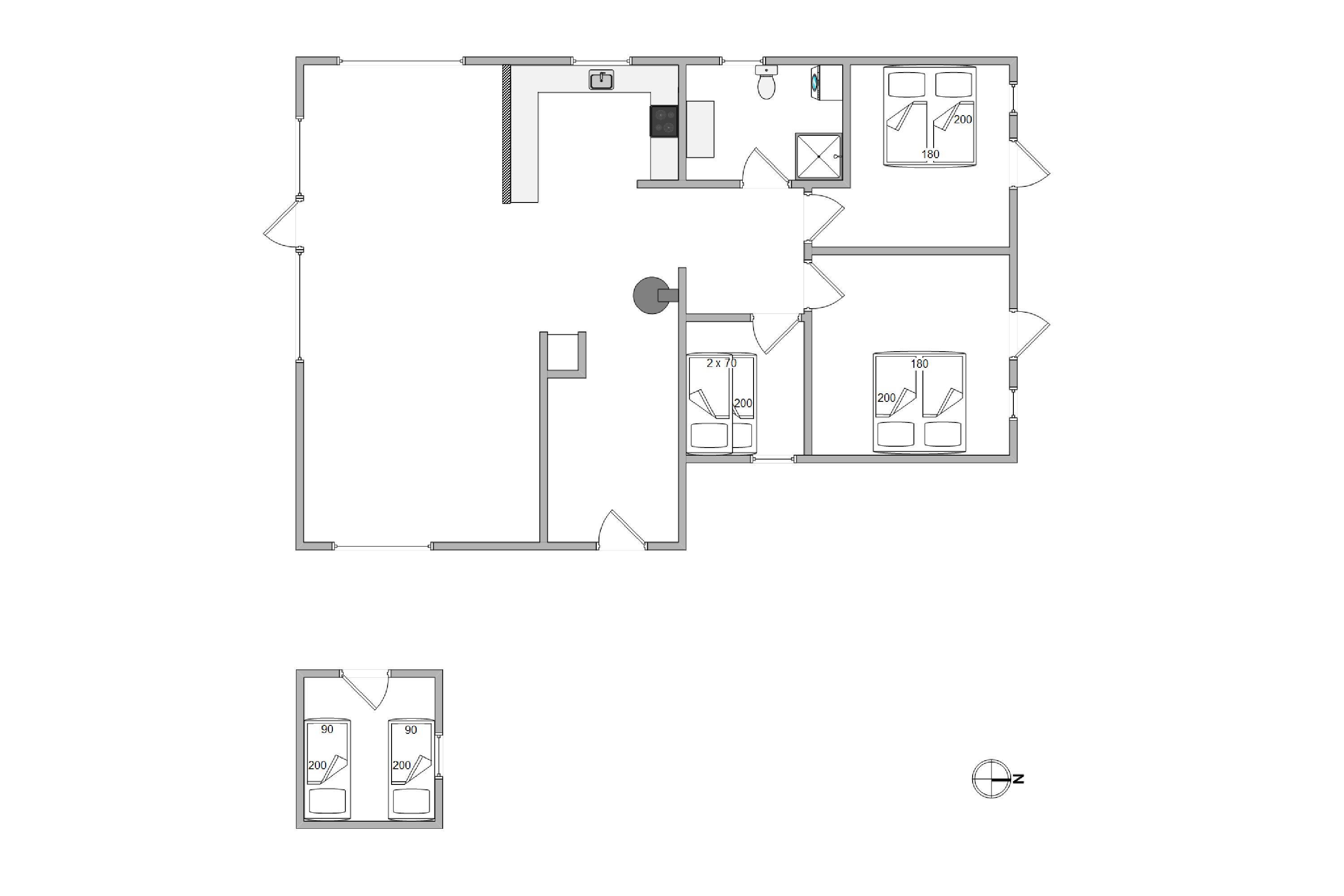 With three spacious bedrooms, the holiday home is ideal for both couples and families. Two rooms feature inviting double beds, while the third has bunk beds. Additional sleeping accommodation is available in the cosy annexe, which offers two more sleeping spaces.