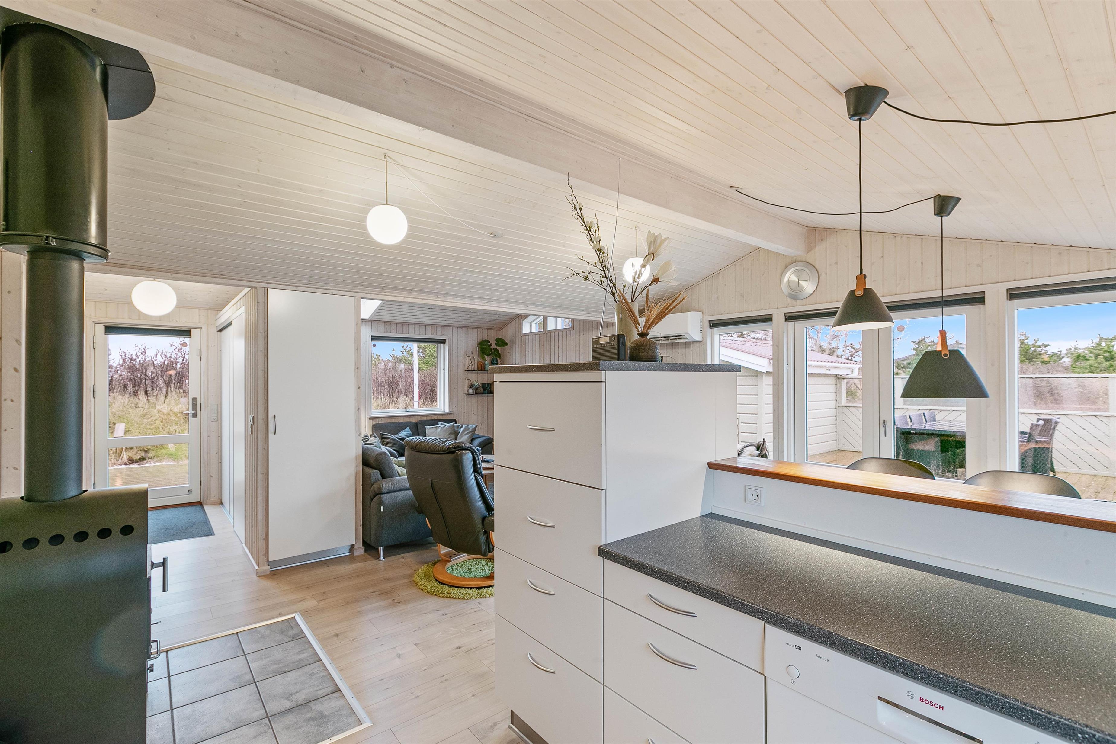 If you're looking for a beautiful holiday home in Søndervig with an excellent location close to the centre, you should take a closer look at this holiday home on Hvidbjergvej 65. Up to 6 people can enjoy a wonderful holiday in its 92 square metres. The furnishings and wood-burning stove provide that typical Danish holiday home feeling, whilst offering all modern comforts.