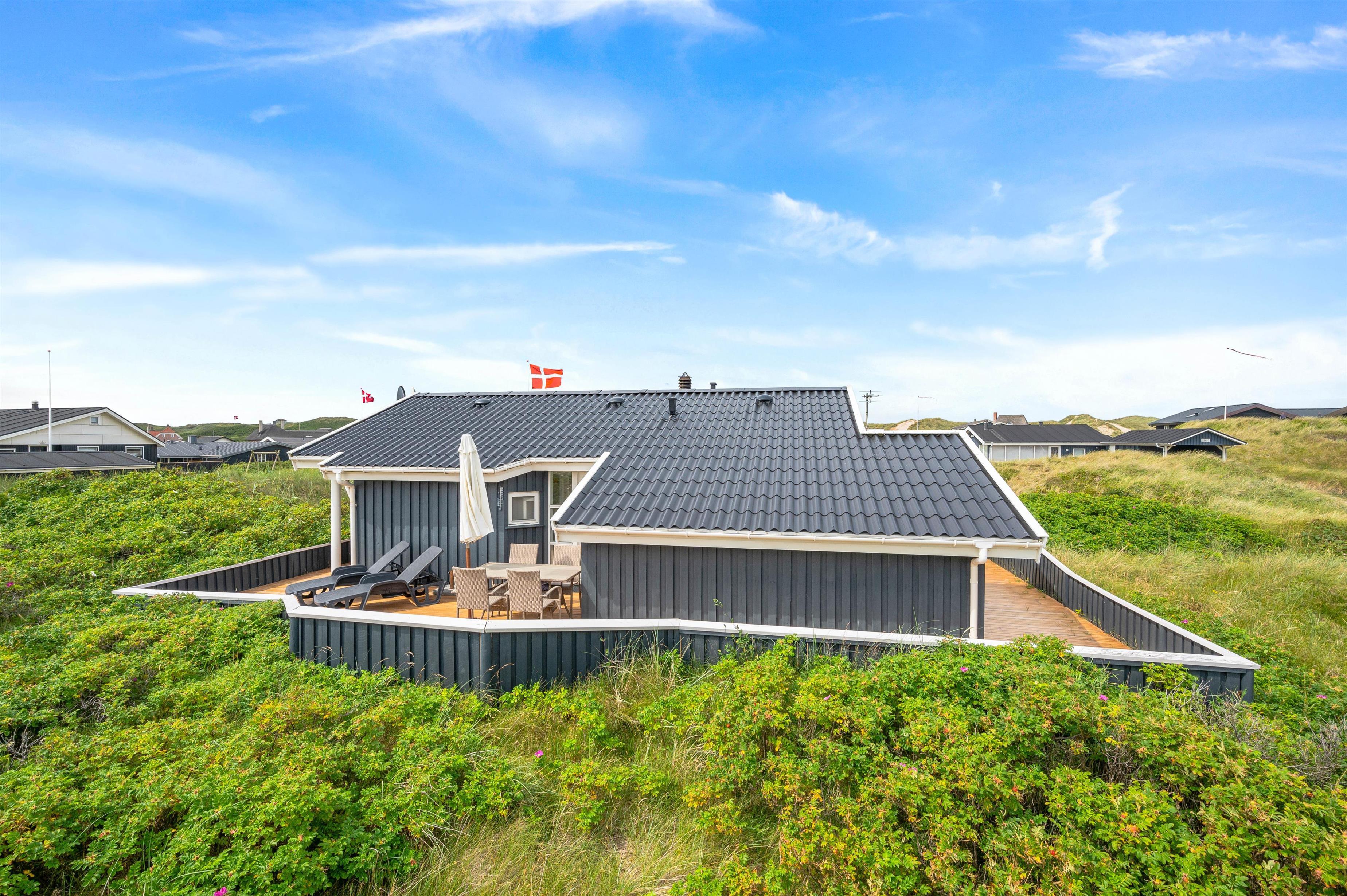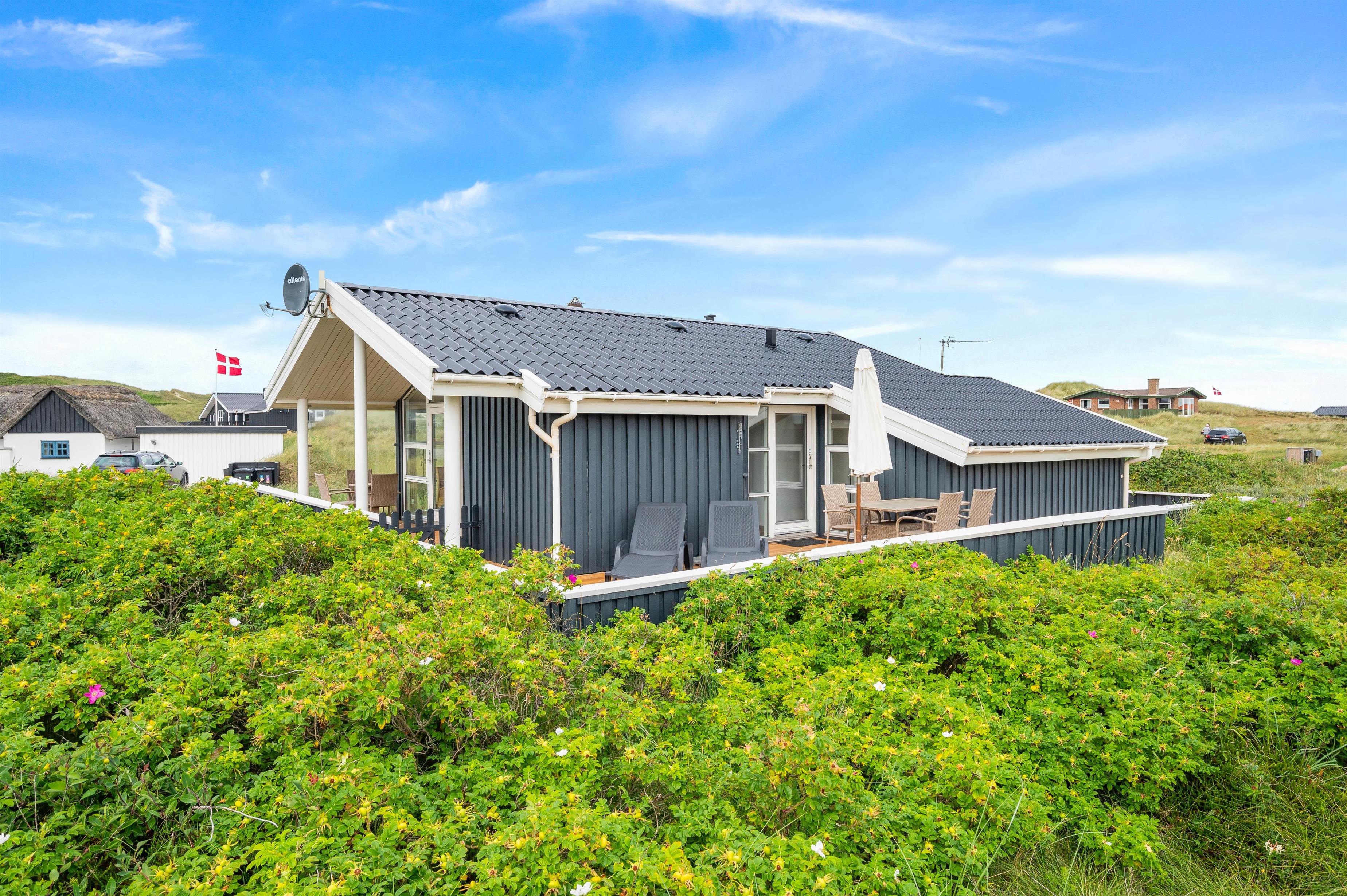 This charming compact holiday home, with its stylish furnishings and private wood-burning stove, offers a true holiday retreat atmosphere. Set on natural grounds with views over the dune landscape, you can fully enjoy your holiday here. The rolling North Sea and the popular resort of Søndervig are just a short walk away, waiting to be explored. The holiday home also features an electric car charging point for convenient charging during your stay.