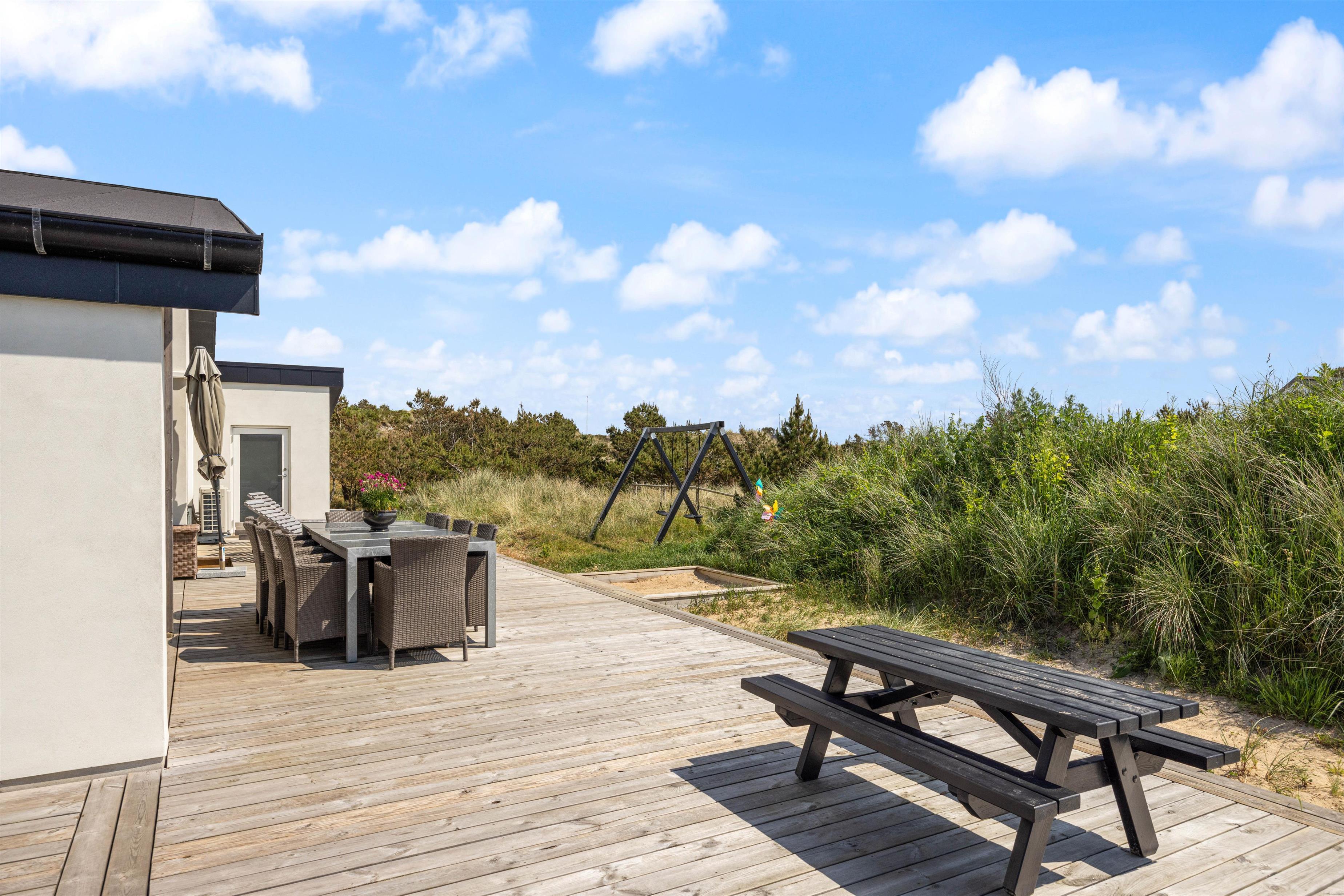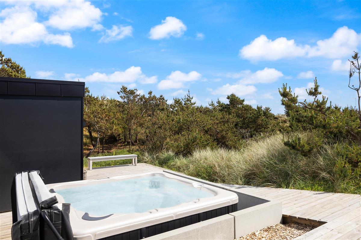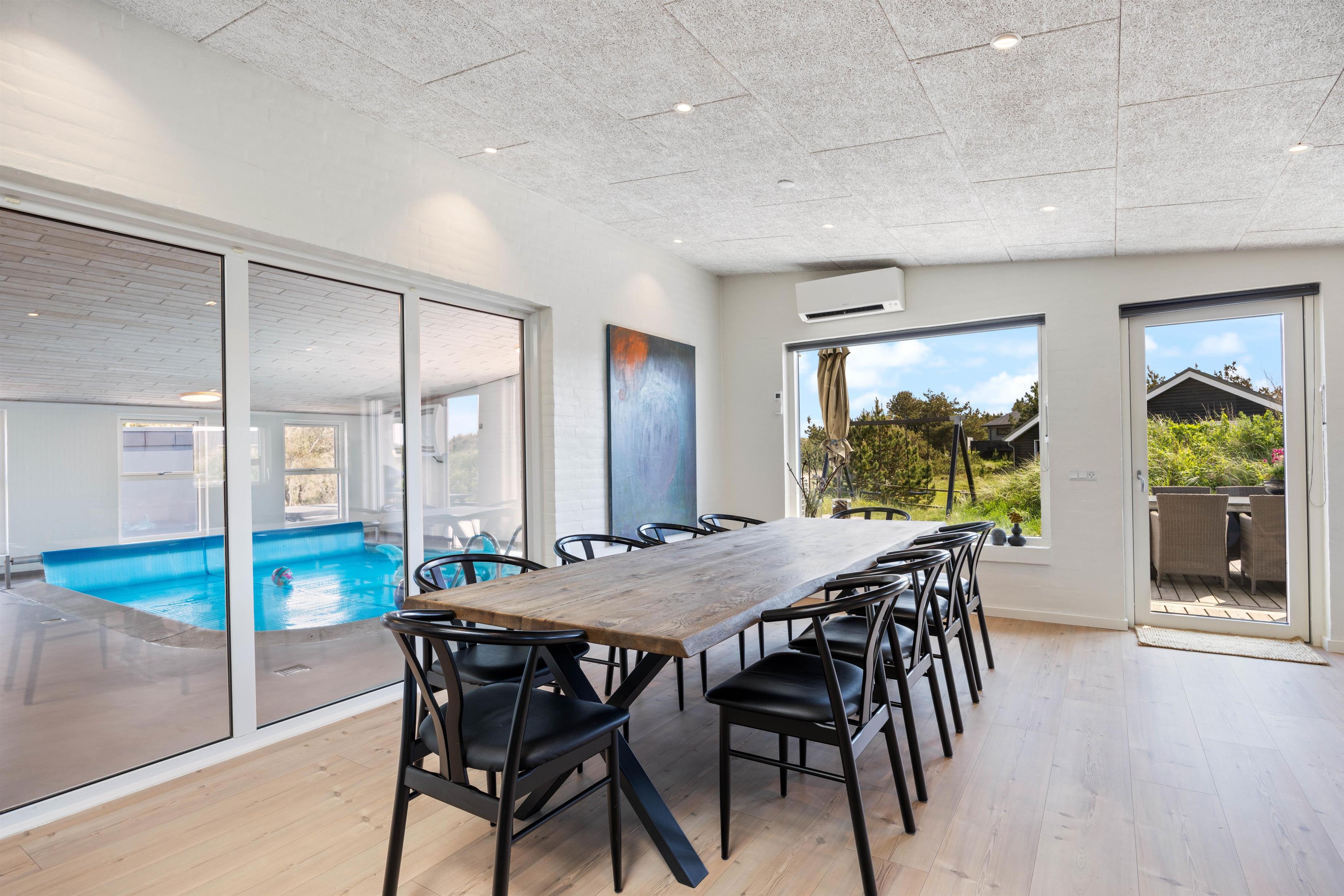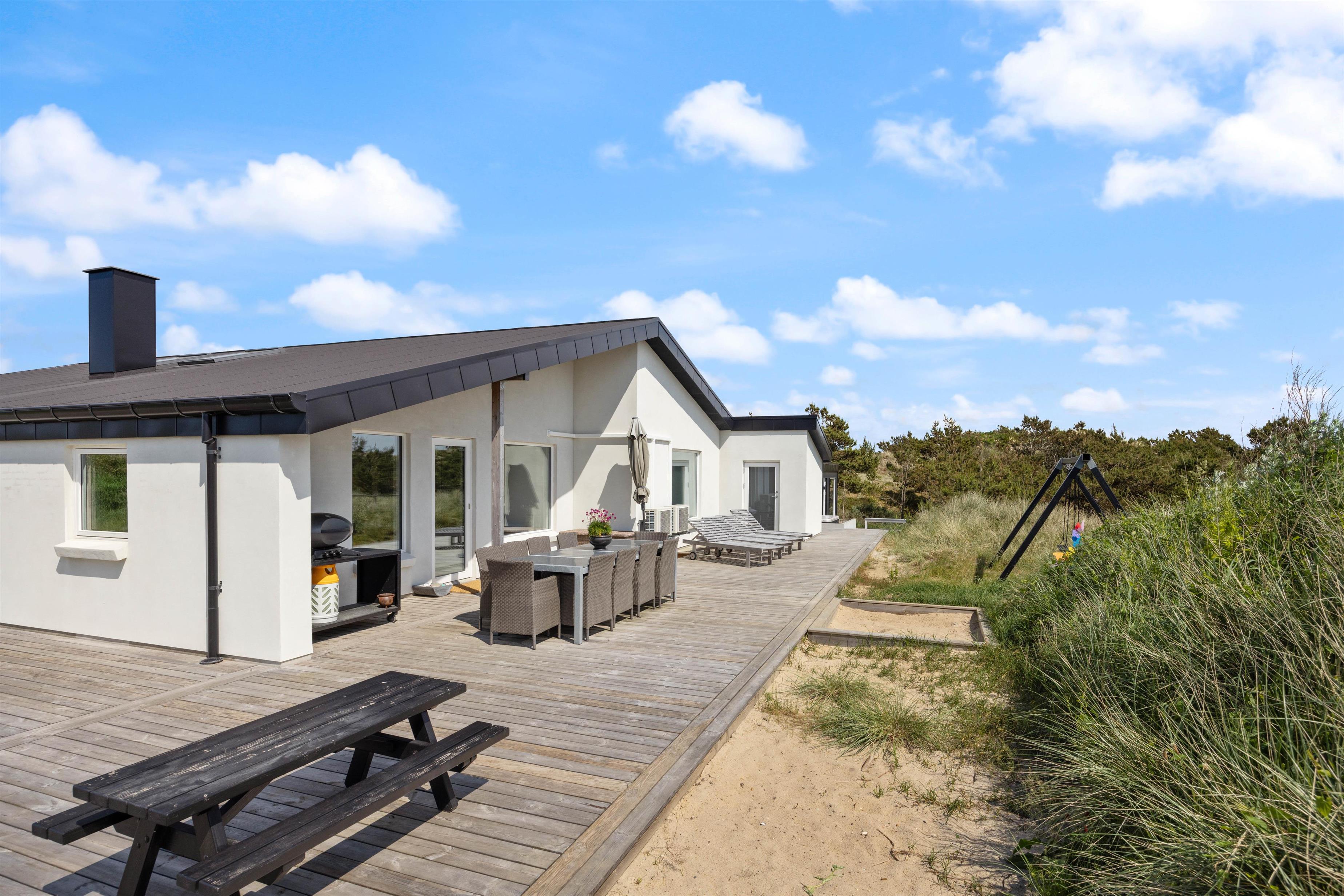 Looking for a relaxing break where comfort, cosiness and wellness are the keywords for your holiday? Then this is the perfect choice. The Pool House at Marehalmen 27 in Søndervig offers a salt water pool, outdoor salt water hot tub, natural grounds and comfortable surroundings. Extensively renovated in 2022, this holiday home accommodates 10 guests and 2 dogs, making it ideal for extended family holidays.