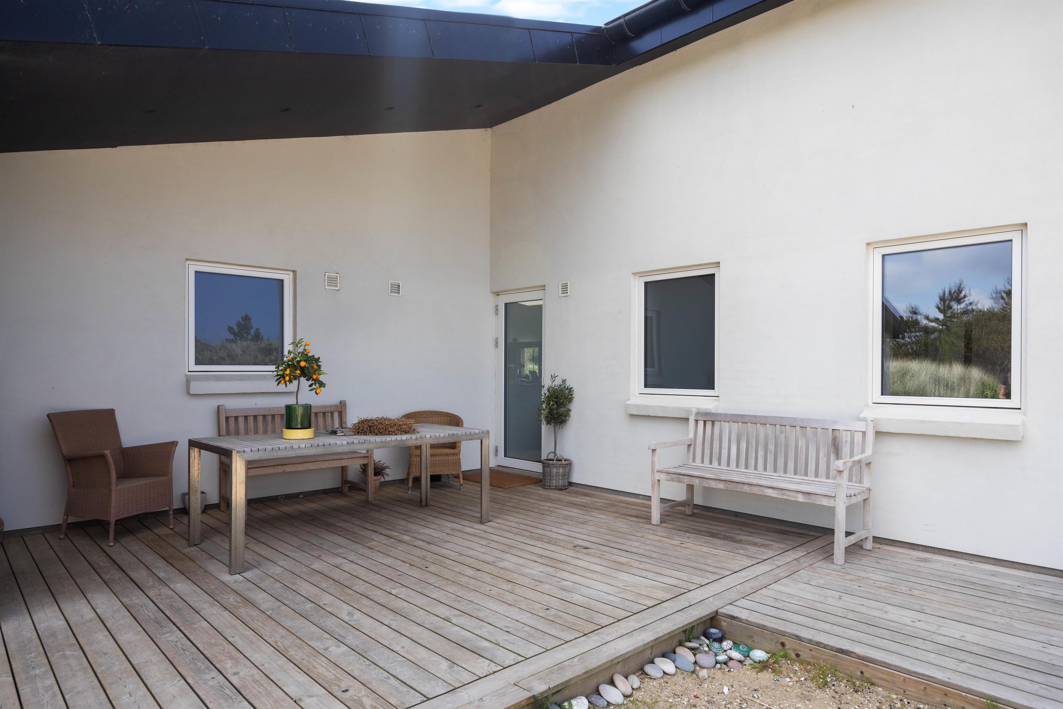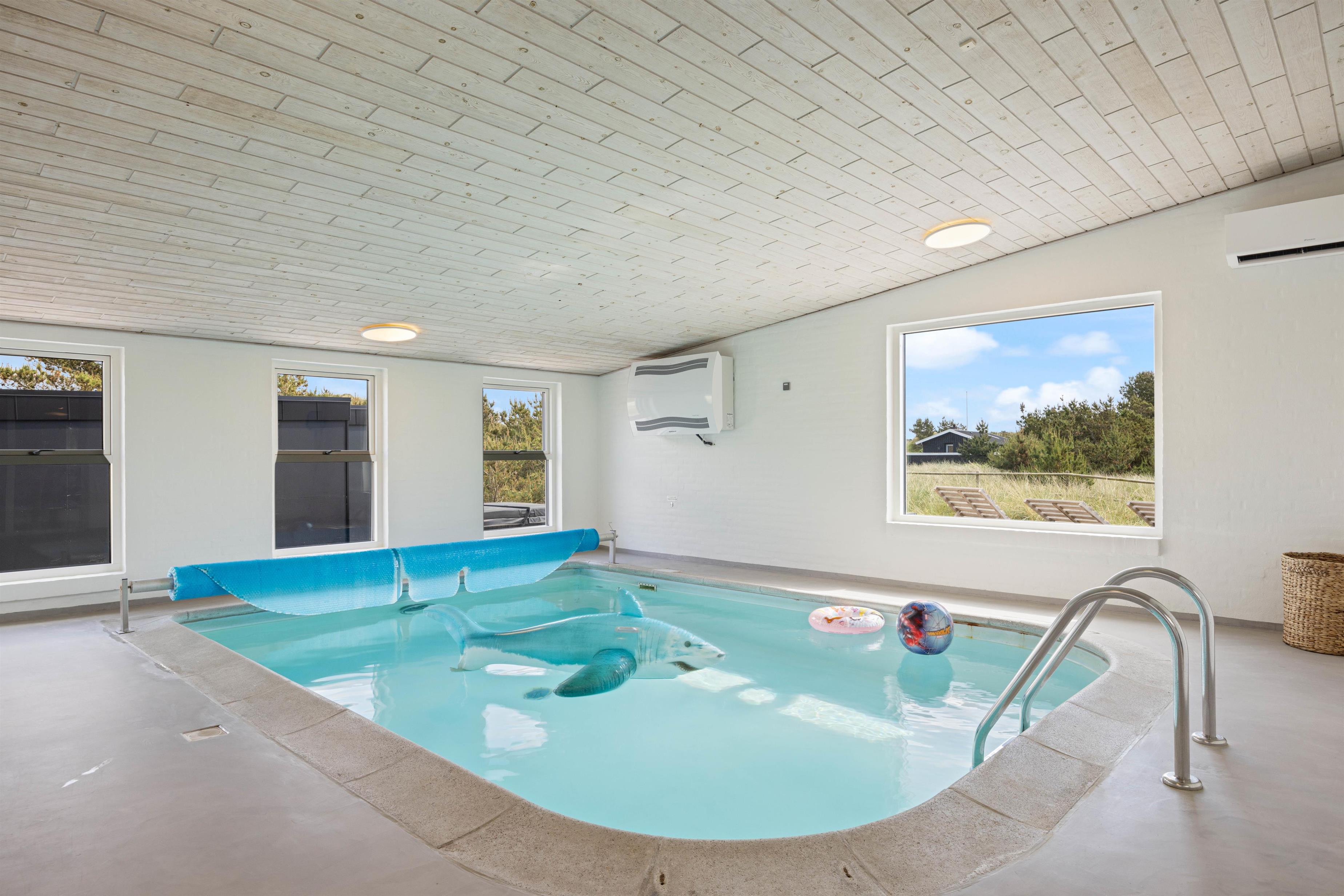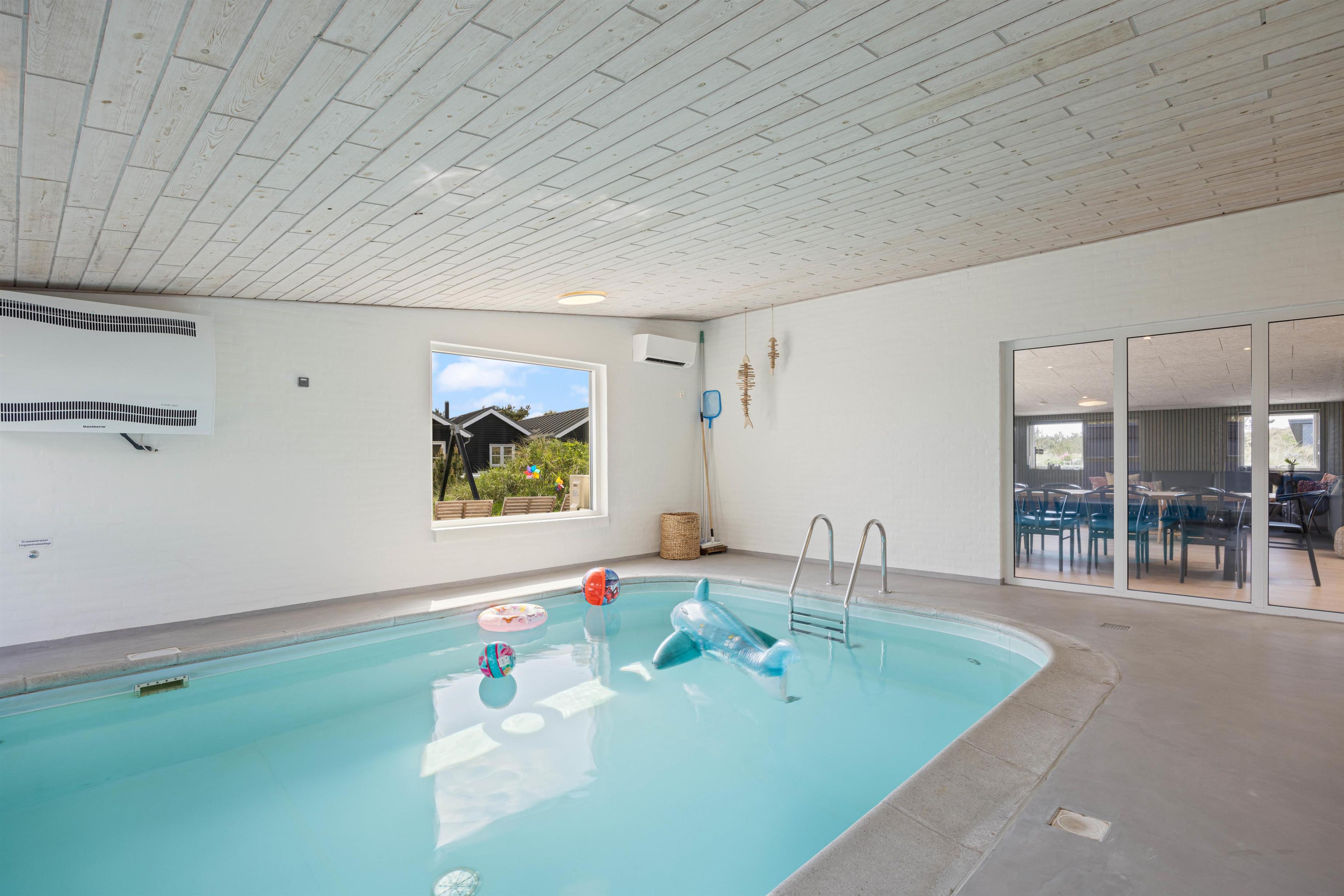 Looking for a relaxing break where comfort, cosiness and wellness are the keywords for your holiday? Then this is the perfect choice. The Pool House at Marehalmen 27 in Søndervig offers a salt water pool, outdoor salt water hot tub, natural grounds and comfortable surroundings. Extensively renovated in 2022, this holiday home accommodates 10 guests and 2 dogs, making it ideal for extended family holidays.
