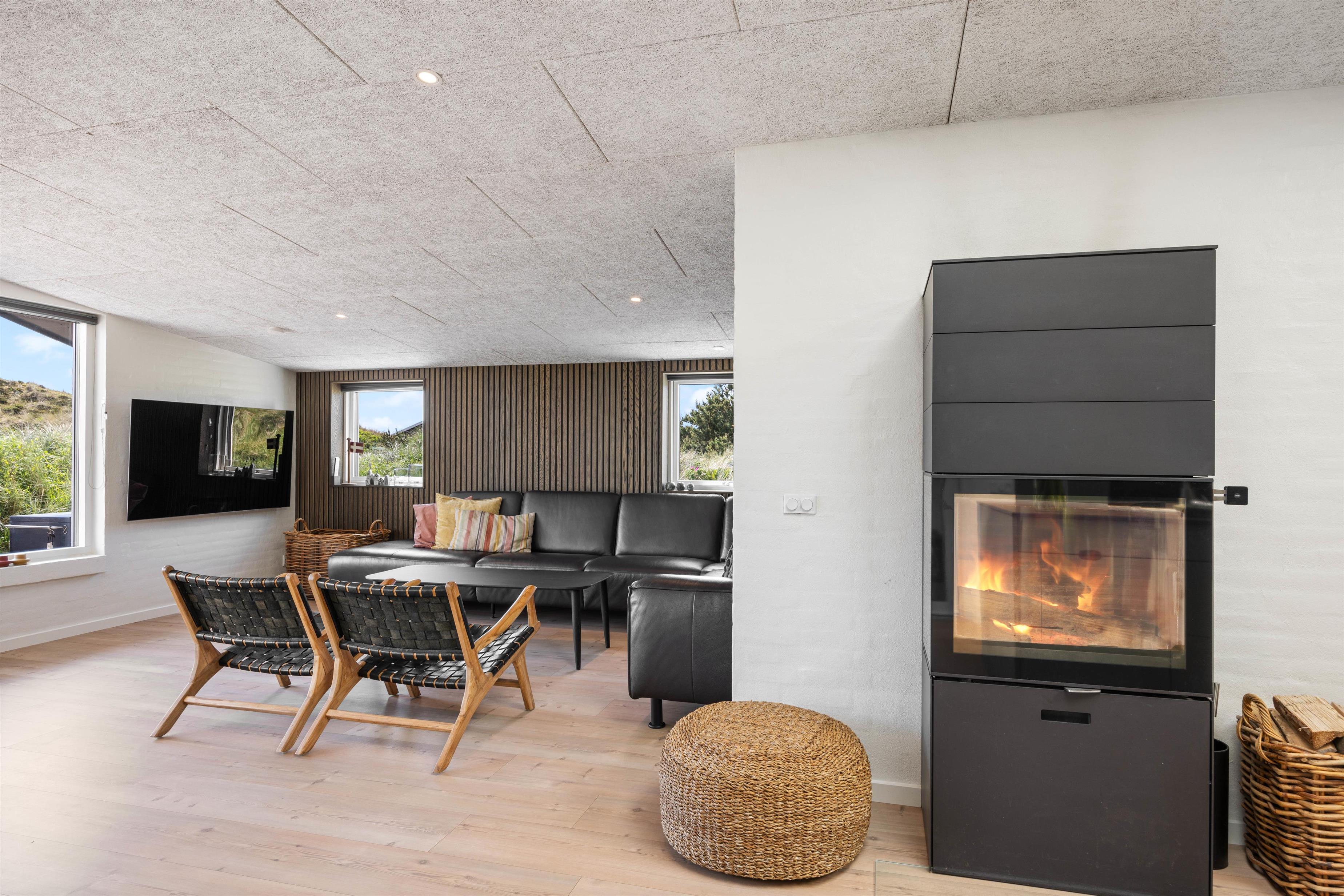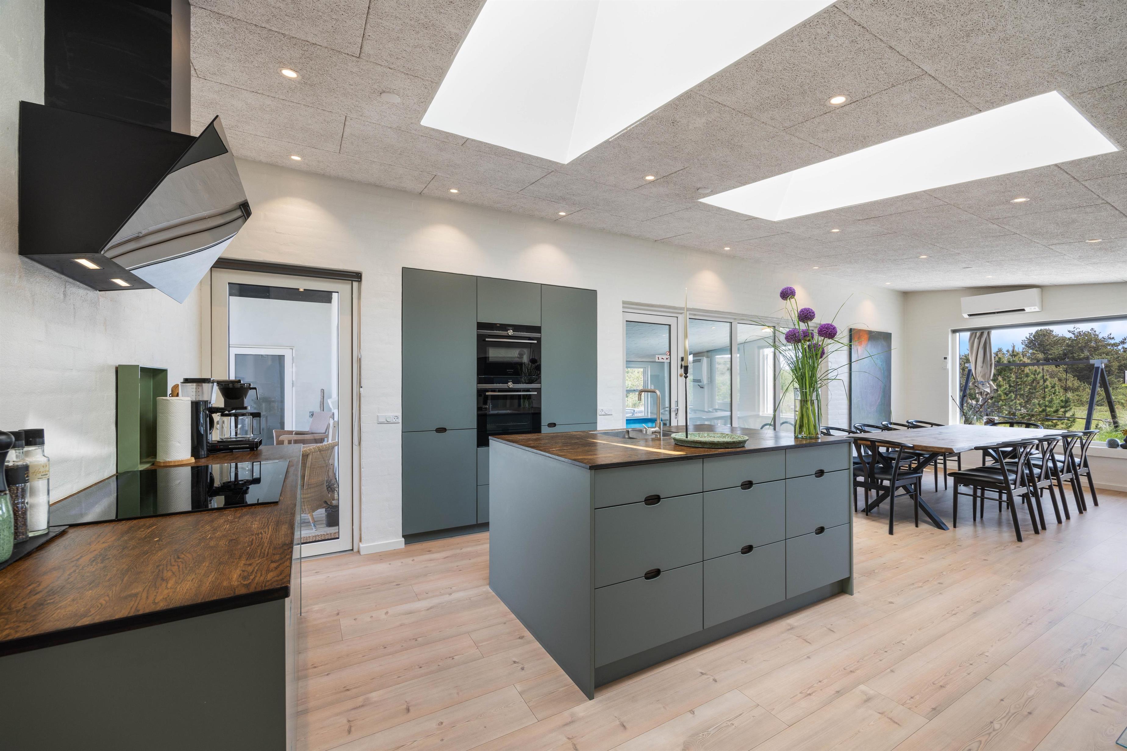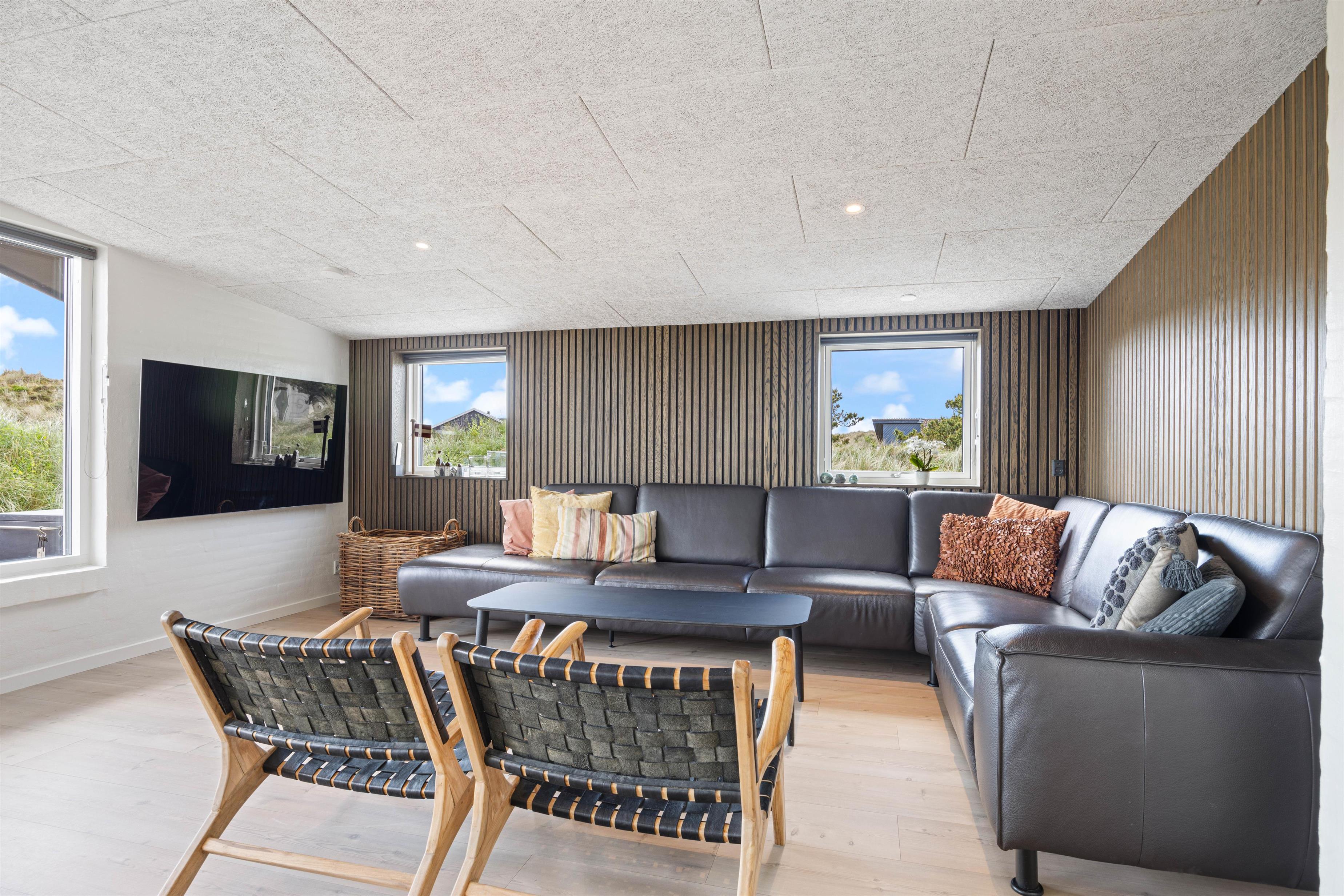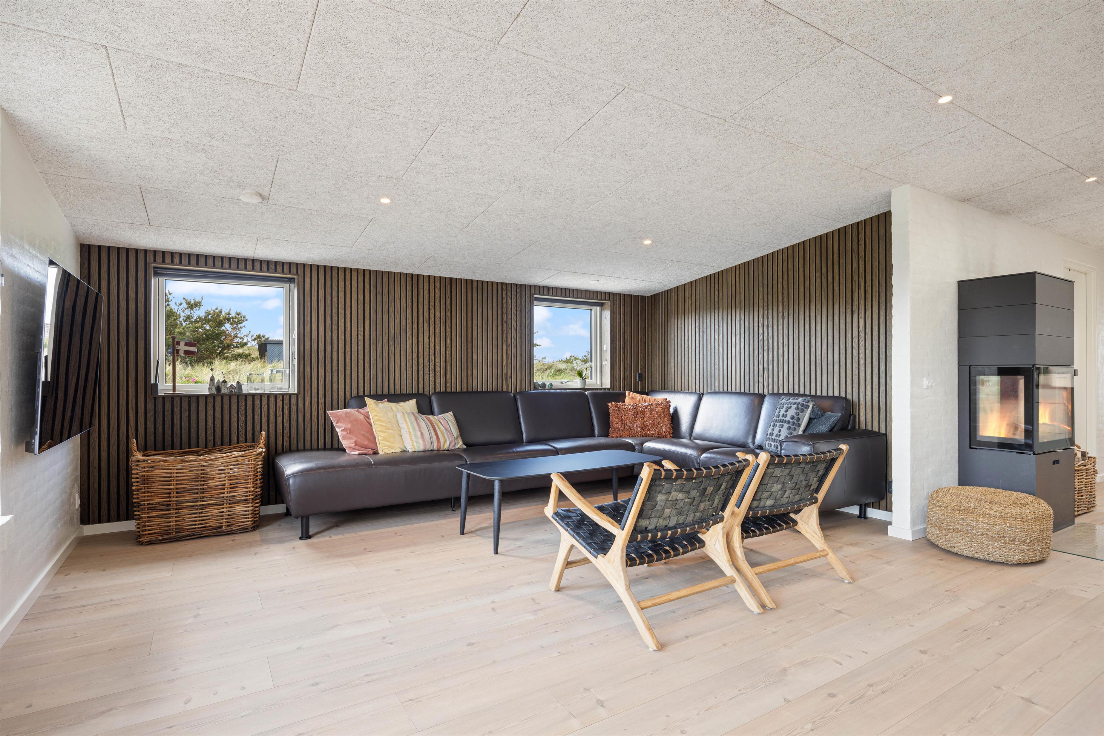 Looking for a relaxing break where comfort, cosiness and wellness are the keywords for your holiday? Then this is the perfect choice. The Pool House at Marehalmen 27 in Søndervig offers a salt water pool, outdoor salt water hot tub, natural grounds and comfortable surroundings. Extensively renovated in 2022, this holiday home accommodates 10 guests and 2 dogs, making it ideal for extended family holidays.
