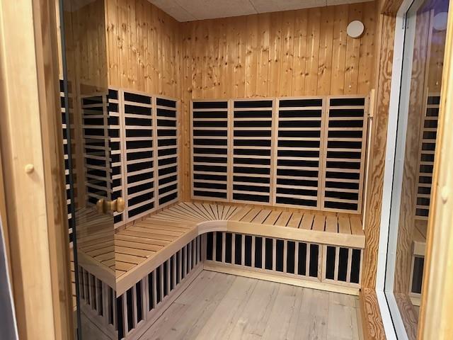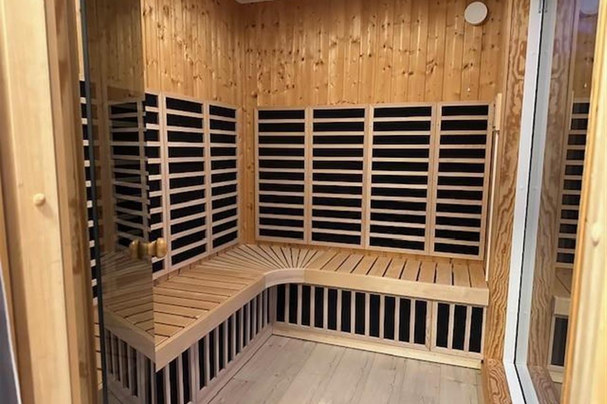 The salt water pool is perfect for play and splashing about, while its counter-current system allows for morning exercise. For relaxation, the outdoor salt water hot tub offers the perfect spot to unwind and warm up after a day in the fresh air. The holiday home also features an infrared sauna with an additional shower room.