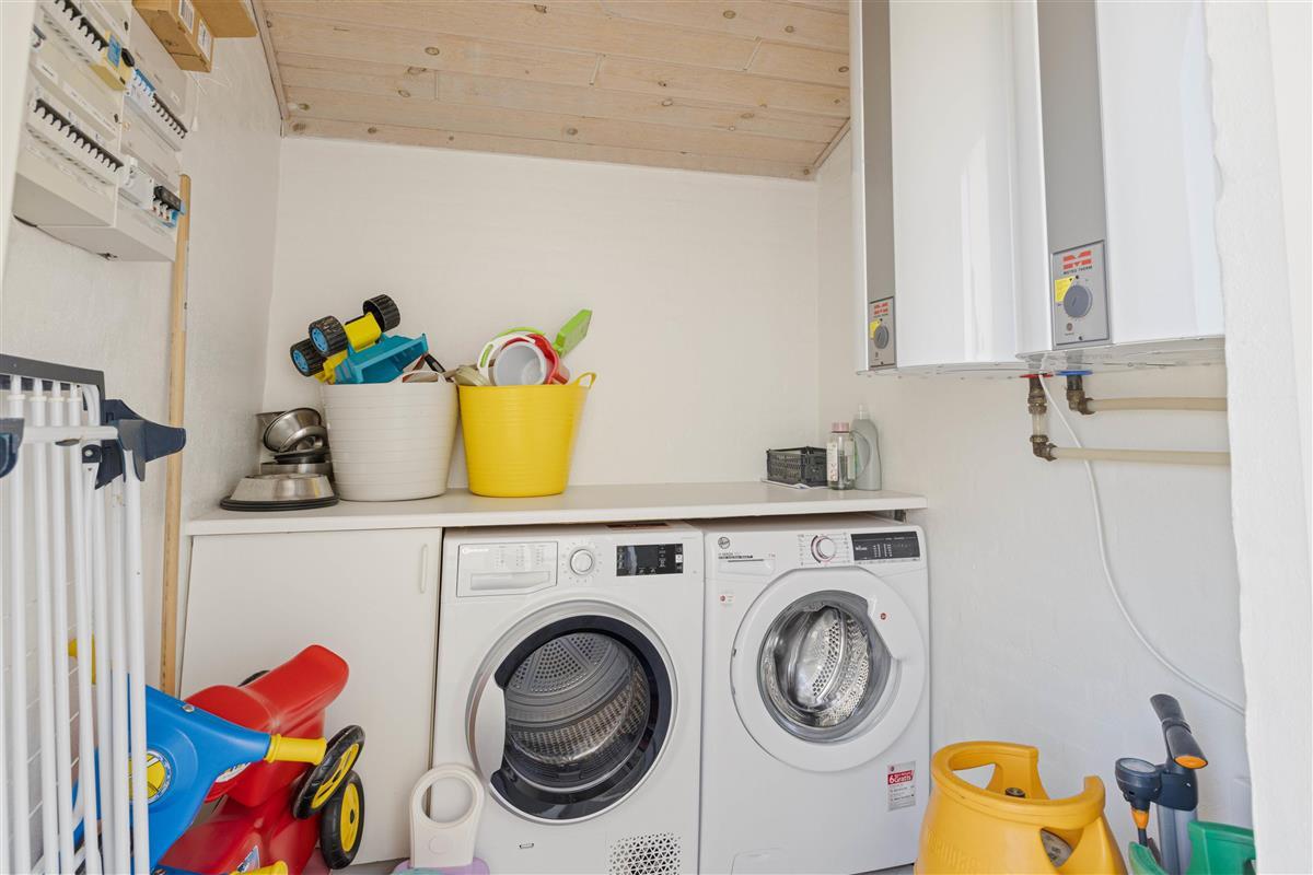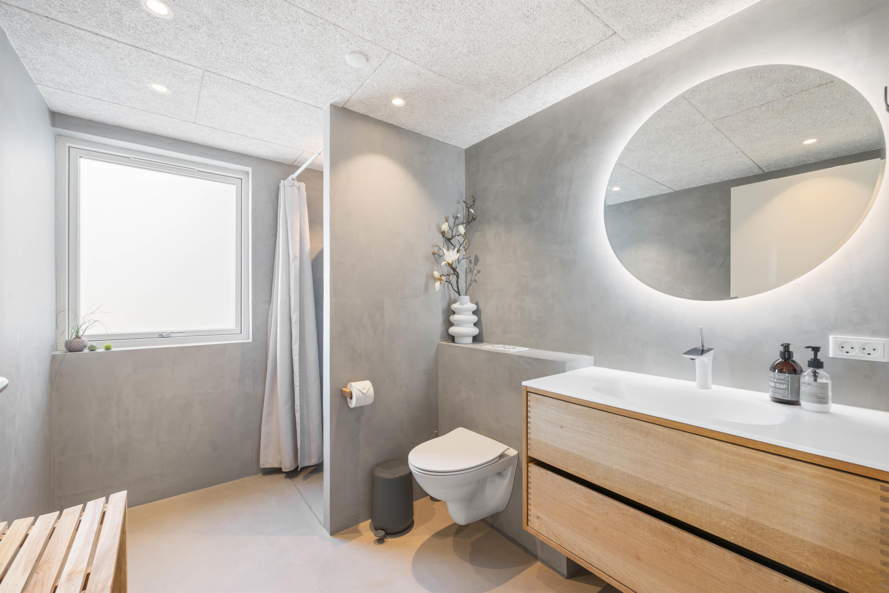 This 192-square-metre pool house welcomes you with bright colours, spacious rooms and abundant windows that invite sunlight and the surrounding picturesque landscape indoors. The large kitchen area serves as a central hub for planning your activities.