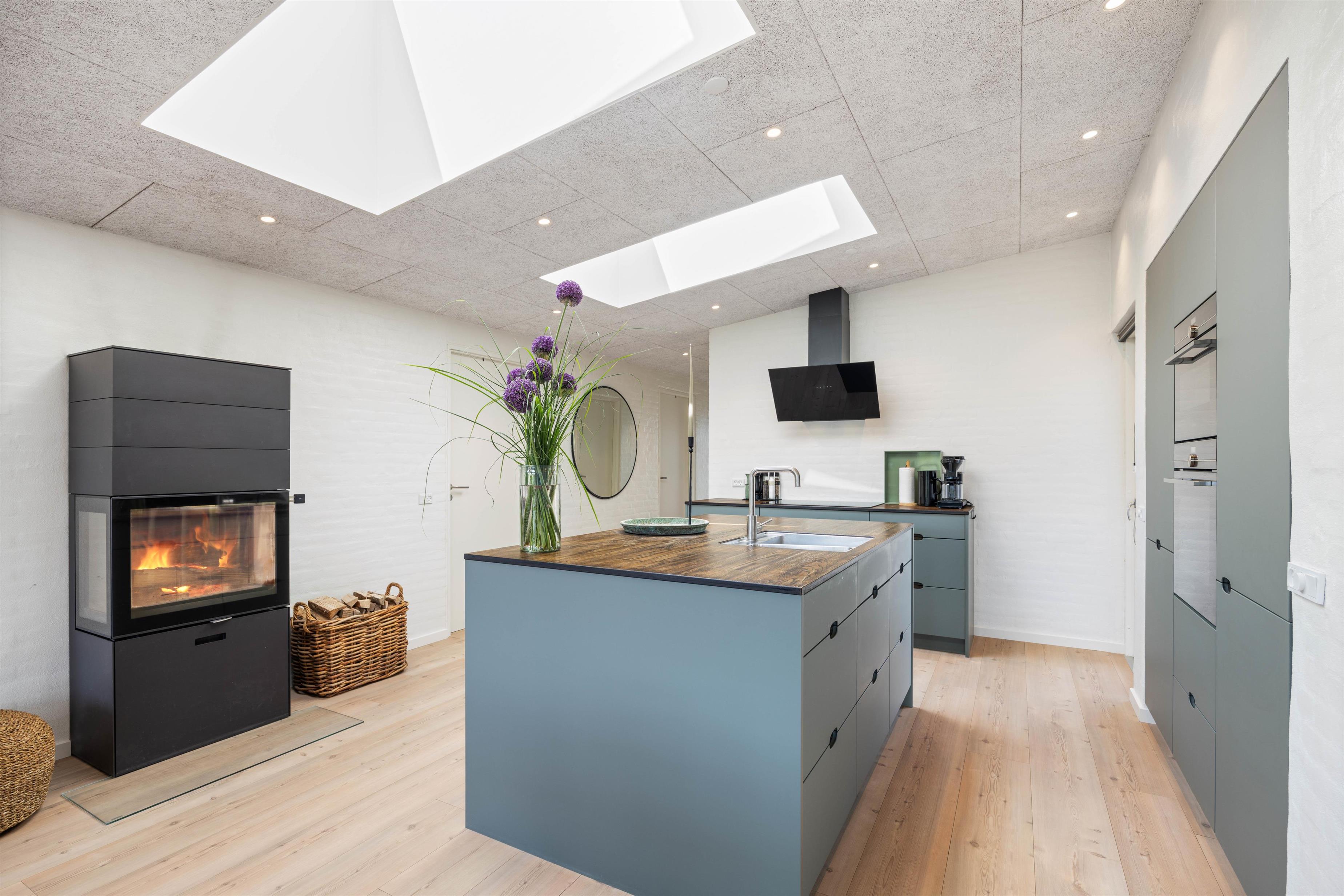 The living room features comfortable furniture that instantly invites you to settle in with a good book. This area houses a beautiful wood-burning stove, providing both warmth and atmosphere. The holiday home offers wireless internet throughout, keeping you connected to the world beyond this peaceful oasis.