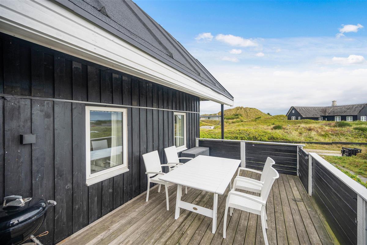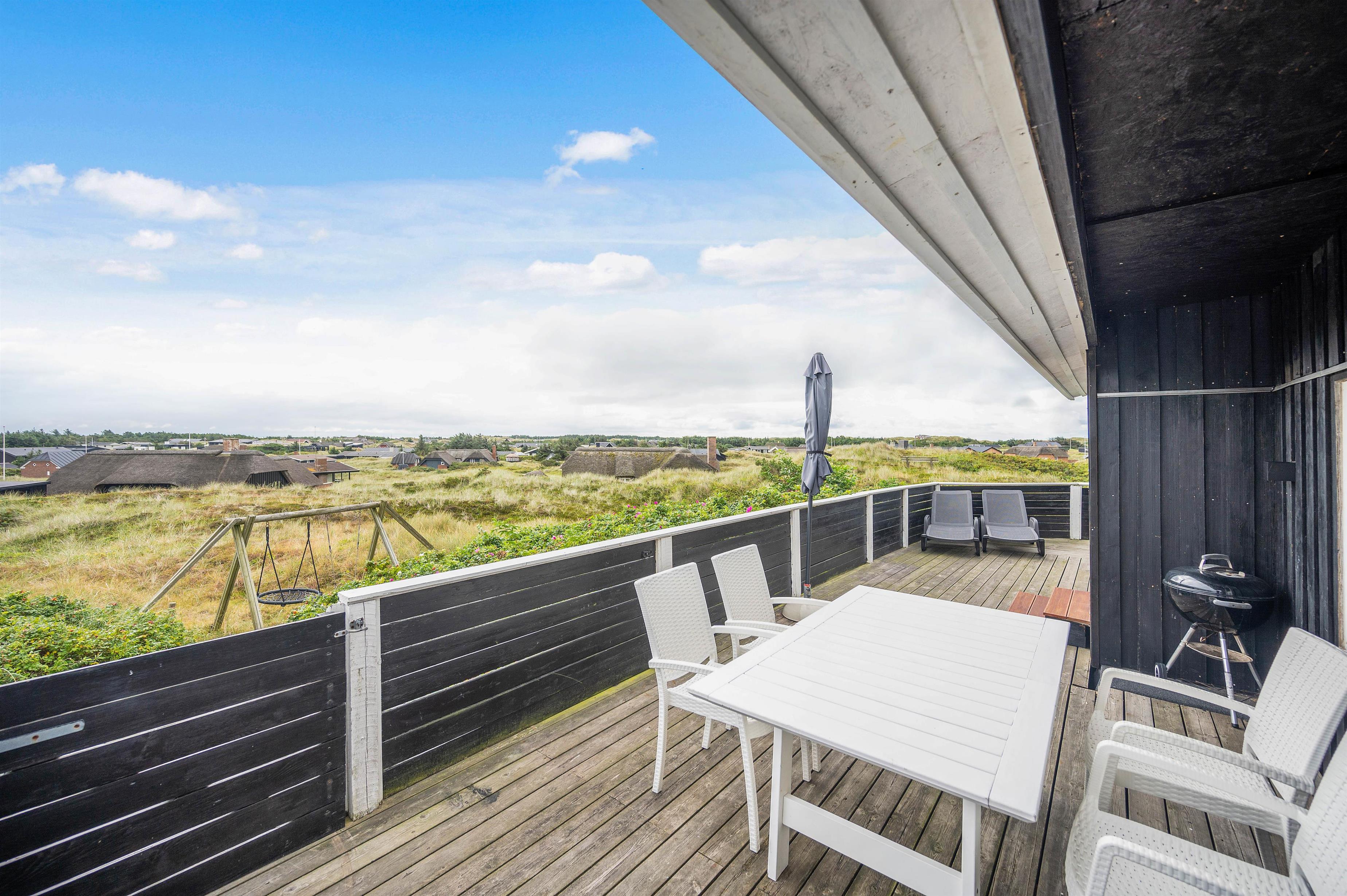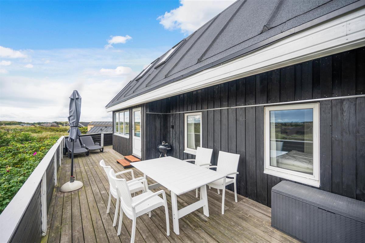 The terrace view is truly special - thanks to the elevated position, you can gaze across the unique dune landscape and natural surroundings. Enjoy the magnificent panoramic views with spectacular, colourful sunsets and look forward to relaxing days on Denmark's North Sea coast.