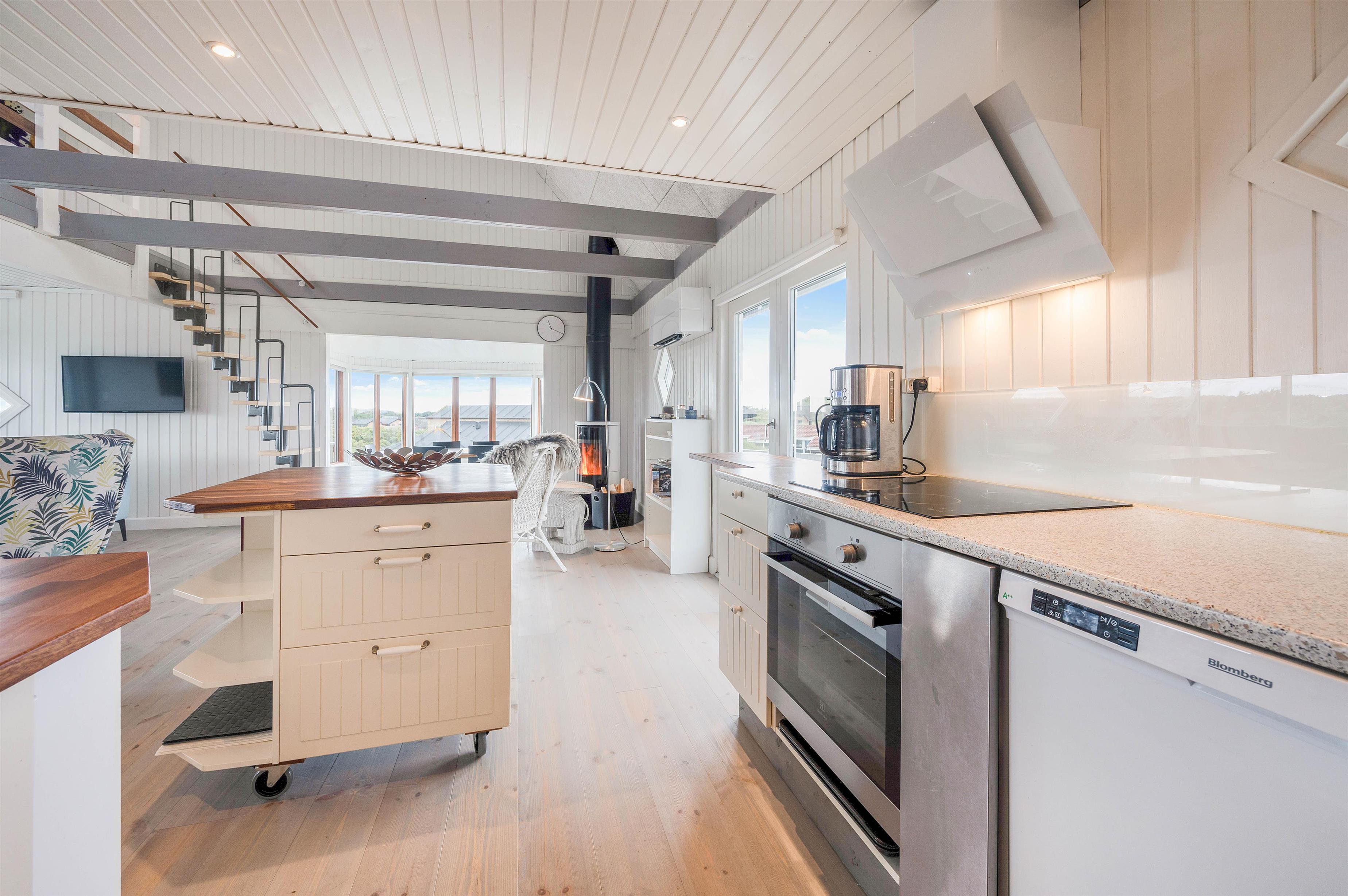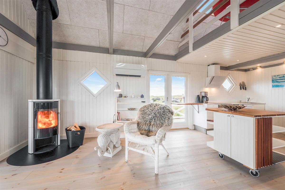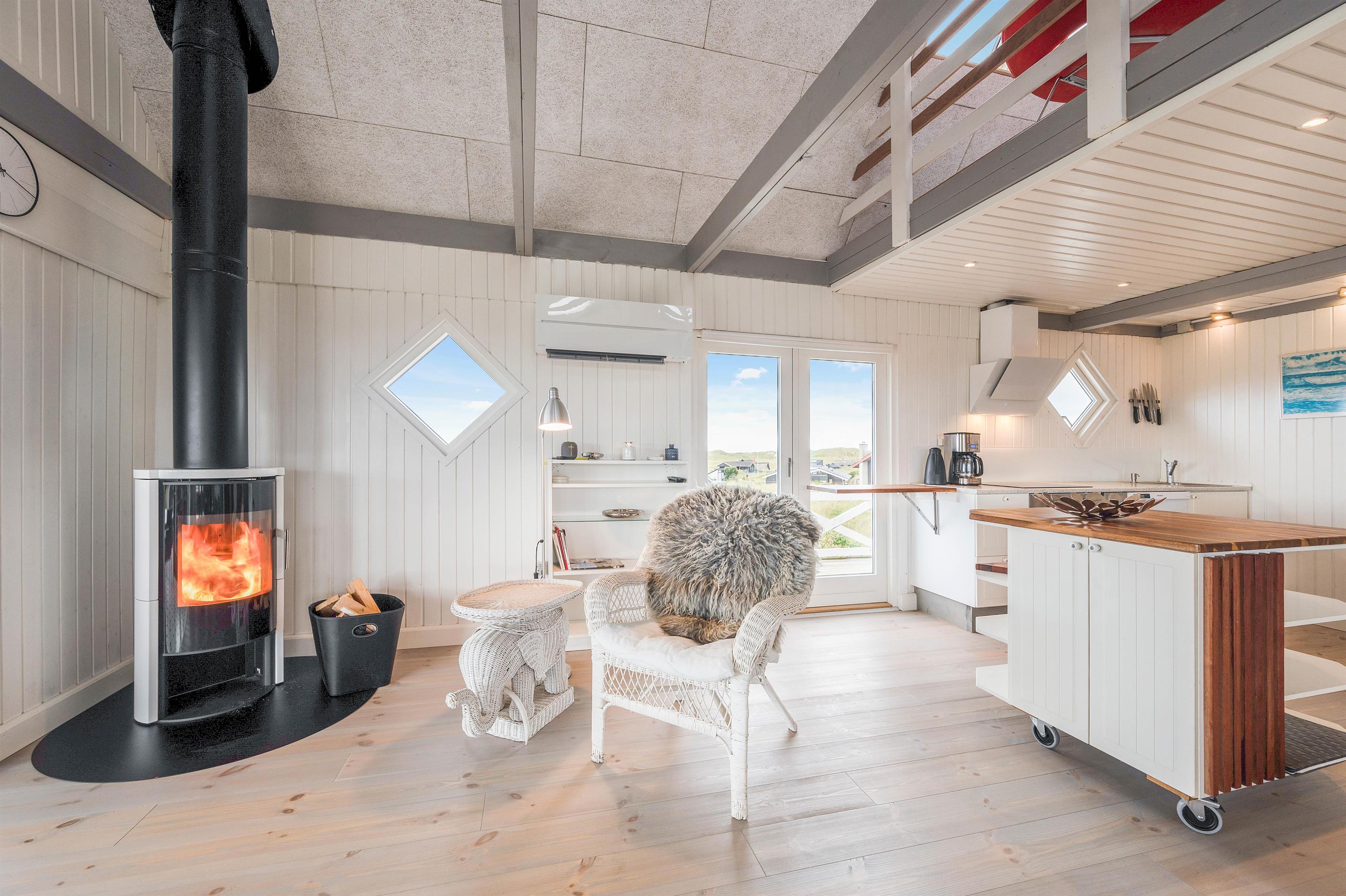 This 94-square-metre holiday home is heated by a heat pump, with the additional option of a wood-burning stove, perfect for creating cosy temperatures and that typical Danish holiday atmosphere on cooler evenings.