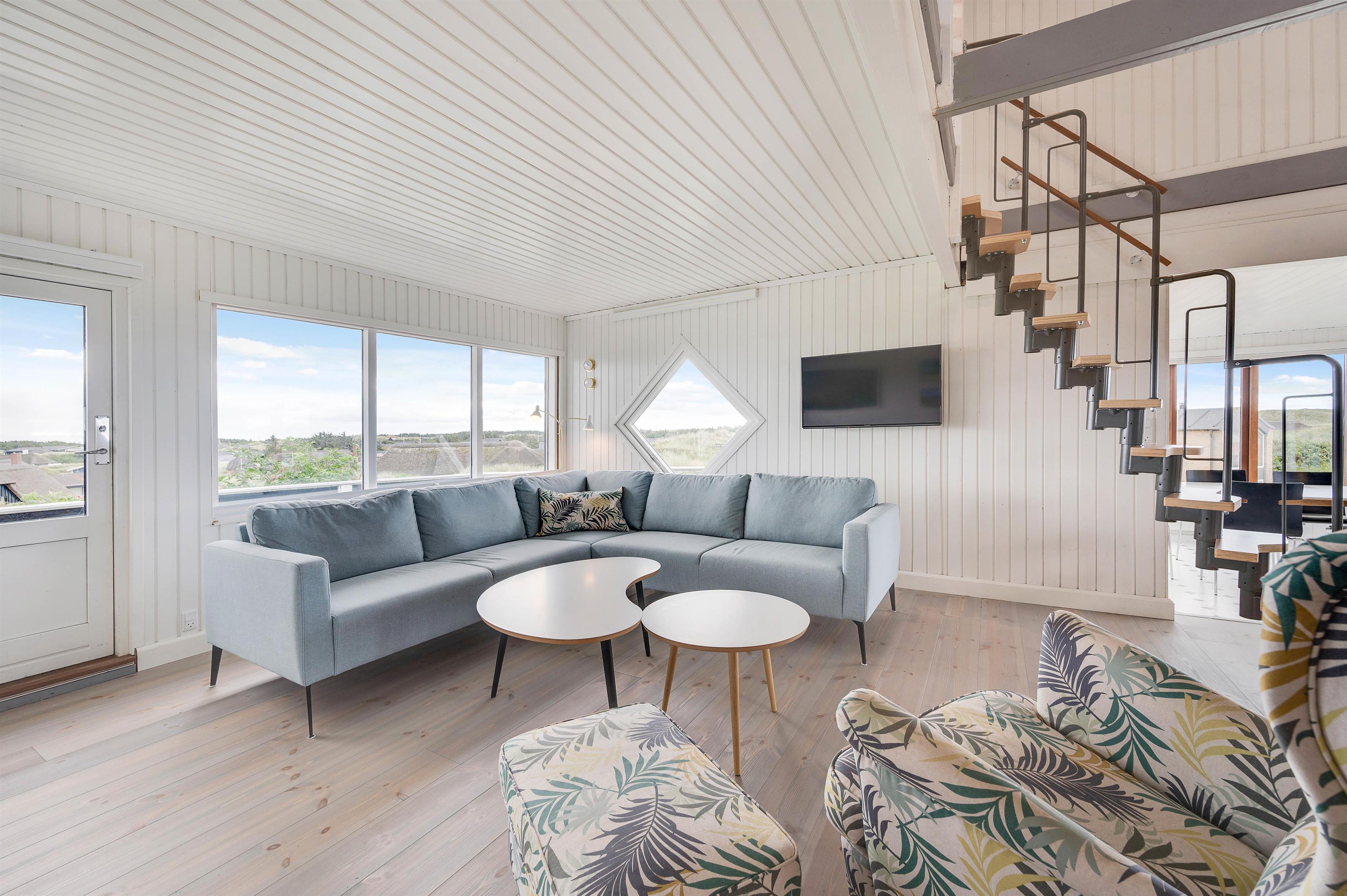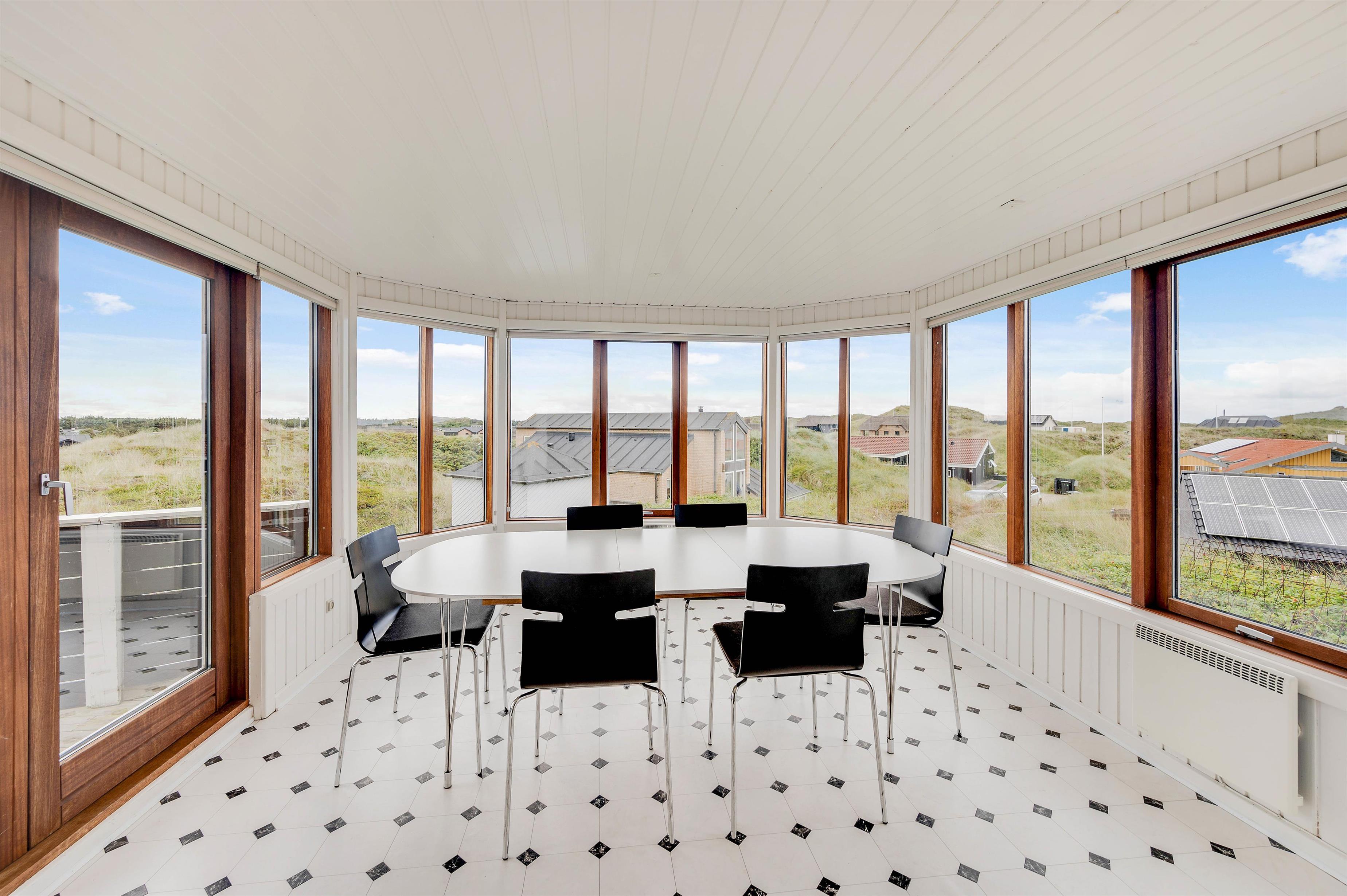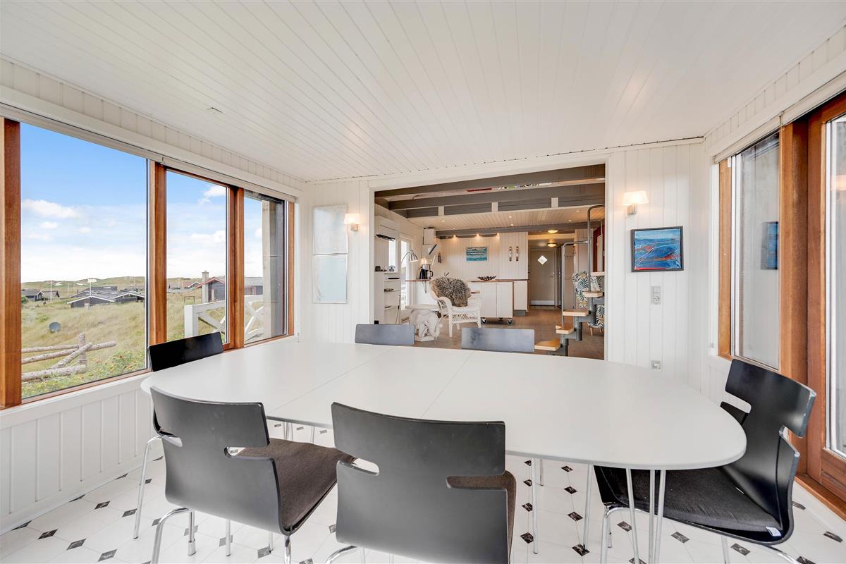 We're delighted to offer this bright holiday home with a conservatory at Hvidbjergvej 91 in Søndervig. Situated on a dune in beautiful surroundings, this cosy holiday home in Søndervig accommodates up to 4 people and your dog. The enclosed terrace and conservatory offer stunning panoramic views, including partial sea views. This distinctive holiday home offers accommodation across two levels, in close proximity to the beach and within a short distance of Søndervig's centre - ideal for small families looking to spend a fantastic holiday on the Danish West Coast.
