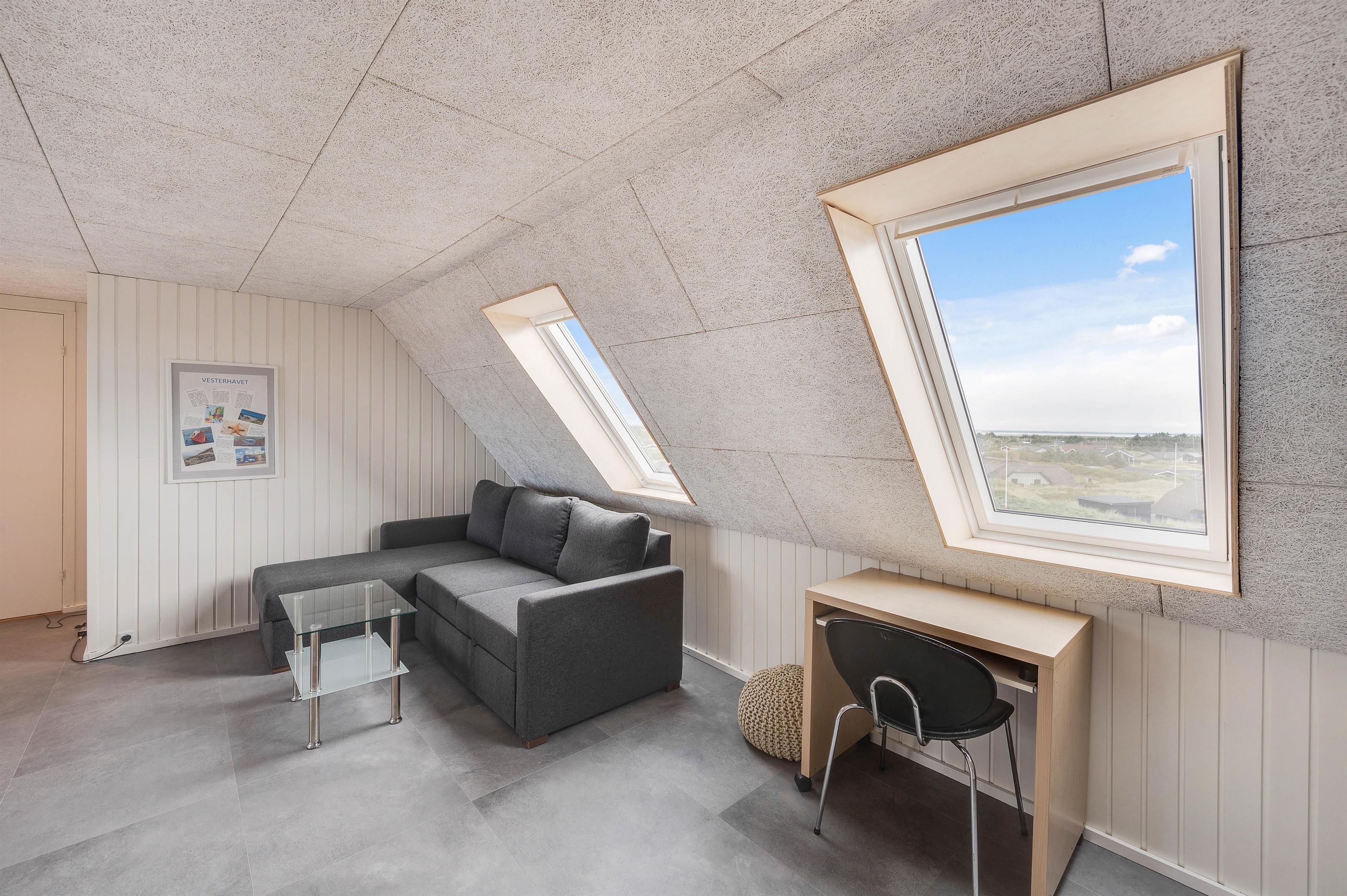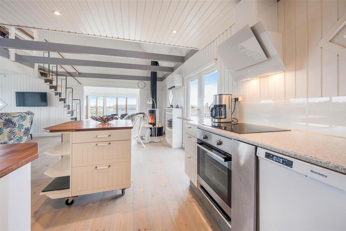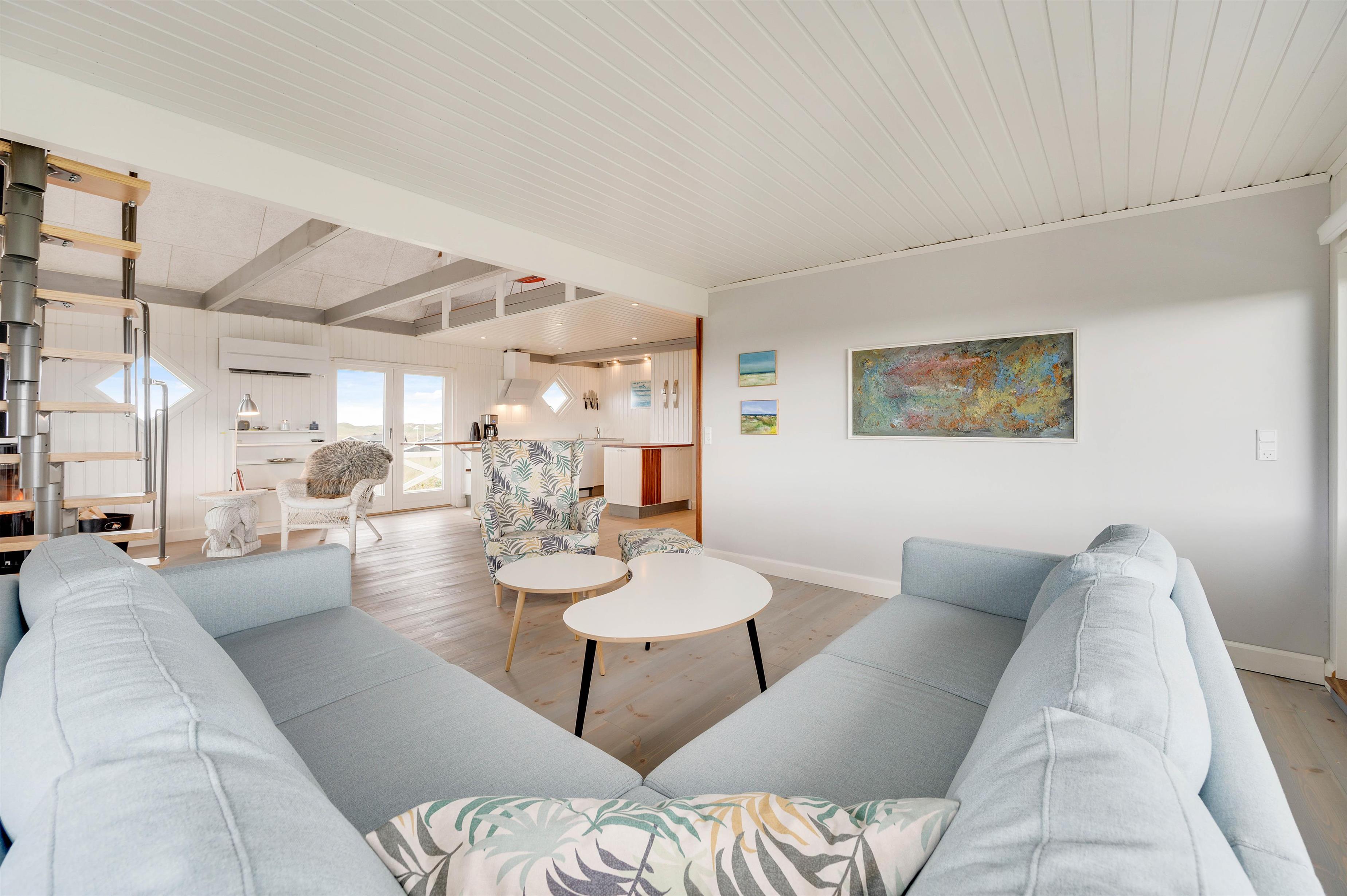 We're delighted to offer this bright holiday home with a conservatory at Hvidbjergvej 91 in Søndervig. Situated on a dune in beautiful surroundings, this cosy holiday home in Søndervig accommodates up to 4 people and your dog. The enclosed terrace and conservatory offer stunning panoramic views, including partial sea views. This distinctive holiday home offers accommodation across two levels, in close proximity to the beach and within a short distance of Søndervig's centre - ideal for small families looking to spend a fantastic holiday on the Danish West Coast.
