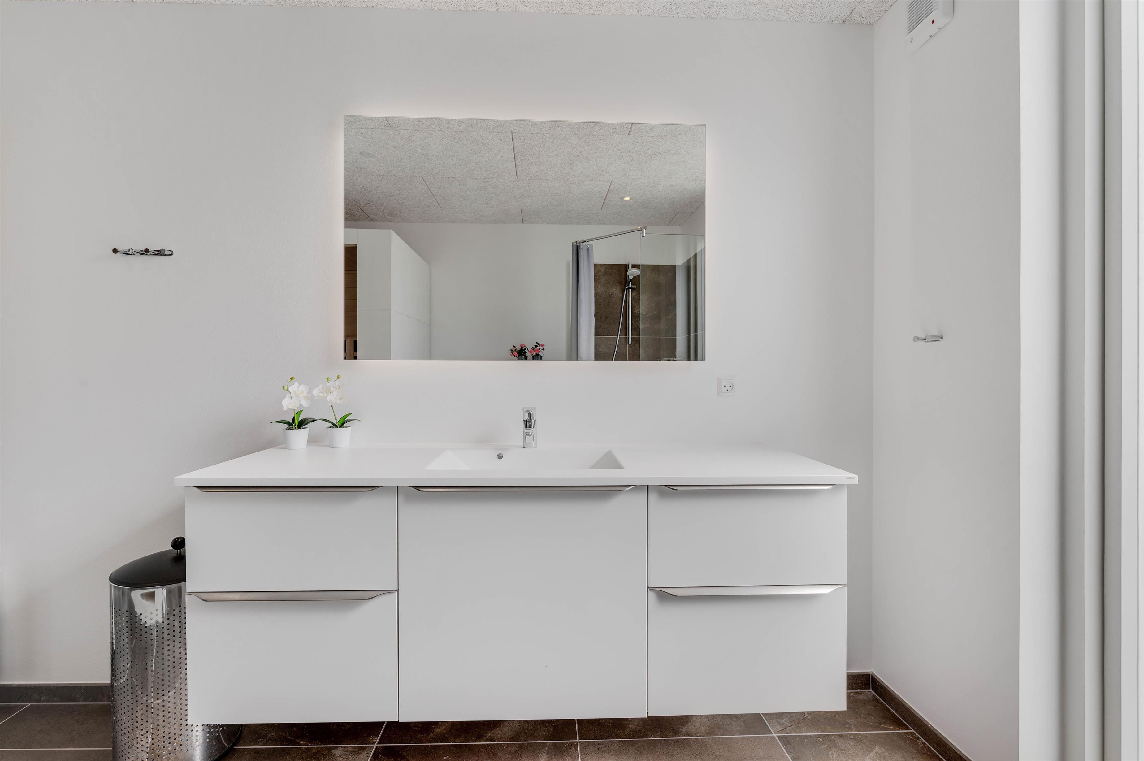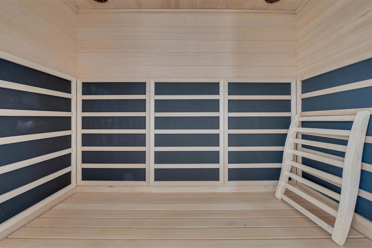 On less clement days, make yourself comfortable on the sofa with a good book and a hot cup of tea. A wood-burning stove provides both ambiance and warmth. Additionally, an energy-efficient heat pump ensures a pleasant indoor climate year-round. Both bathrooms feature underfloor heating, and the larger bathroom includes a sauna where you can recharge and truly unwind.