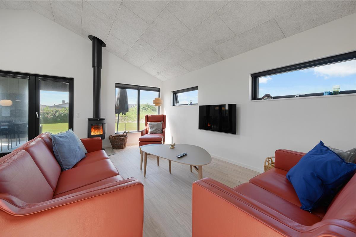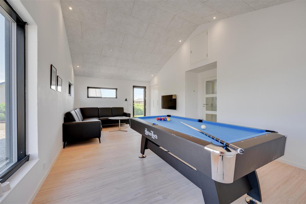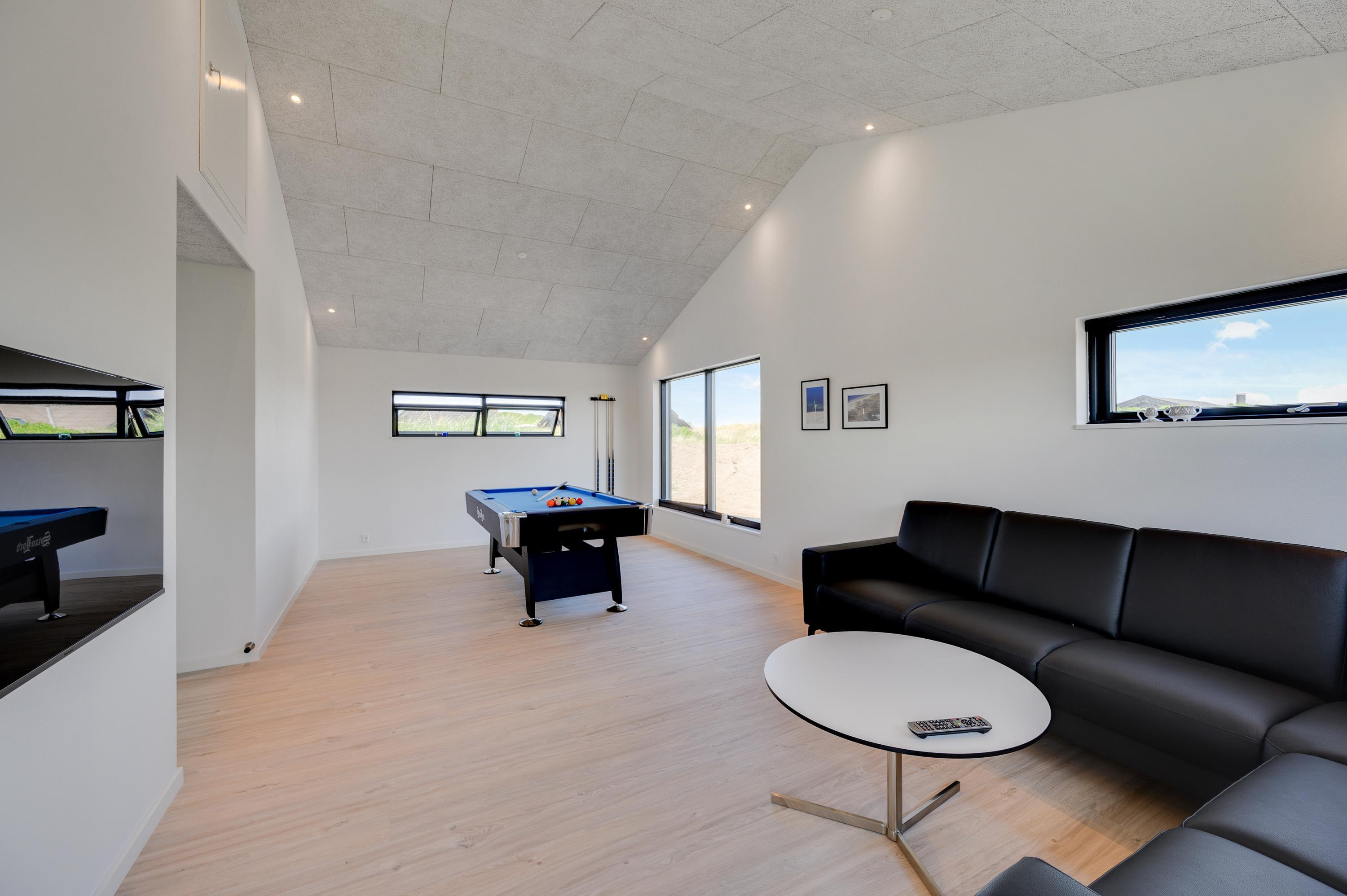 Dreaming of a holiday home in the dune landscape of West Jutland, so close to the sea you can hear the waves from the terrace? Then this holiday home at Hafavej 26 is definitely worth a look! Built in 2021, this 175-square-metre holiday home enjoys an absolutely stunning location. Up to 8 people can enjoy entertaining and relaxing holiday stays here, with amenities including a games room, sauna and outdoor hot tub. Dogs are also very welcome! If you're arriving by electric car, you'll find charging facilities right at the holiday home.