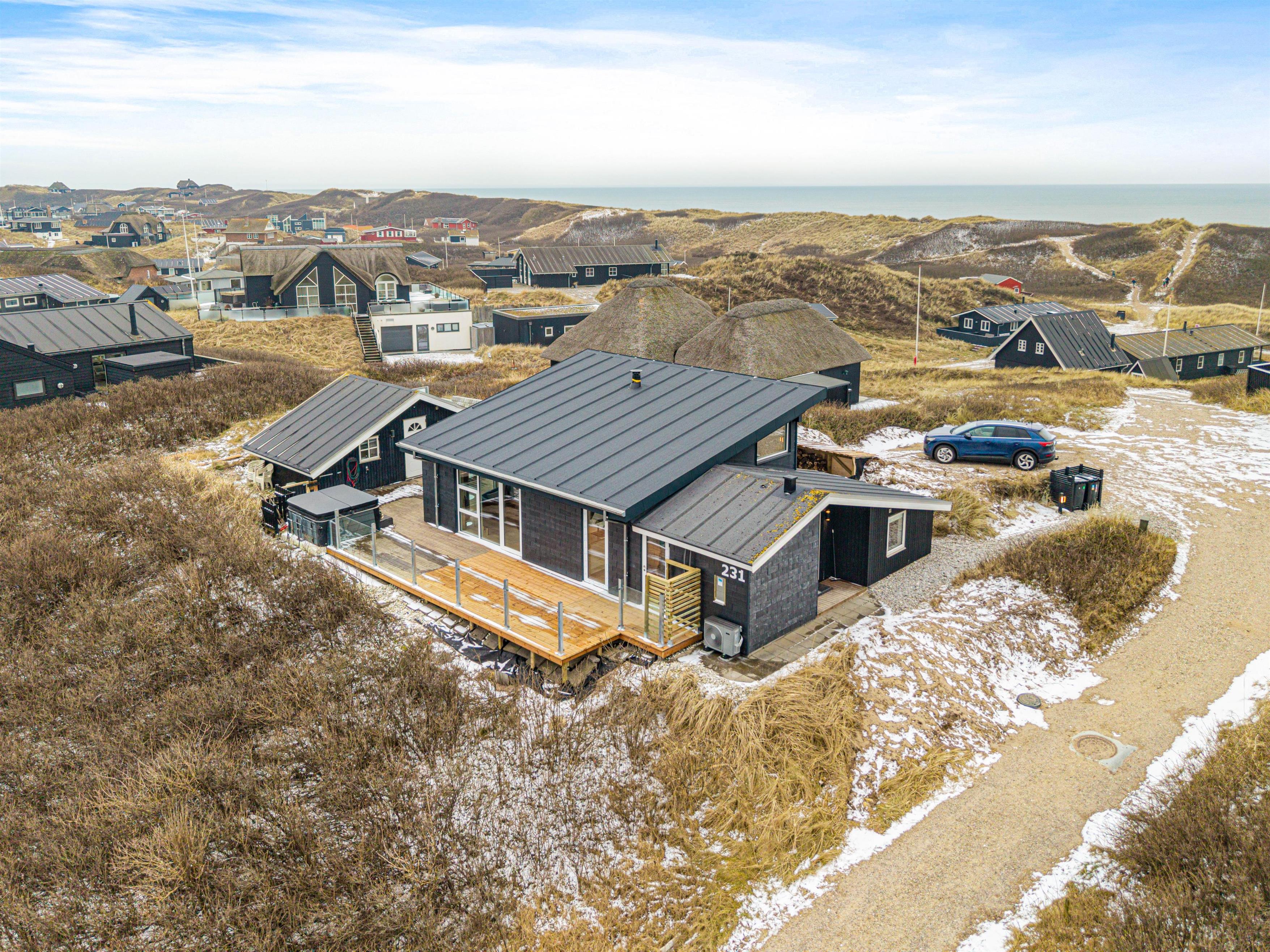 The holiday home at Lodbergsvej 231 is ideal for families and dog owners, as the terrace is enclosed and children can play freely in the sandbox. The outdoor spa offers pure relaxation while you enjoy the beautiful surroundings. After a long day at the beach, you can rinse the sand off your feet under the outdoor shower, which is available from April through October.