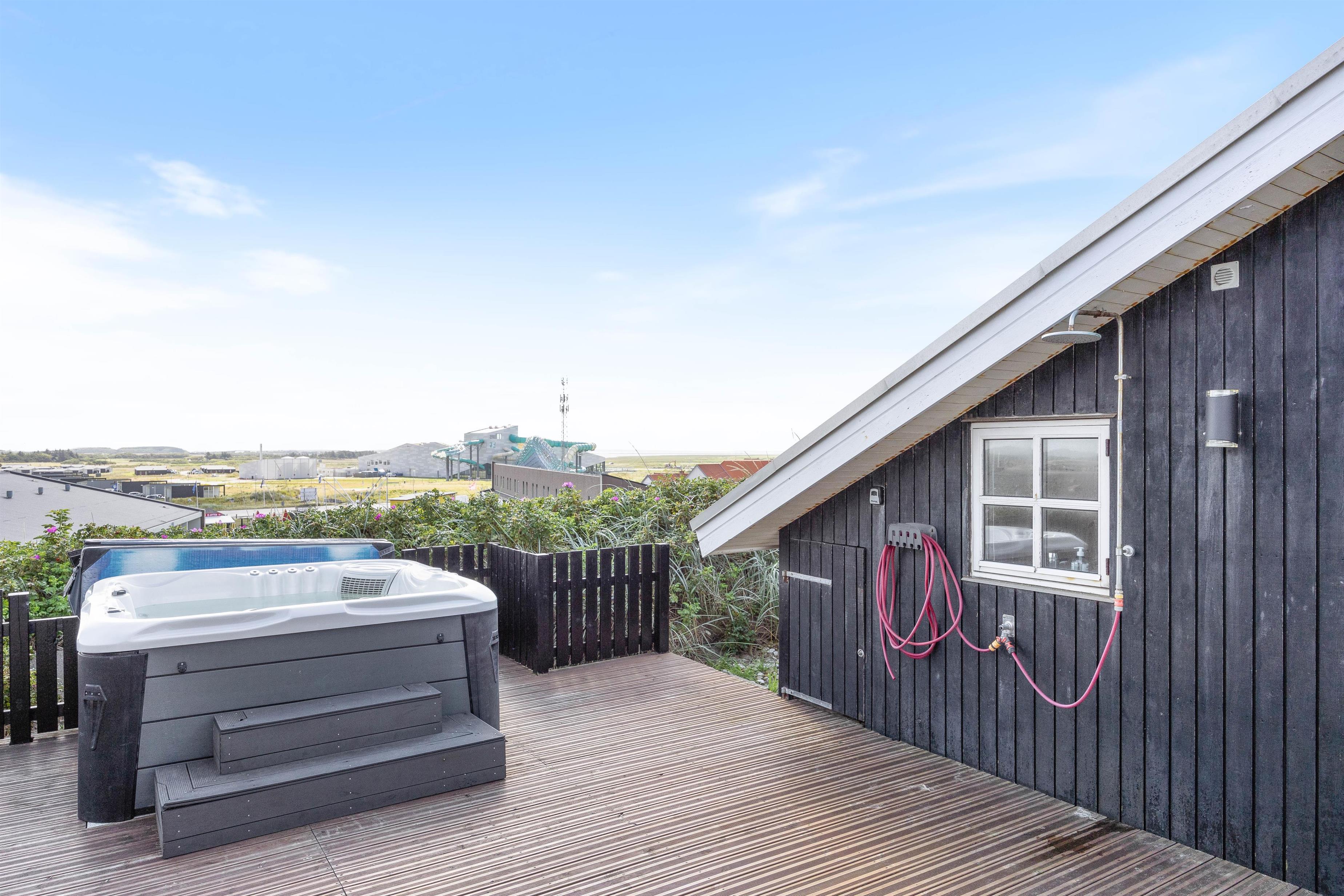 Enclosed terrace with outdoor spa and shower at Lodbergsvej 231