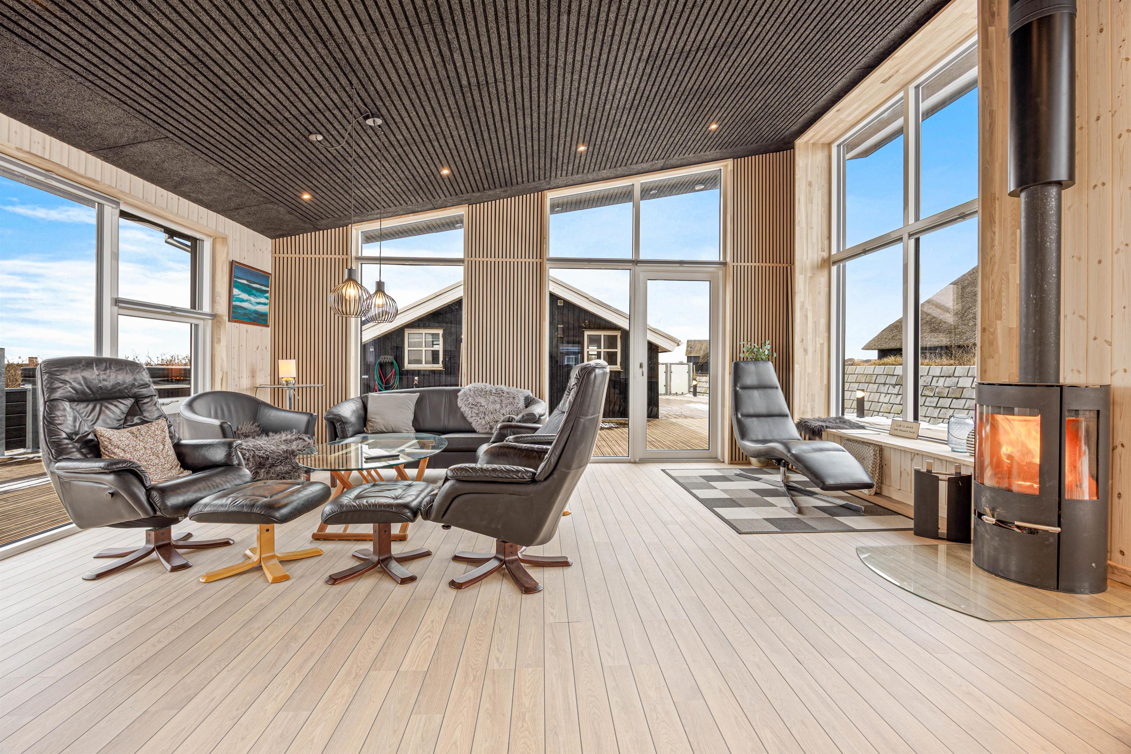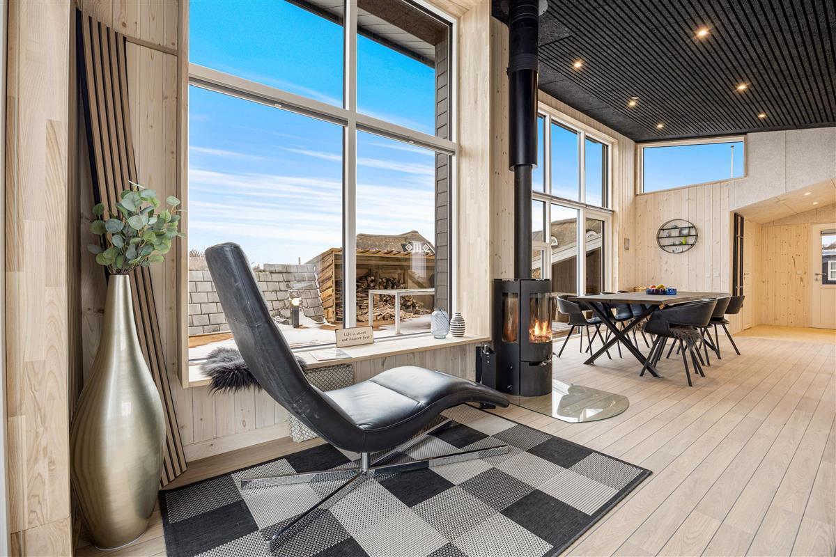 In the lovely living room, you can sit back and enjoy the view through the large windows that let in plenty of natural light. Light the wood-burning stove with complimentary firewood, listen to the gentle crackling of the fire, and simply relax.