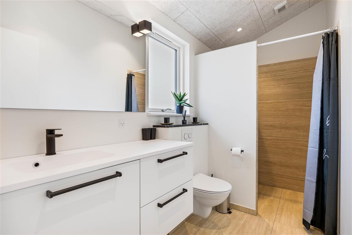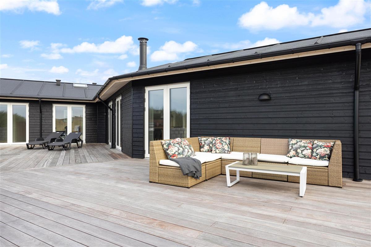 This beautiful holiday home in Sletten 13 features a wonderful wooden terrace, ideal for enjoying nature and creating unforgettable moments. The terrace is covered and wind-protected, allowing outdoor relaxation in any weather. Sunloungers provide the perfect spot to soak up the warm rays or simply recline in the shade with a good book. After a hot day, you can cool off using the refreshing outdoor shower.