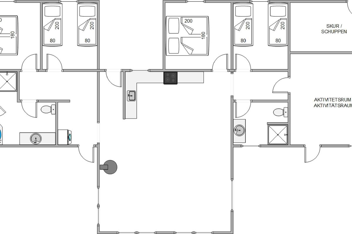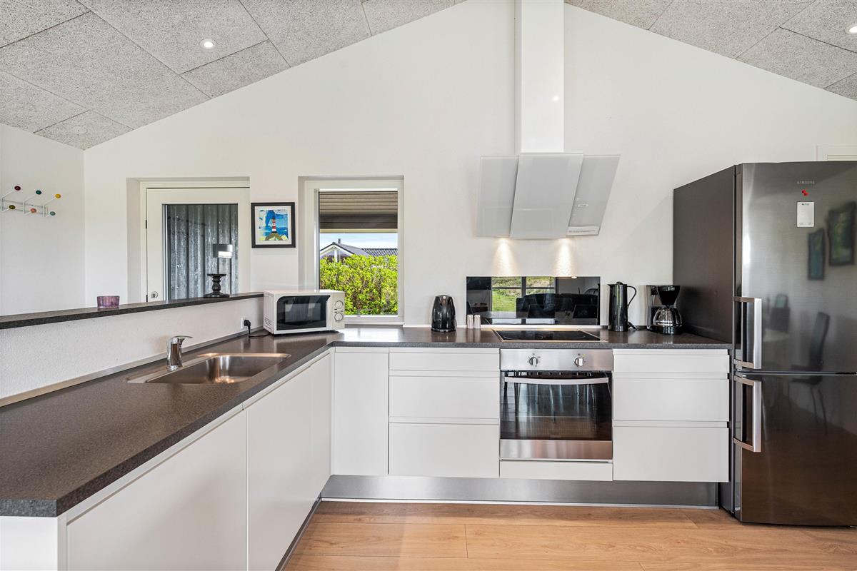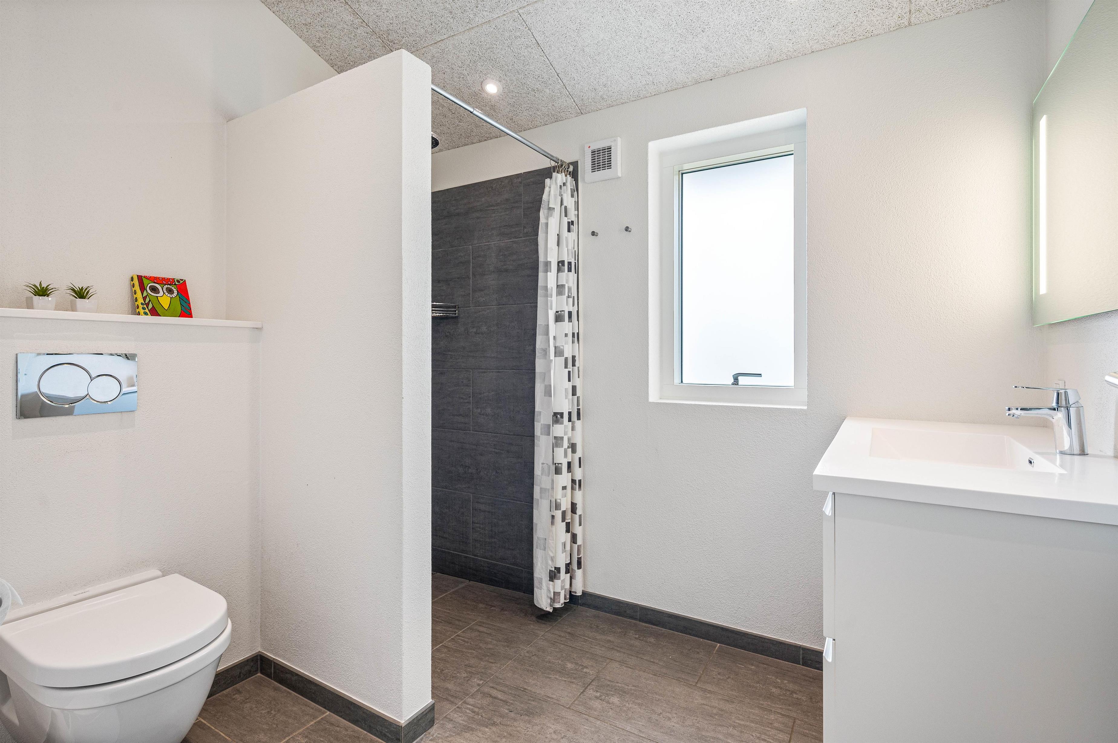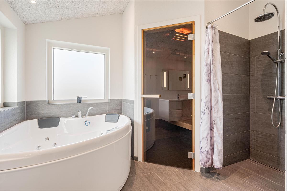 The holiday home has four bedrooms, with two double beds and four single beds. Here you can unwind after an eventful day and dream about your next Danish adventure. The two lovely bathrooms feature underfloor heating, with the larger bathroom housing the whirlpool and sauna access. Treat yourself to some downtime in your own private wellness area.