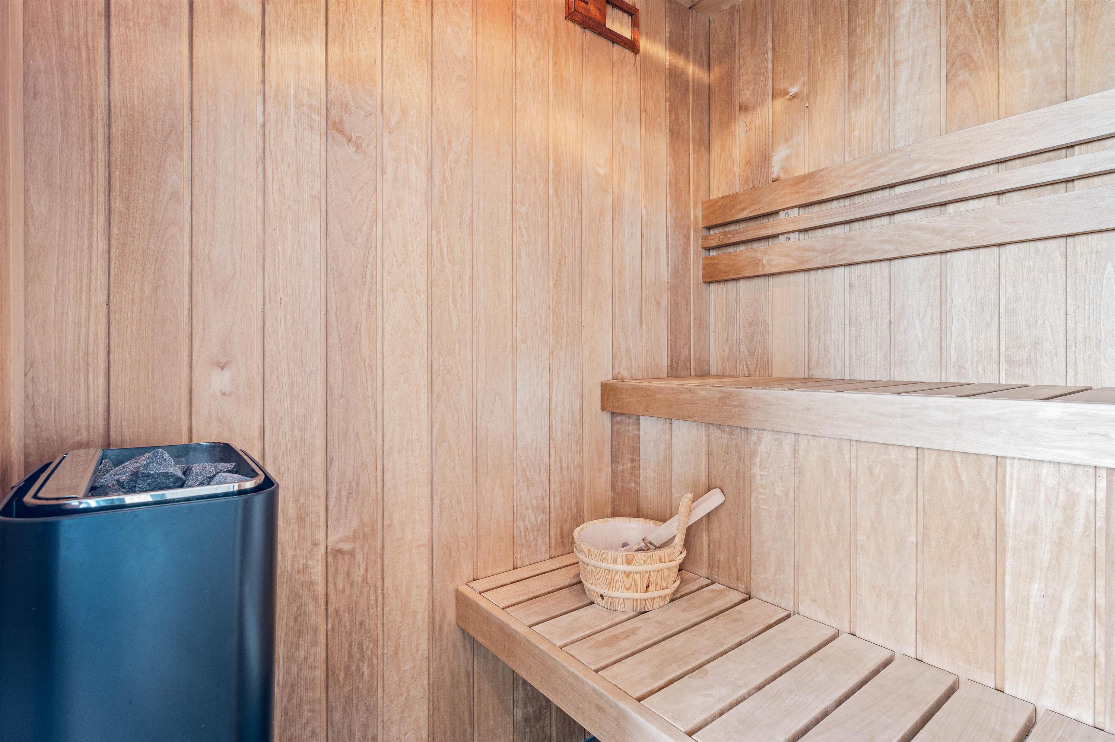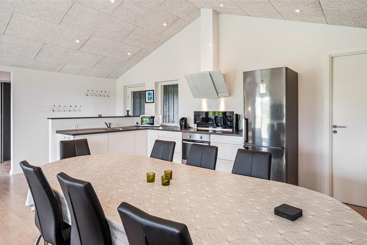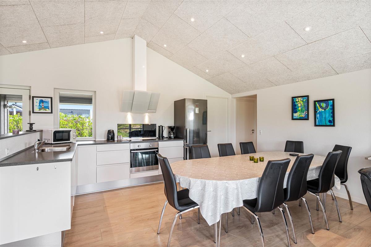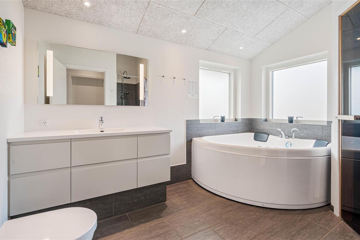 The holiday home has four bedrooms, with two double beds and four single beds. Here you can unwind after an eventful day and dream about your next Danish adventure. The two lovely bathrooms feature underfloor heating, with the larger bathroom housing the whirlpool and sauna access. Treat yourself to some downtime in your own private wellness area.