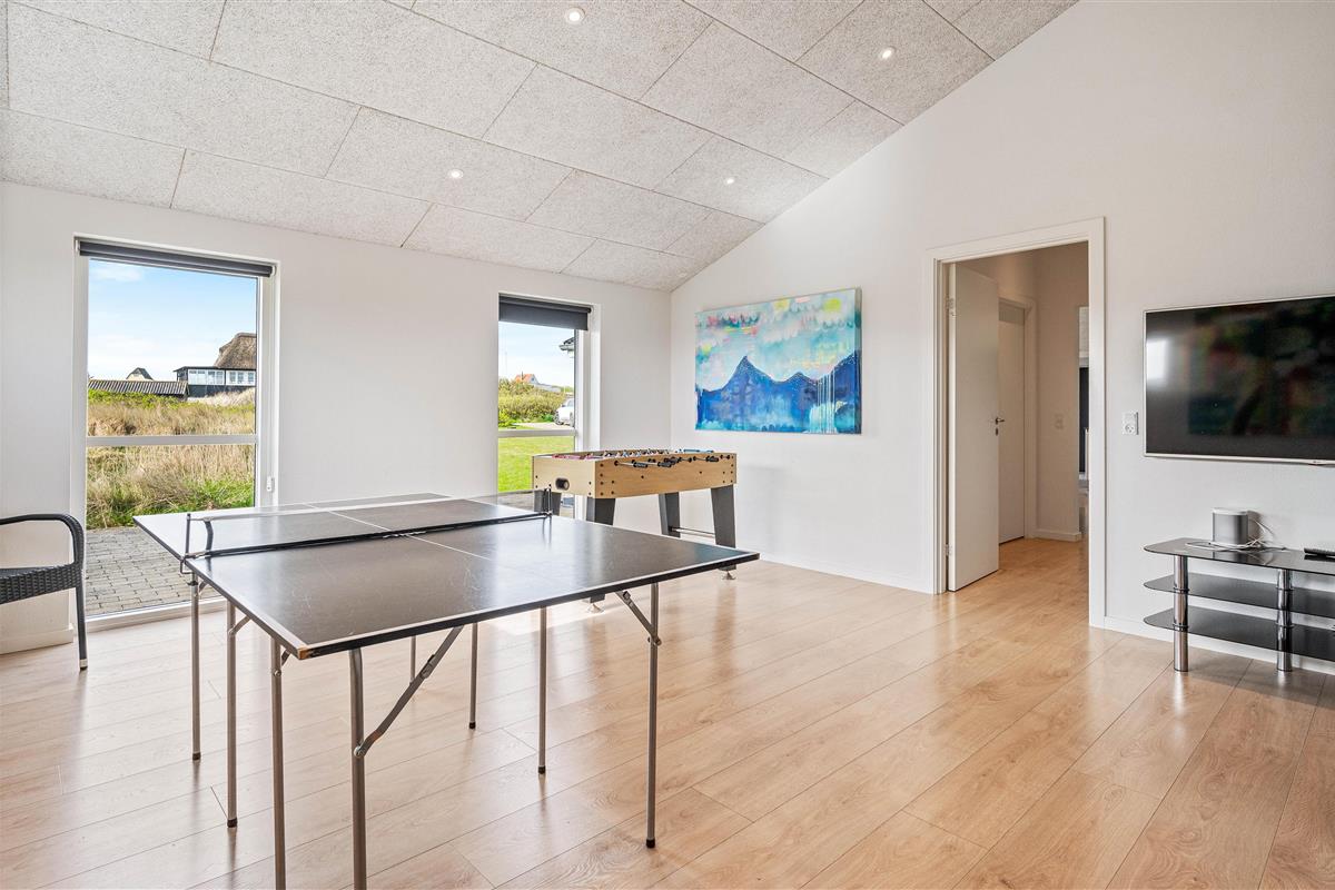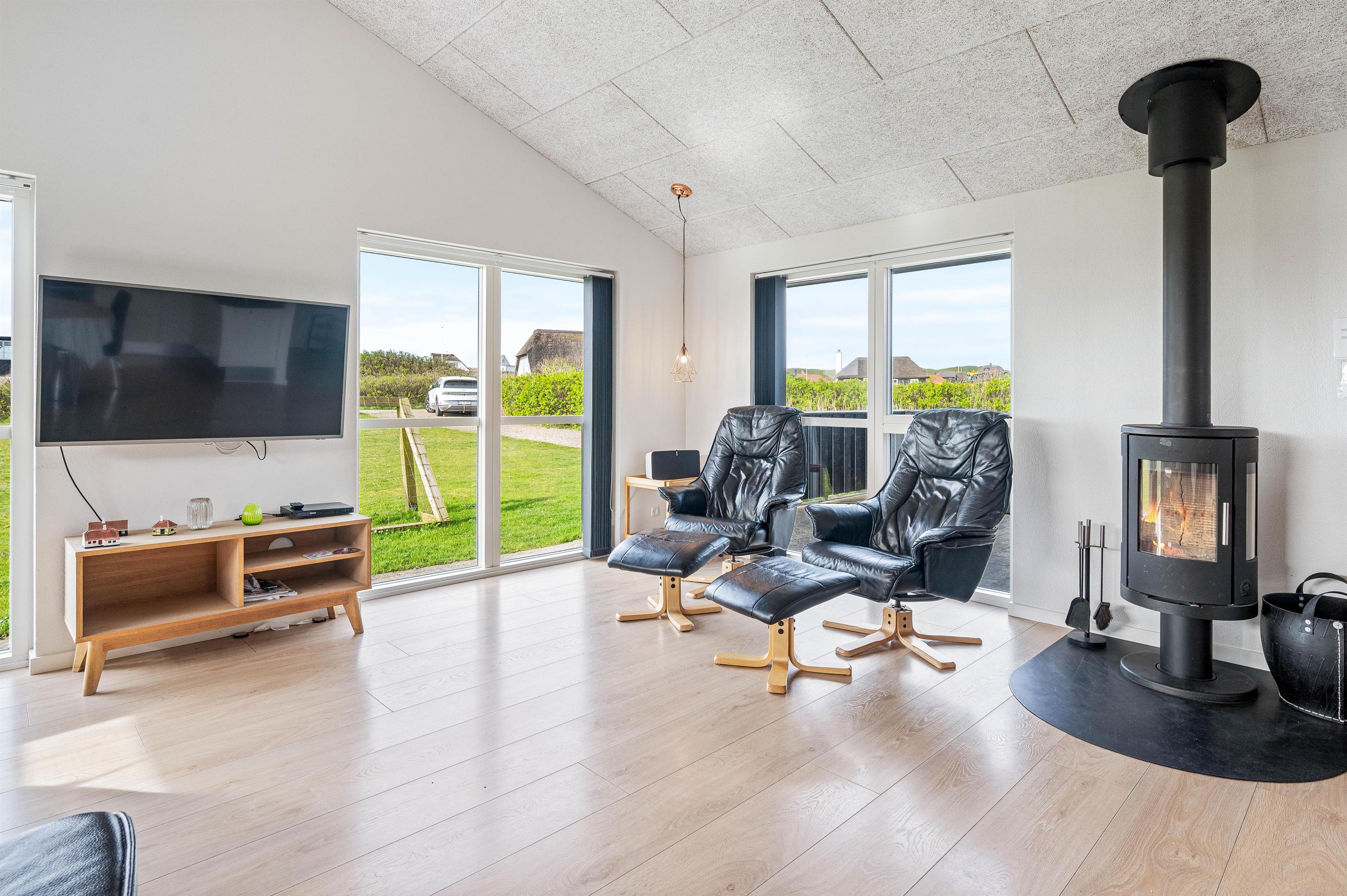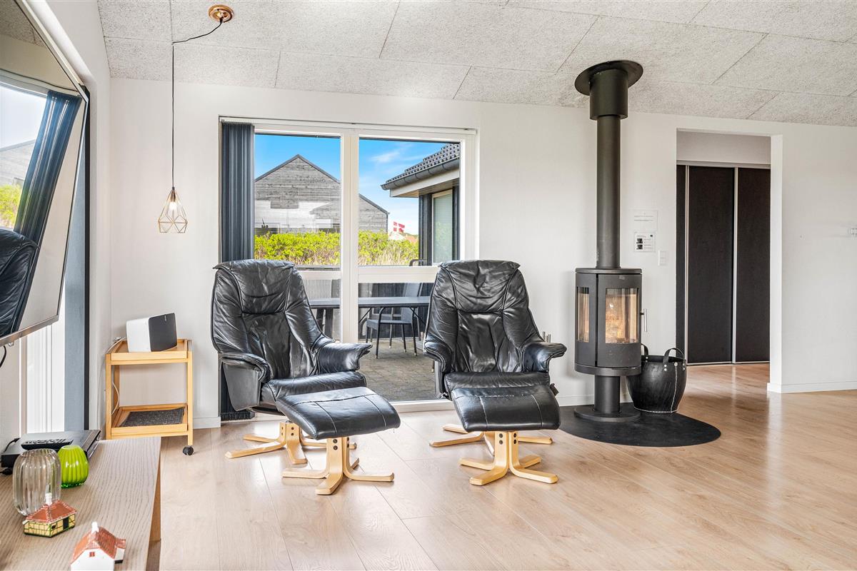 The holiday home sits on a large plot, 300 metres from the beautiful North Sea beach and 500 metres from Søndervig centre. There are various terrace areas, including a fully enclosed section, particularly useful if you're bringing a dog. Children can play football on the large lawn while you fire up the barbecue or relax on the sun loungers.