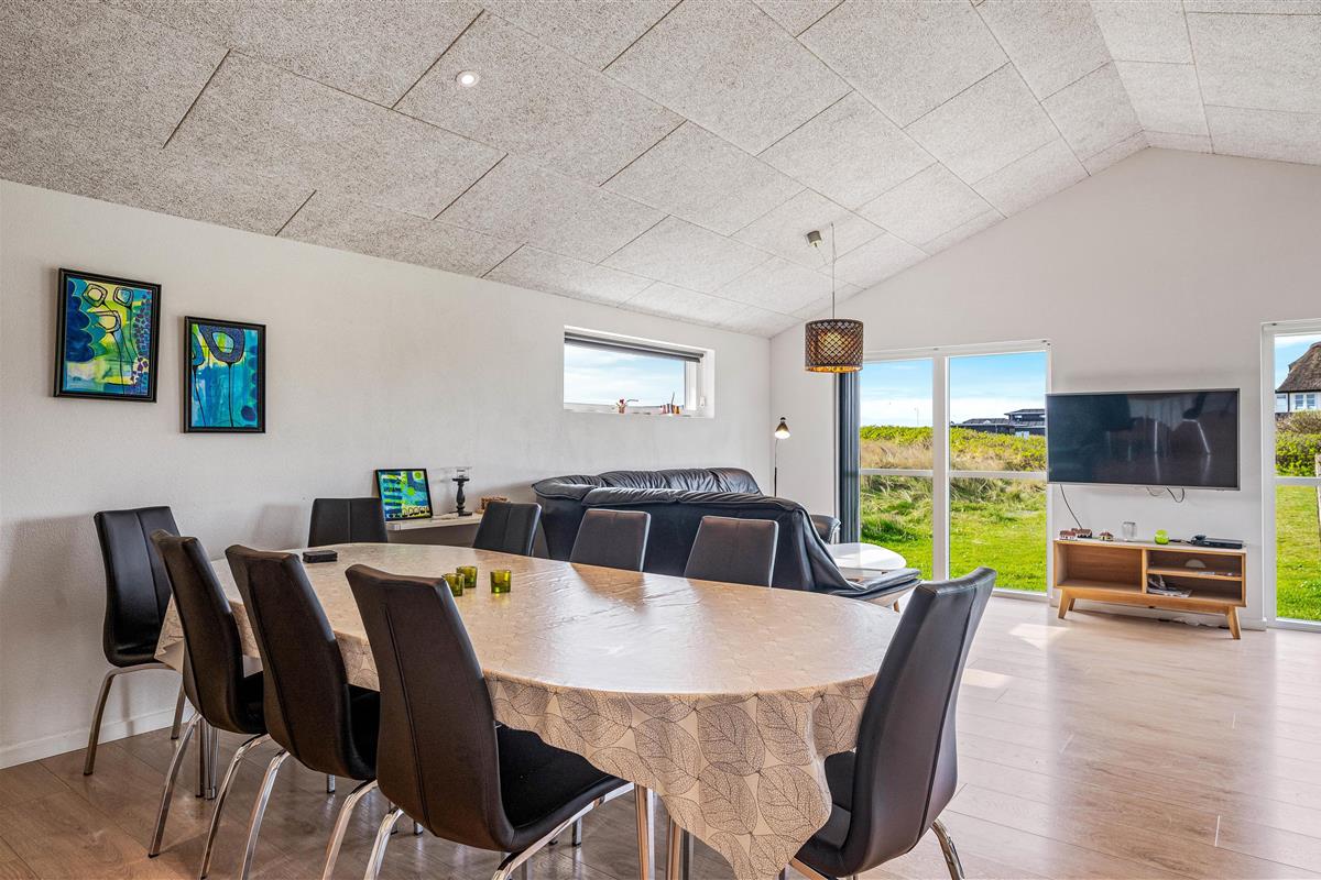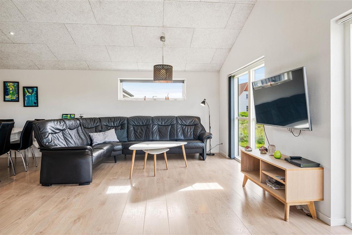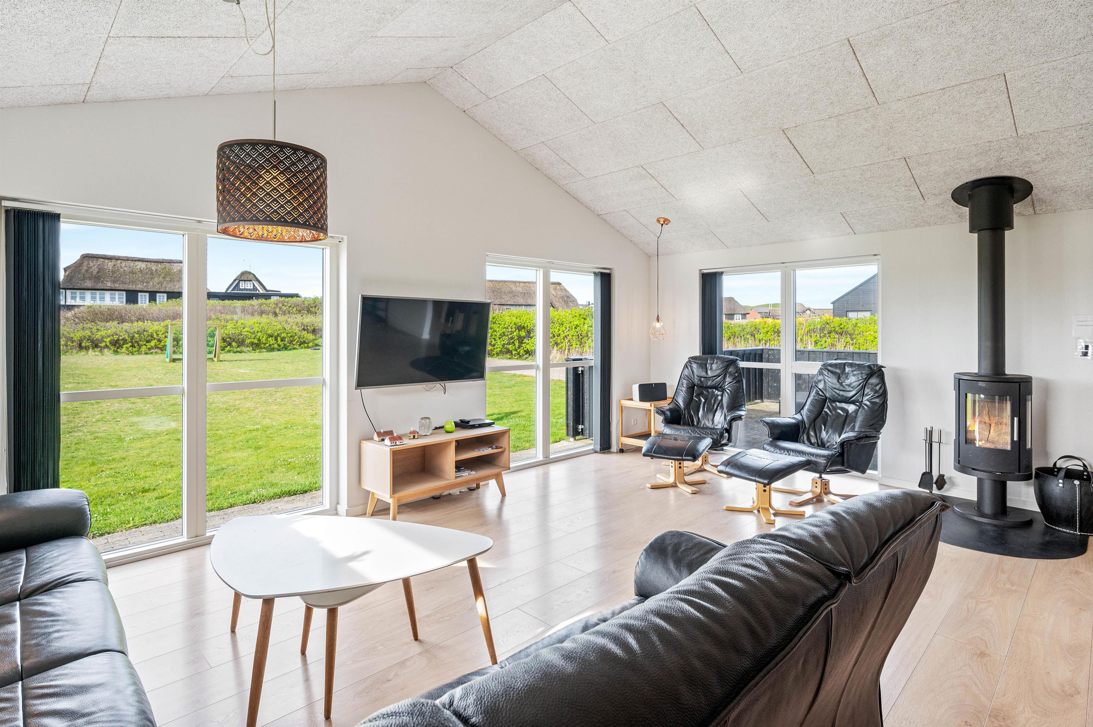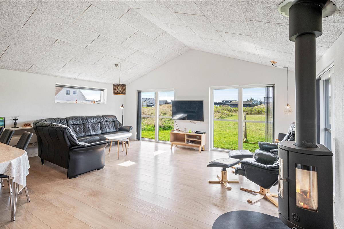 The holiday home sits on a large plot, 300 metres from the beautiful North Sea beach and 500 metres from Søndervig centre. There are various terrace areas, including a fully enclosed section, particularly useful if you're bringing a dog. Children can play football on the large lawn while you fire up the barbecue or relax on the sun loungers.