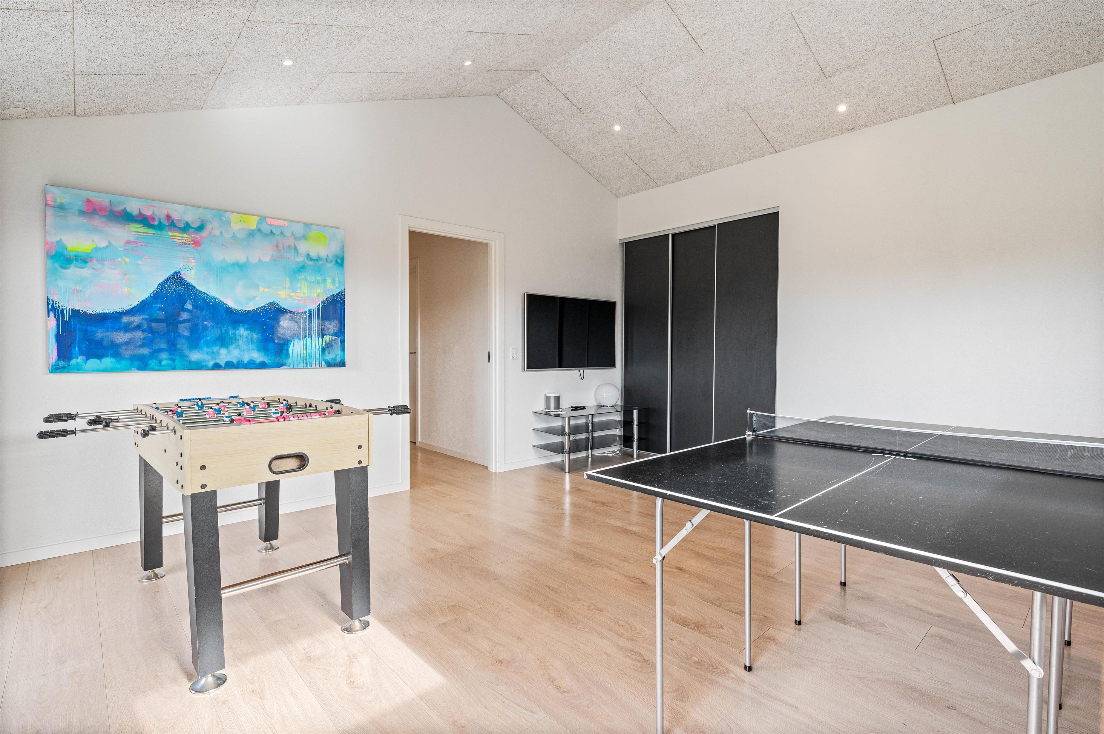 Another highlight is the games room, ensuring entertainment throughout your stay. Challenge each other to table tennis and table football matches to crown the holiday champion. The holiday home also features high-speed fibre broadband and a large flat-screen TV. Children can connect their gaming consoles here, providing entertainment even during less favourable weather.