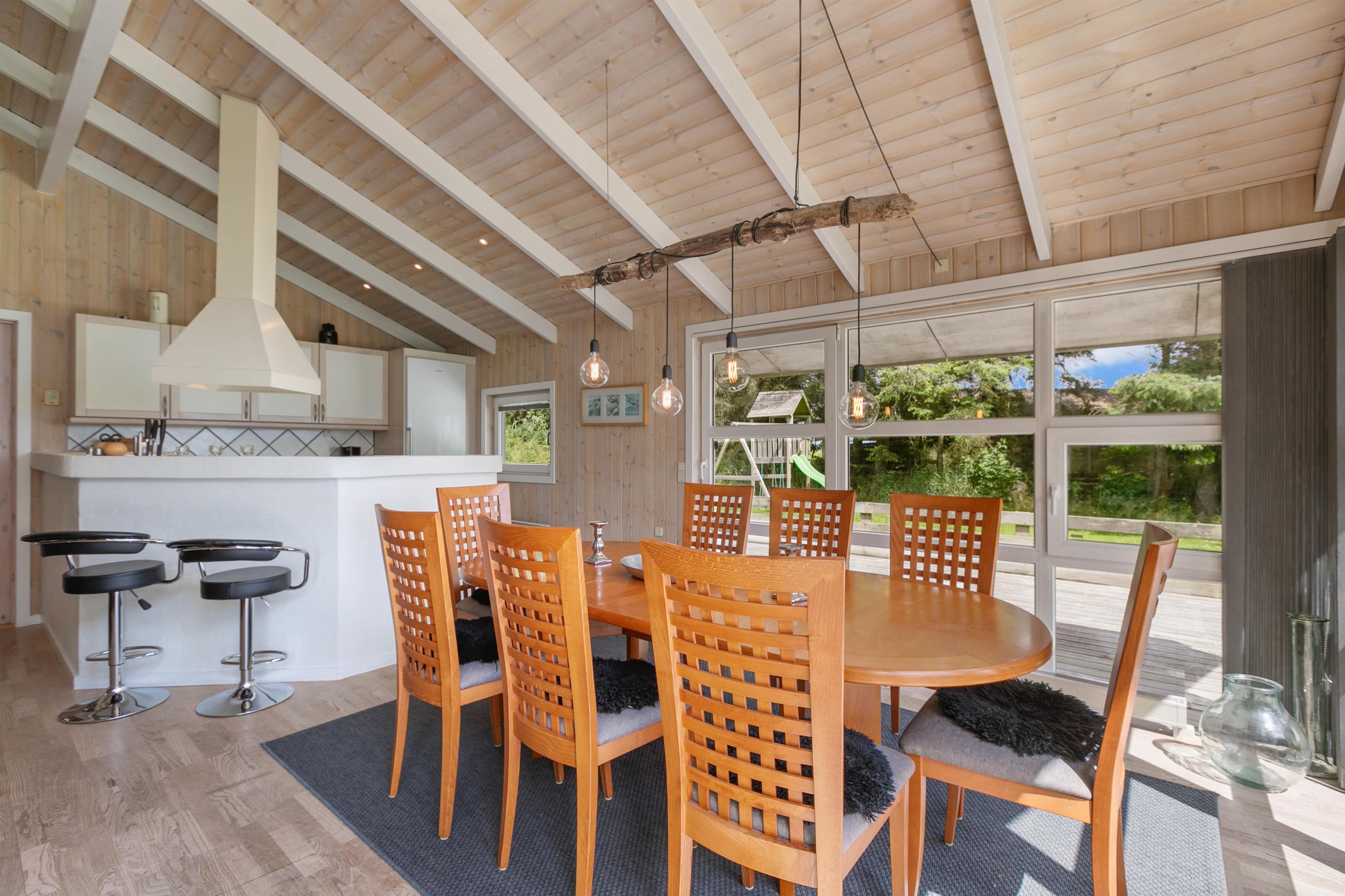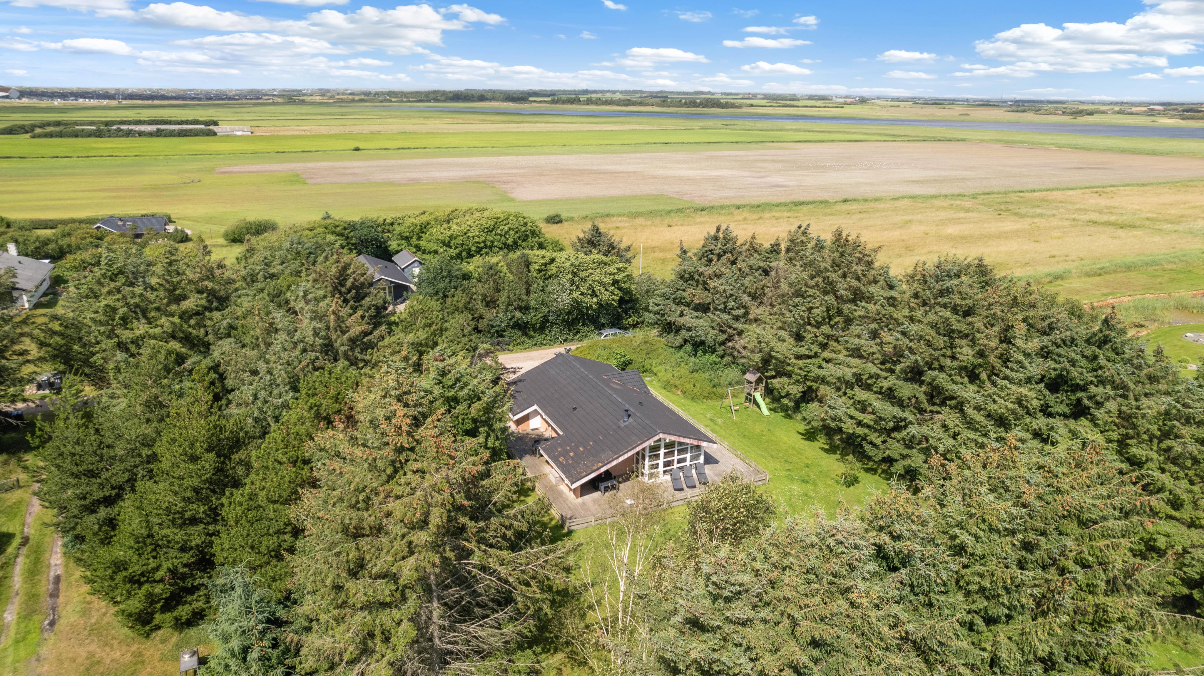 This charming wooden holiday home at Fyrrekrat 12 provides the perfect setting for a wonderful family holiday away from the hustle and bustle of everyday life. The holiday home (Casa Qvistgaard), accommodating up to 8 people and 2 dogs, offers a completely secluded location surrounded by tall trees and a large meadow, where you'll find a campfire pit and can observe abundant wildlife while enjoying views over Ringkøbing Fjord.