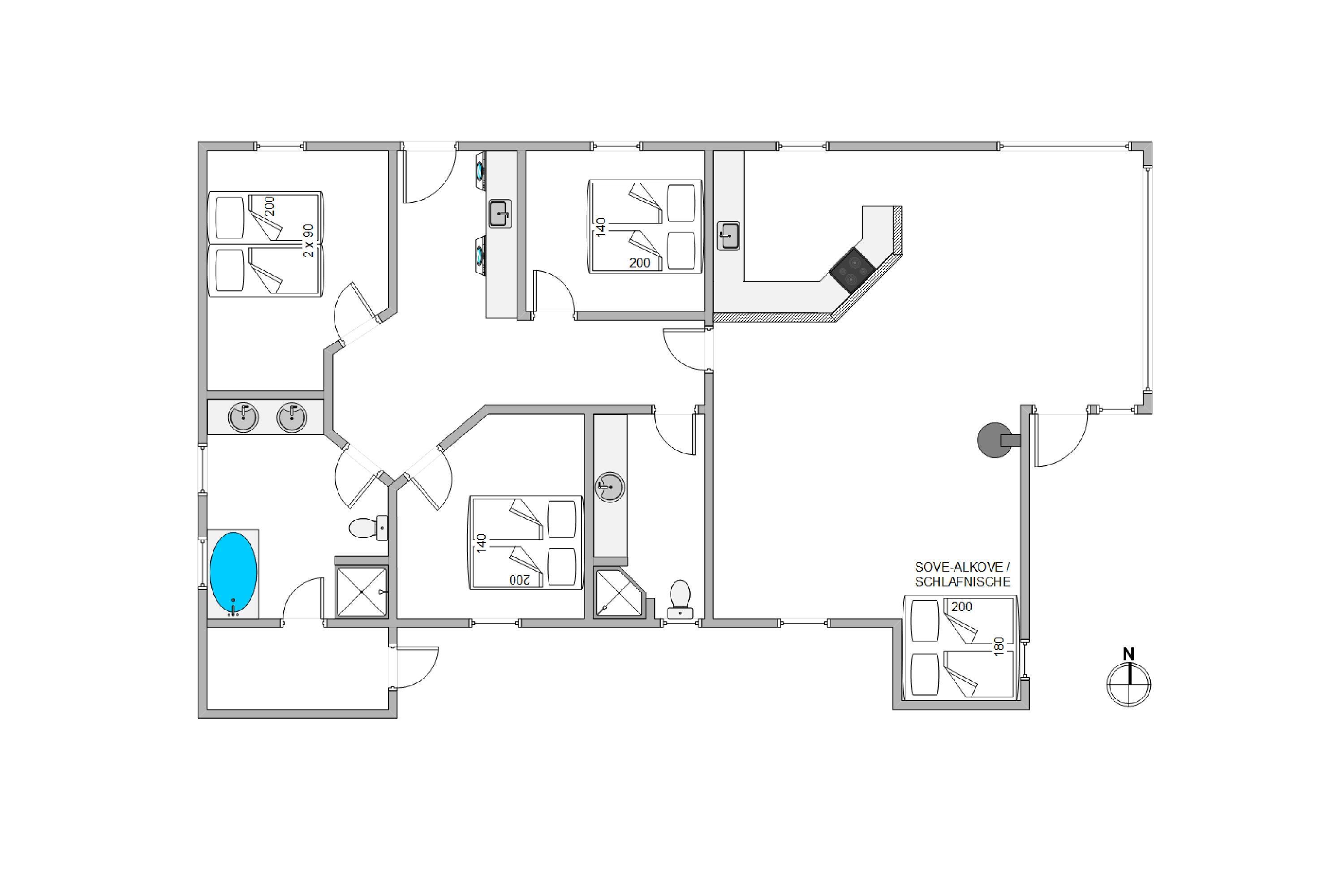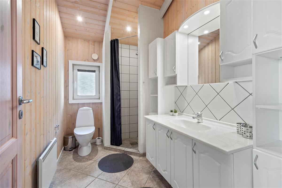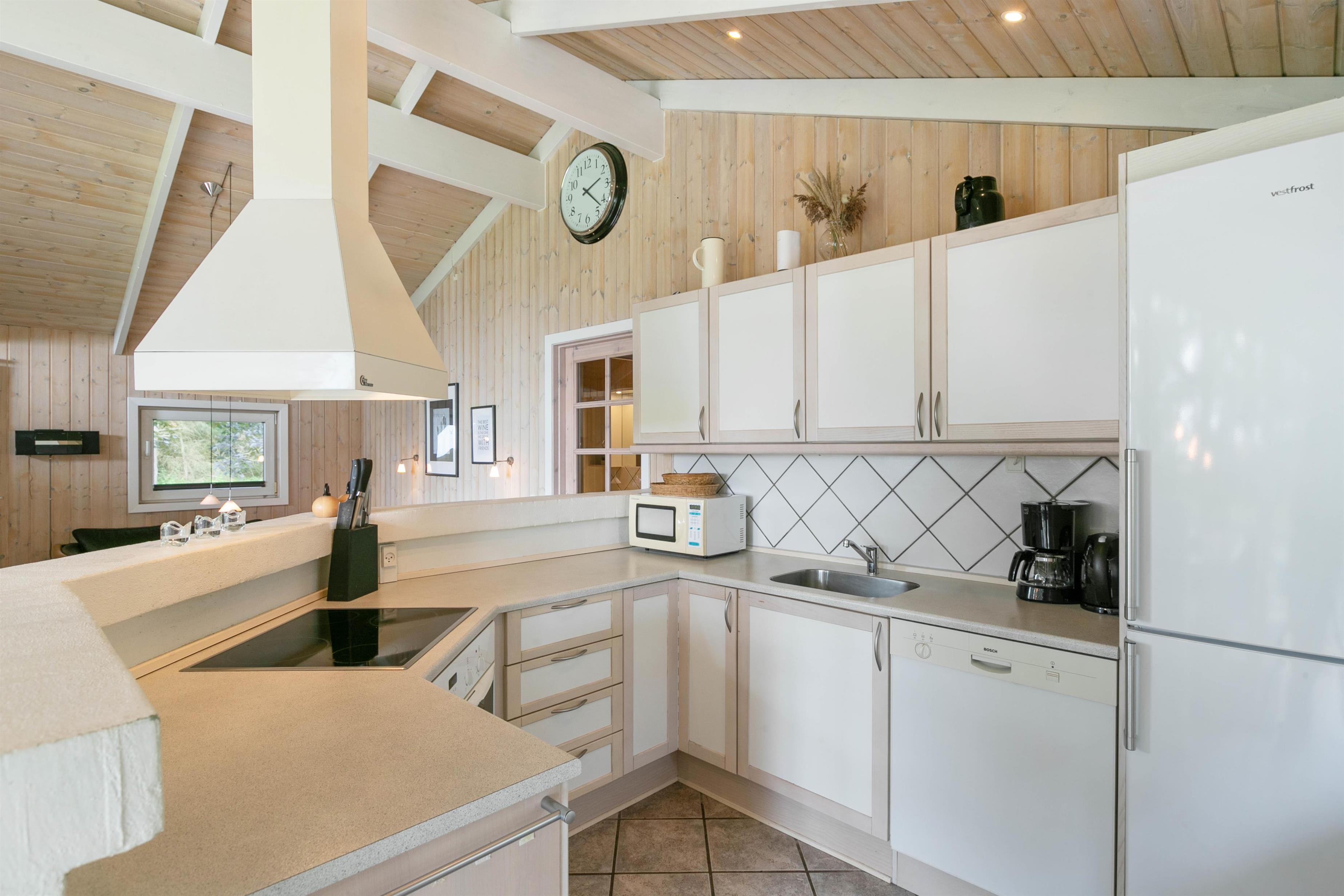 The holiday home features two bathrooms, both with underfloor heating. The larger bathroom includes a whirlpool, perfect for relaxing after a long day in the fresh air. Light some candles and unwind - a lovely way to end a wonderful day. Practical amenities like the washing machine and tumble dryer are available, helping you pack lighter for your stay.