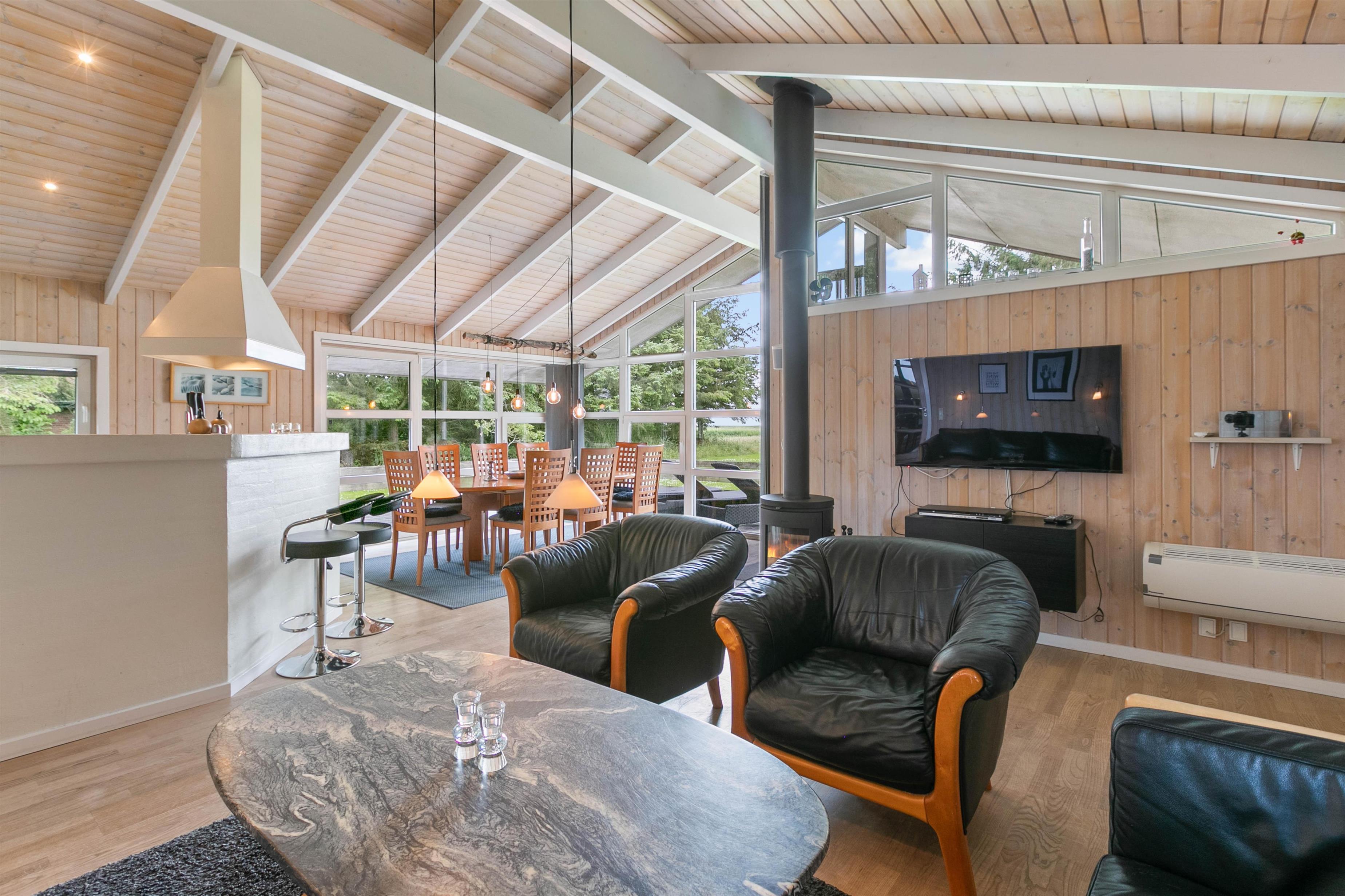 Large windows flood the house with natural light and offer panoramic views across the terrace and grounds to the fjord. Foxes, hares, deer and flocks of birds pass by - simply look out the window to experience nature's diversity. The grounds include a campfire pit where you can add a special touch to your holiday by enjoying an evening around the fire, perhaps making traditional campfire bread.