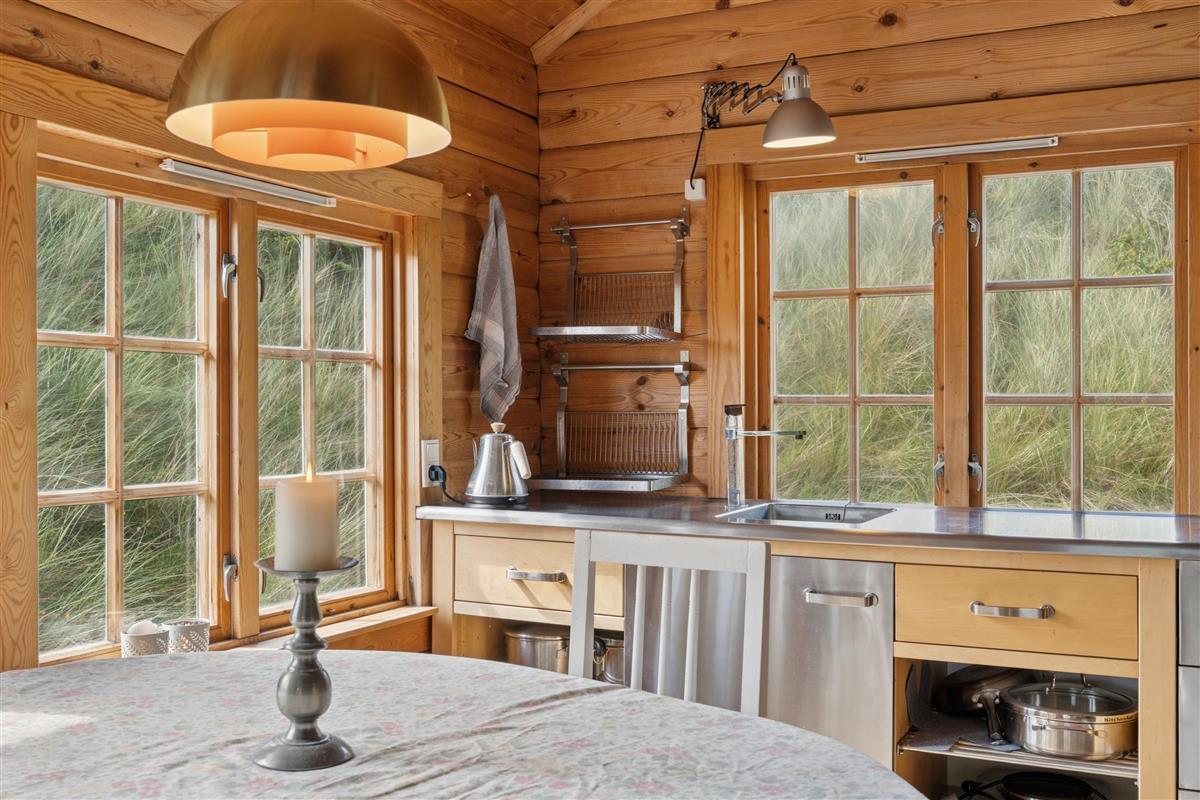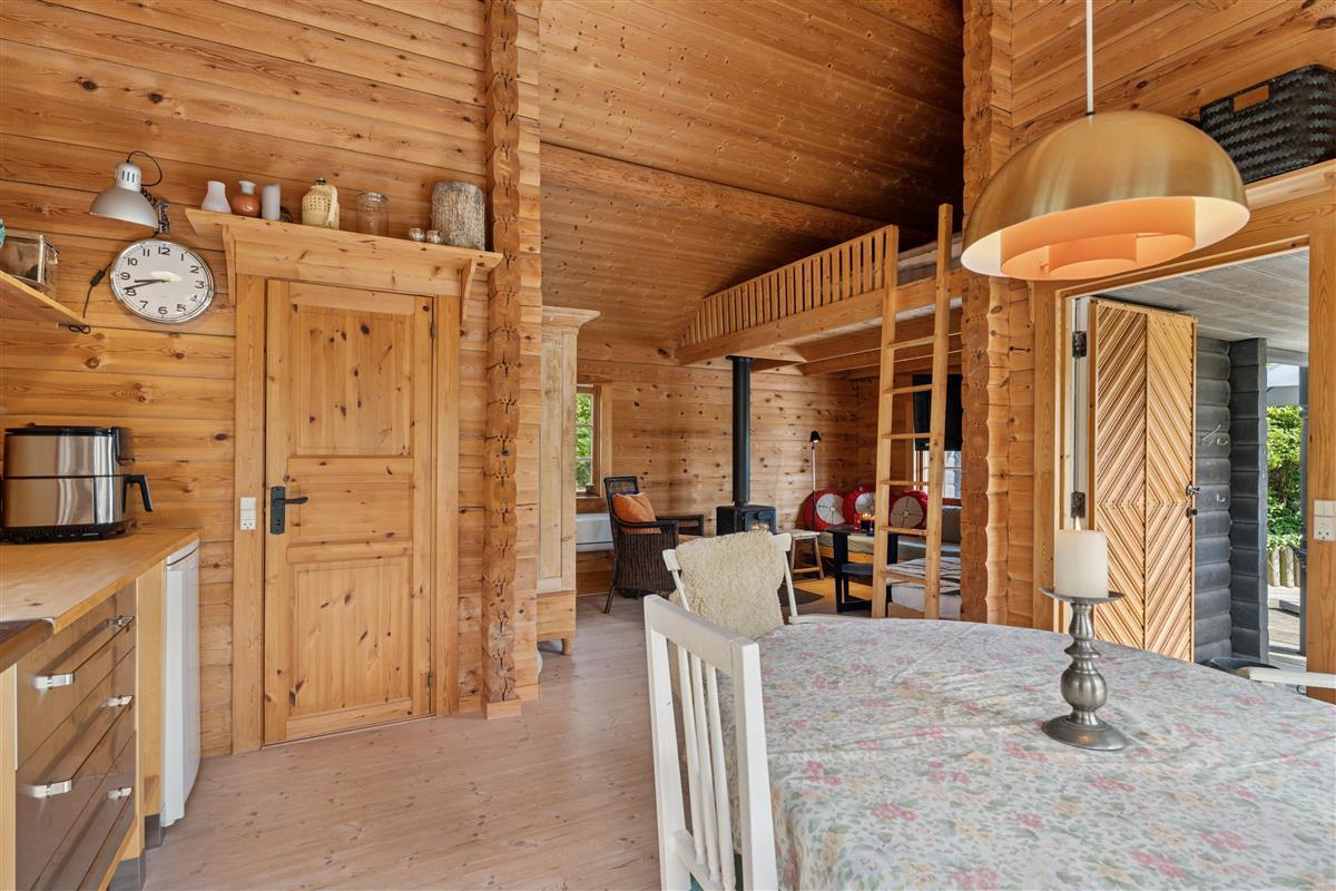 Dieses kleine Ferienhaus begrüßt euch mit seiner charmanten Einrichtung und versprüht gleichzeitig pure Gemütlichkeit. Auf einer gut genutzten Fläche von 30 m² könnt ihr eure Zweisamkeit genießen. Im offenen Wohnbereich könnt ihr gemeinsam kochen und auch gemeinsam den Abwasch erledigen, da es im Ferienhaus keine Spülmaschine gibt. Zum Kochen stehen euch 2 freistehende Kochplatten und ein Air Fryer zur Verfügung. Das Ferienhaus hat eine energieeffiziente Luft-Luft-Wärmepumpe, die das ganze Jahr über für angenehme Temperaturen sorgt. Der Holzofen sorgt an kühlen Abenden für Wärme und Gemütlichkeit. Das Doppelbett, 140 cm x 200 cm, befindet sich auf dem Hems, in dem ihr es euch richtig kuschelig machen könnt.