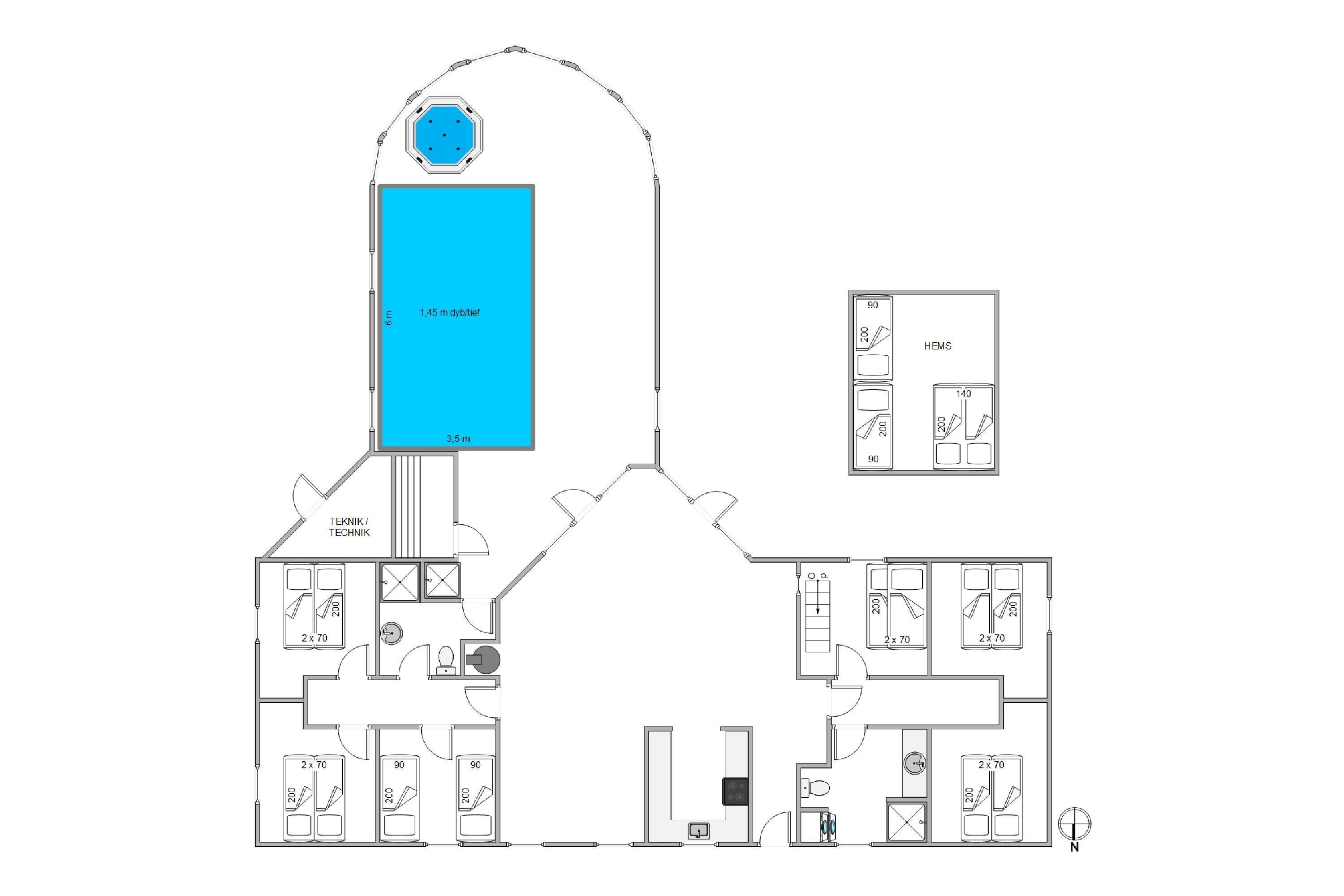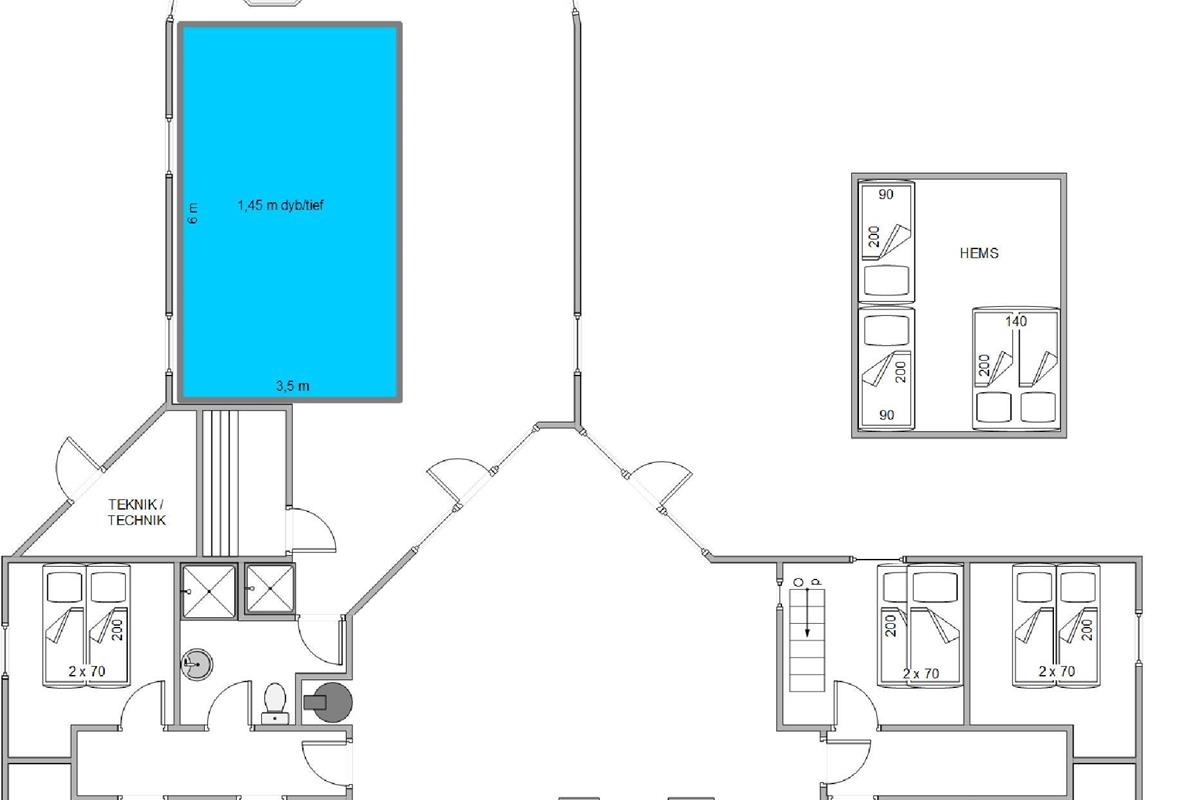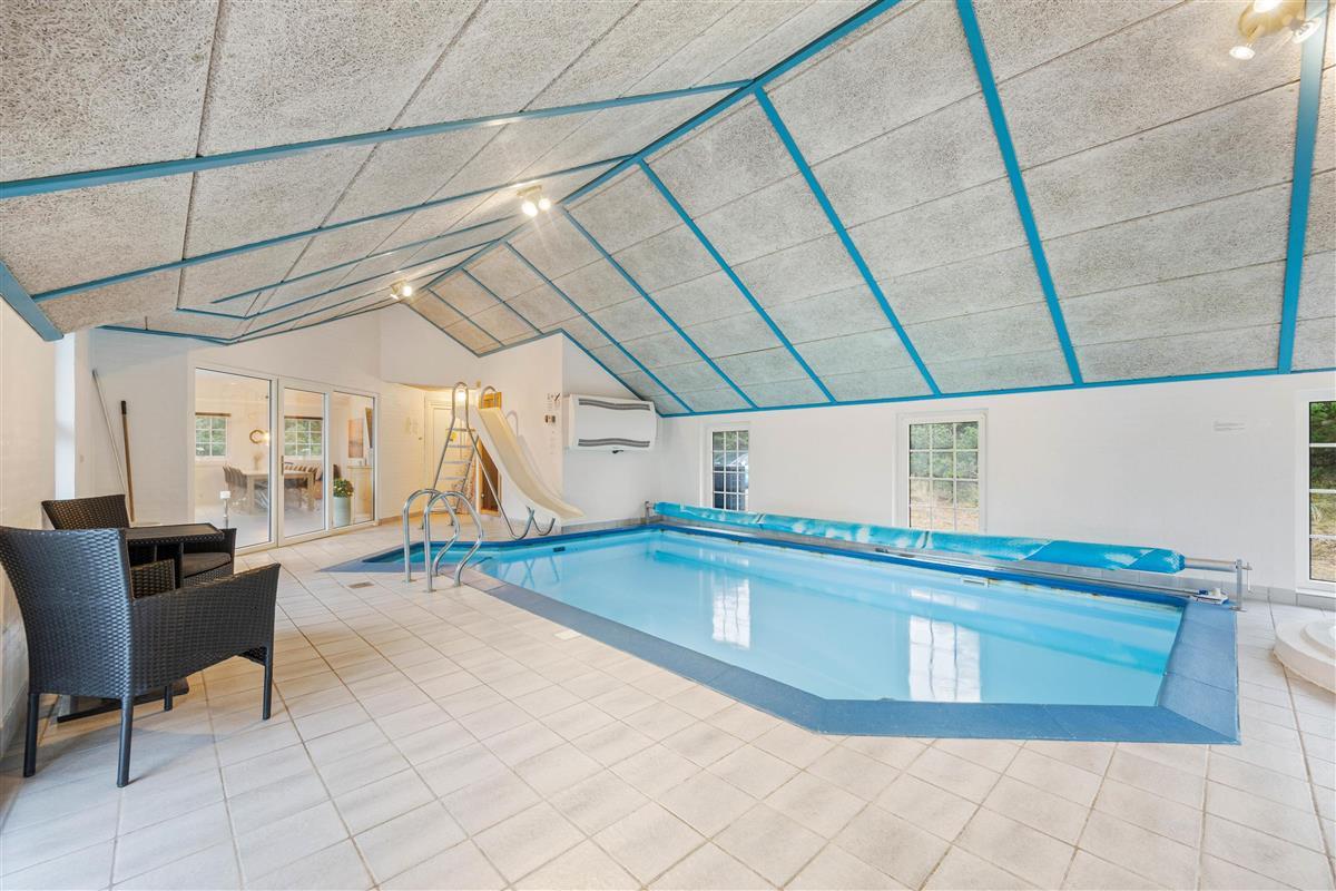 Looking for a spacious pool house in Søndervig that accommodates up to 14 people and offers numerous extras? This holiday home in Marehalmen 1, renovated in 2024, might be perfect for you. The holiday home welcomes two dogs and features a salt water swimming pool plus a hot tub that comfortably seats five people. Spread across 240 square metres, you'll find not only six bedrooms and a sleeping loft, but also a sauna and whirlpool.