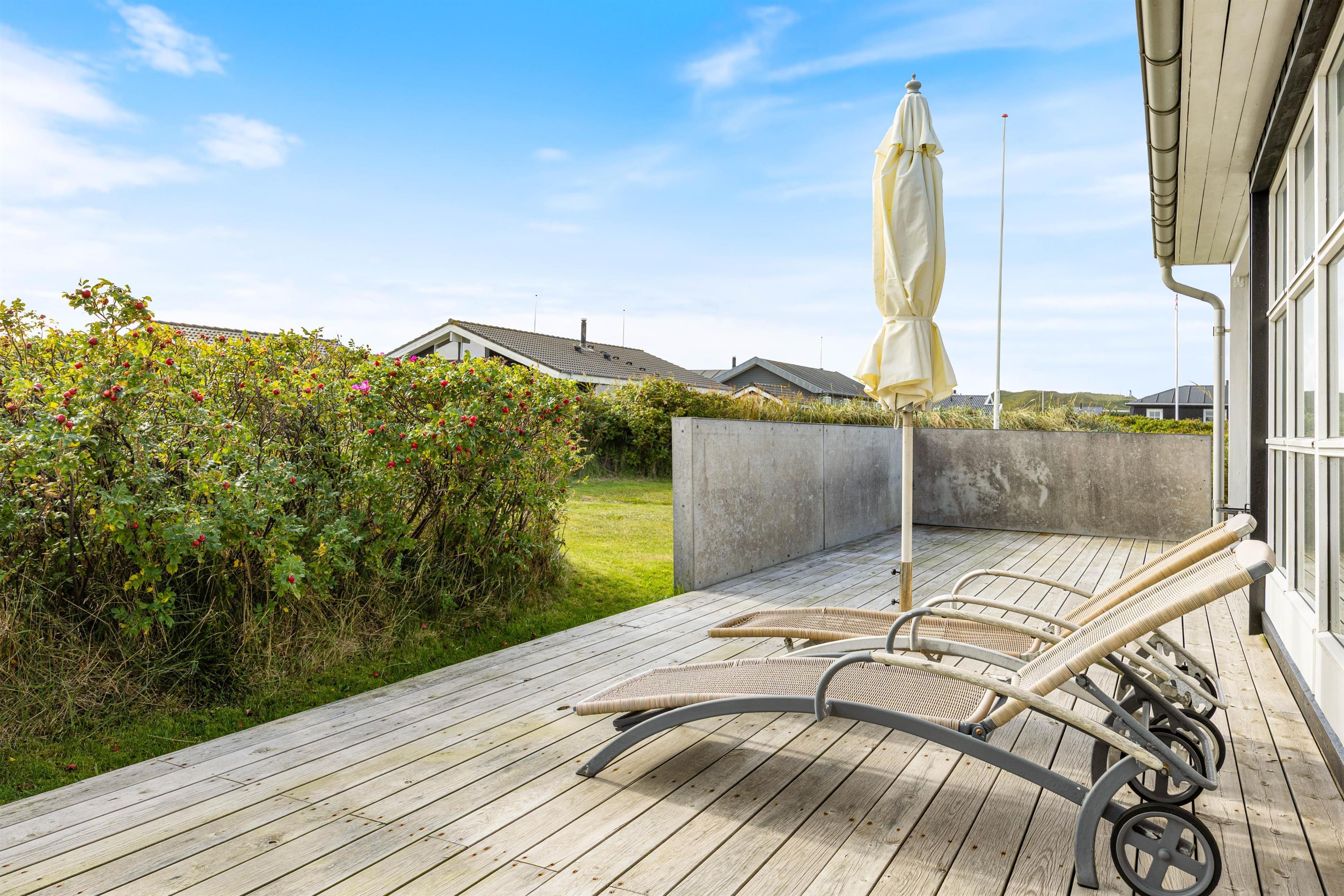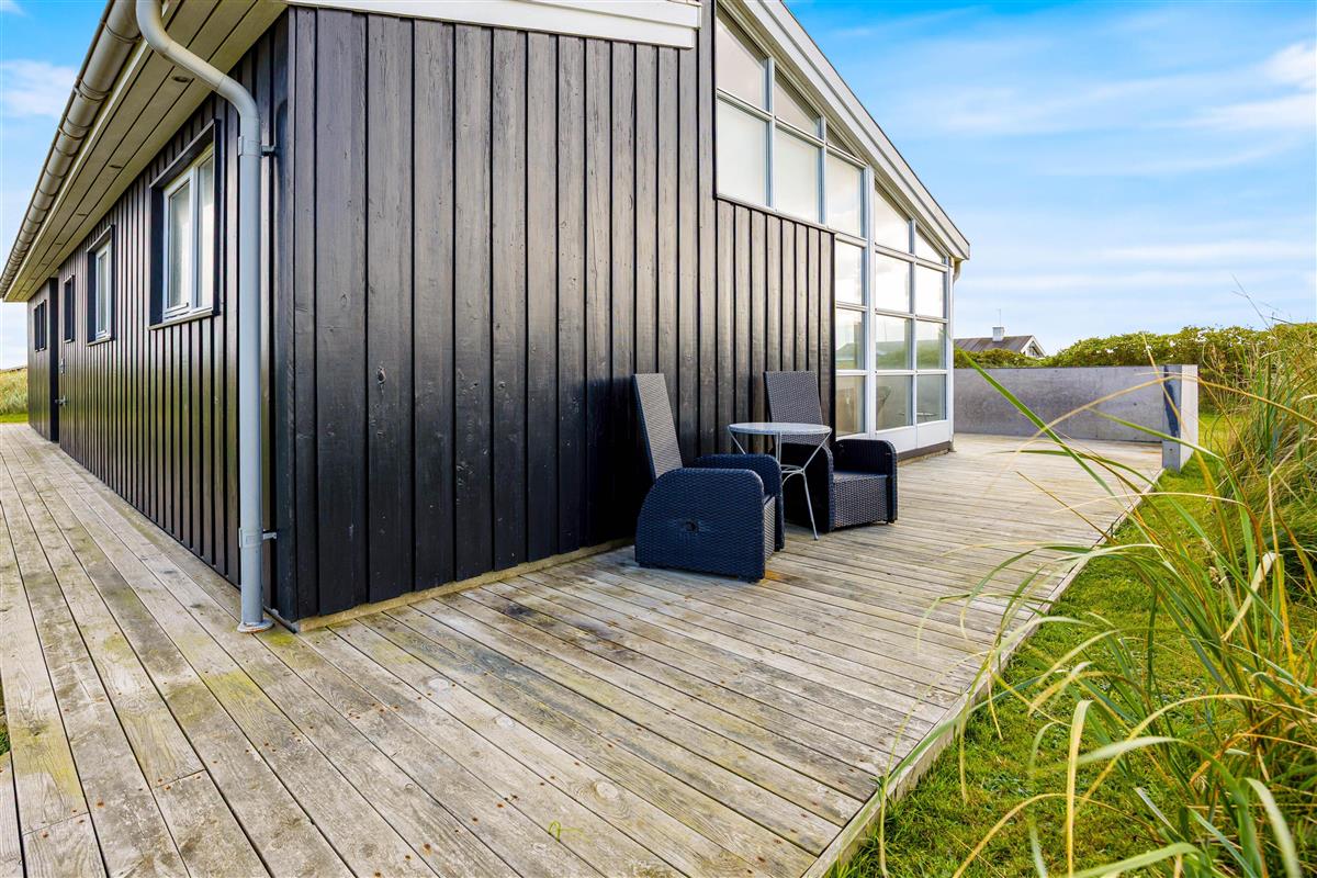 Inmitten der Natur bietet das Ferienhaus in Søndervig mehrere Möglichkeiten, um die frische Luft zu genießen. Auf der offenen Terrasse könnt ihr die sonnenreichen Tage mit einer Tasse Kaffee beginnen, während die abgeschirmte Terrasse ideal ist, um im privaten Rahmen zu entspannen. Auch bei etwas unbeständigerem Wetter seid ihr dank der überdachten Terrasse bestens geschützt. Die Gartenmöbel laden zu entspannten Grillabenden ein, während die Kinder das Naturgrundstück erkunden.