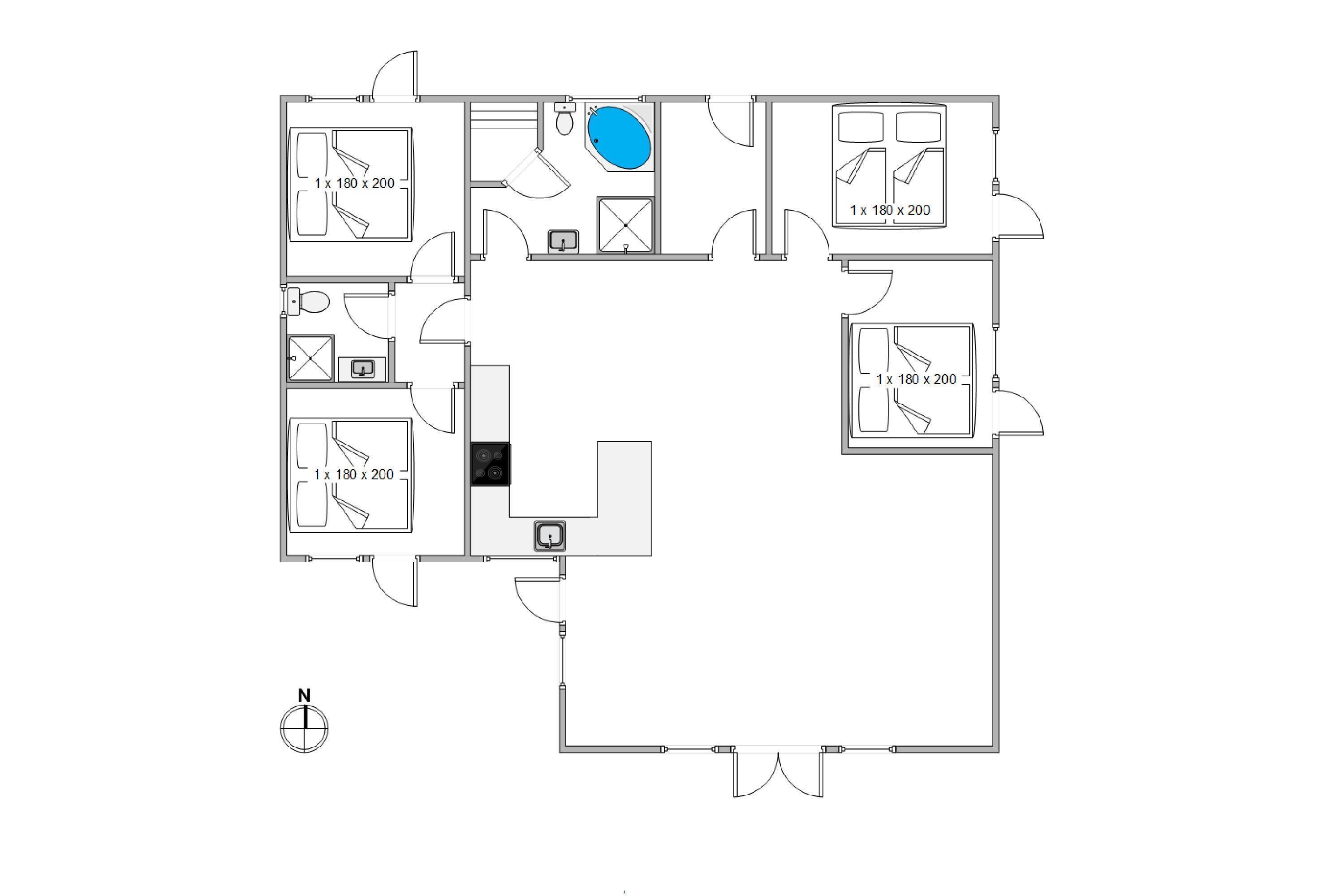 You can choose from four bedrooms, each fitted with a double bed. A special feature is that all bedrooms have terrace doors, allowing you to enjoy the fresh air first thing in the morning. Underfloor heating ensures your feet stay warm throughout.