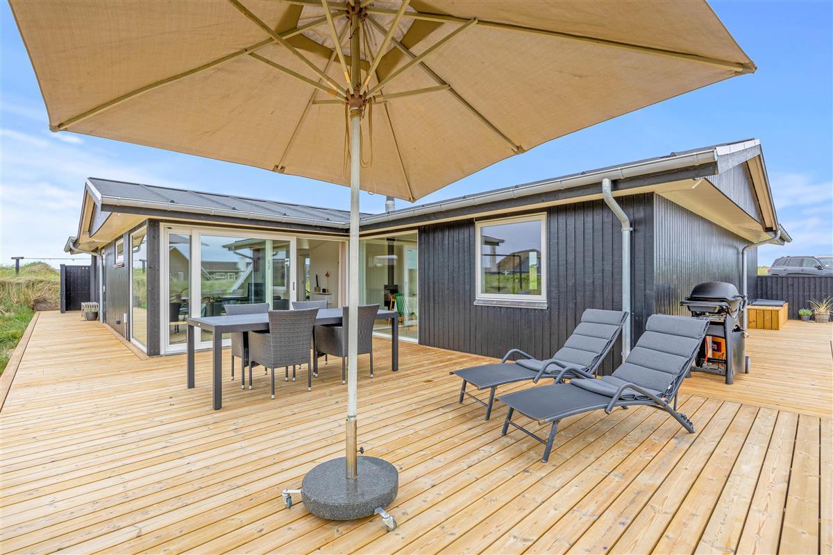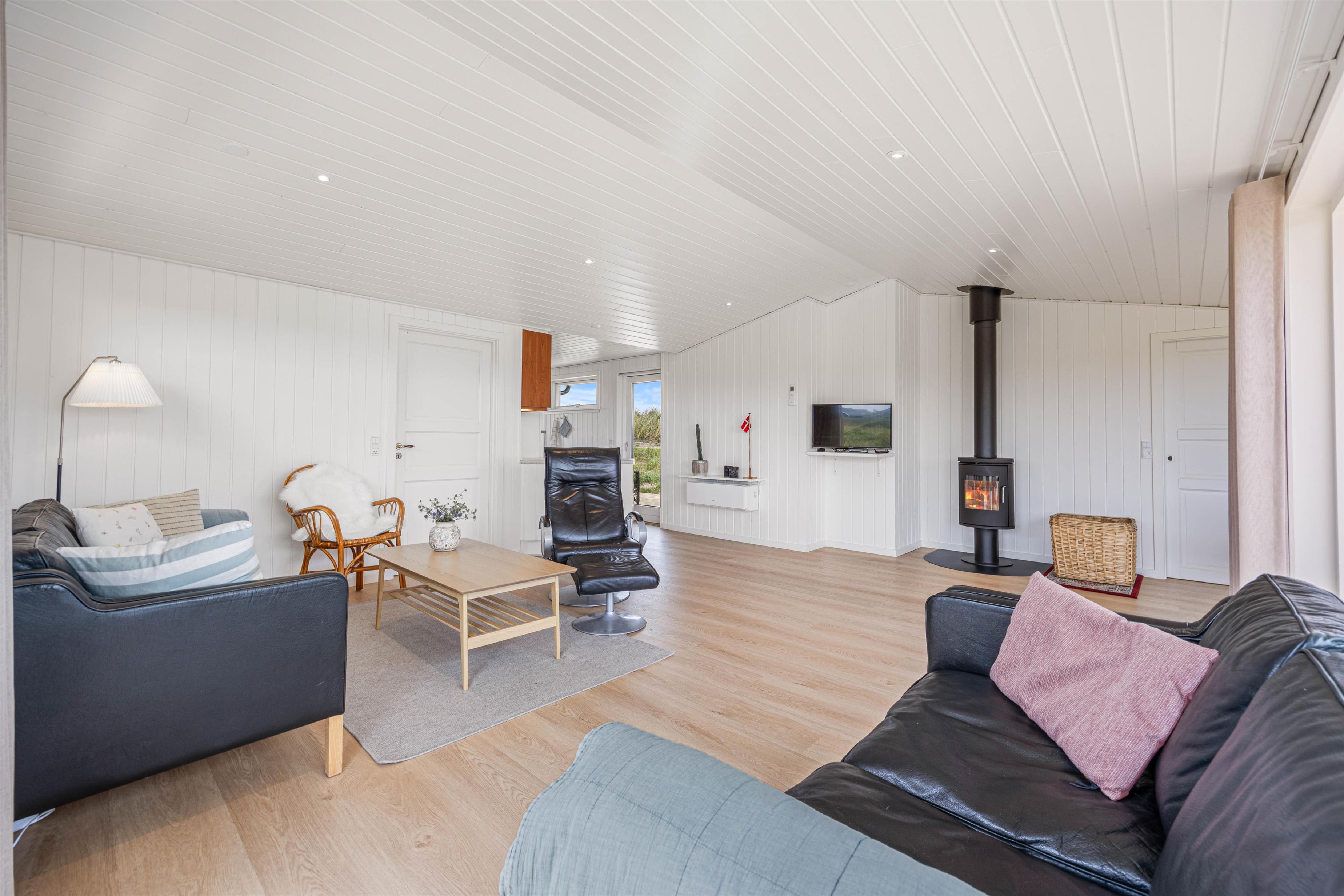 Looking for a peaceful holiday home close to the beach with space for up to 6 people? Then this cosy holiday home at Nordlysvej 13 might be perfect for you. Equipped with a wood-burning stove, heat pump, sauna and a beautiful terrace, this holiday home in Søndervig is ideal for a relaxing stay in any season.