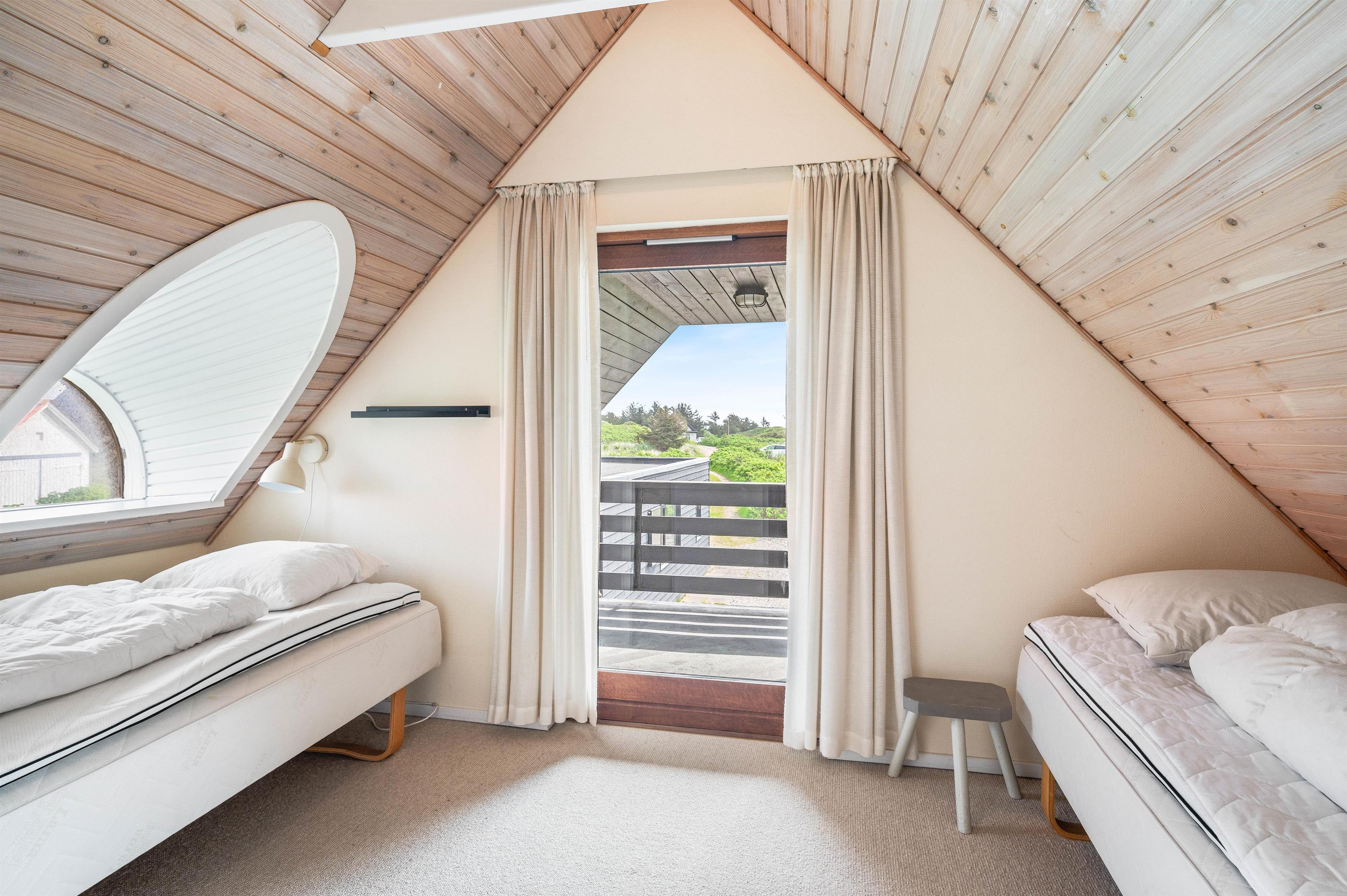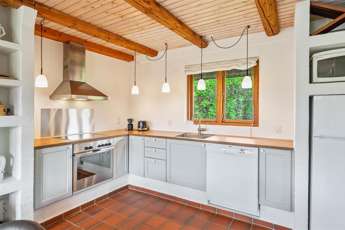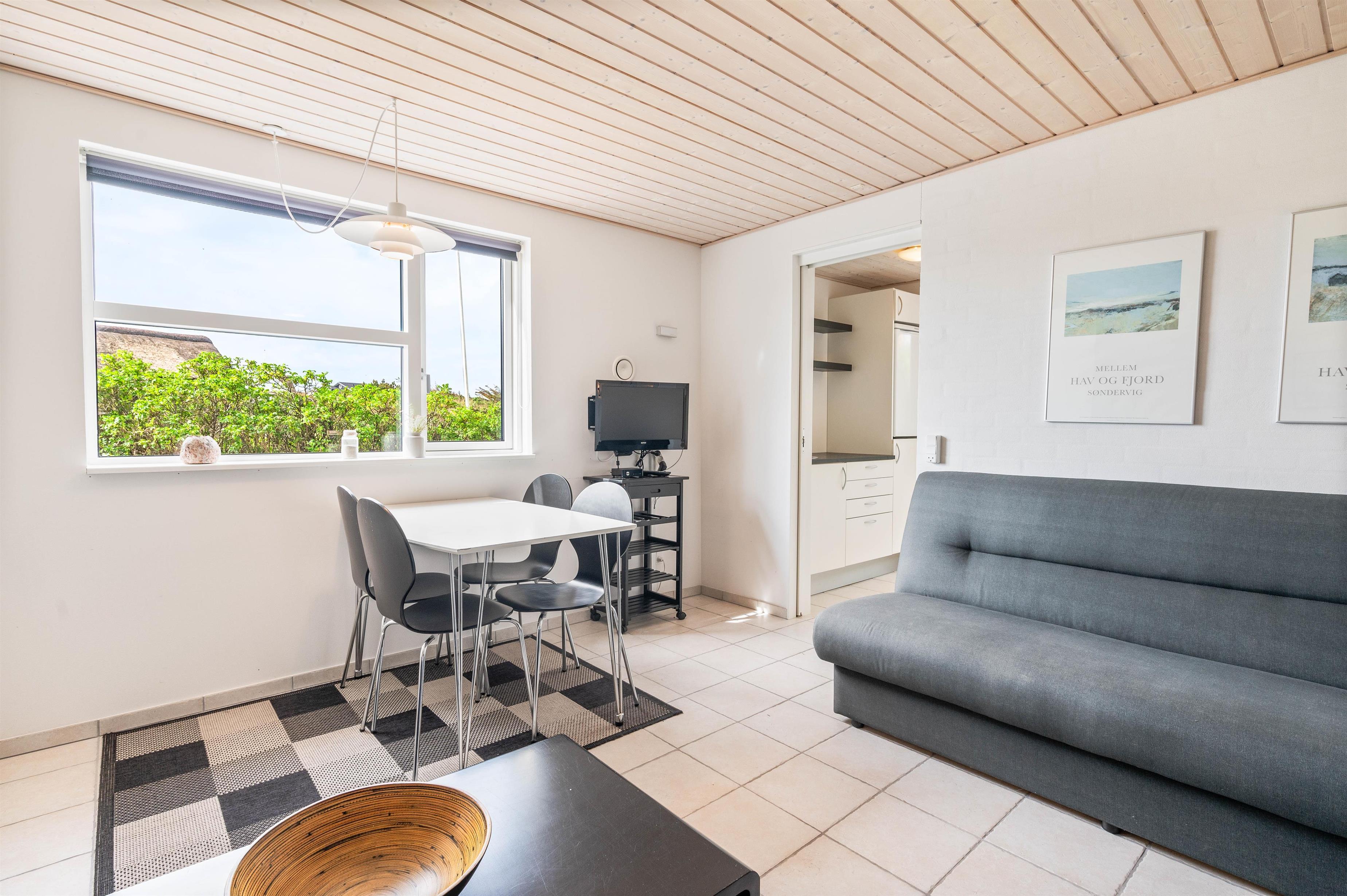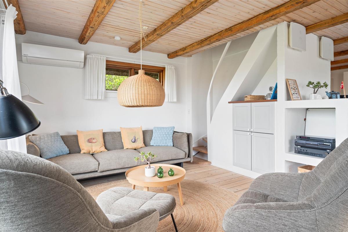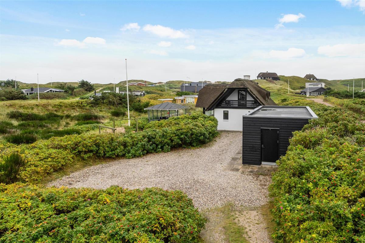 Renovated in 2020, this 140-square-metre holiday home at Plantagevej 21 in Søndervig exudes classic holiday charm. Features include wooden ceiling beams, large windows with window seats offering views over the holiday home landscape, and traditional country-style furnishings. The conservatory offers particularly good views across the surrounding holiday region.