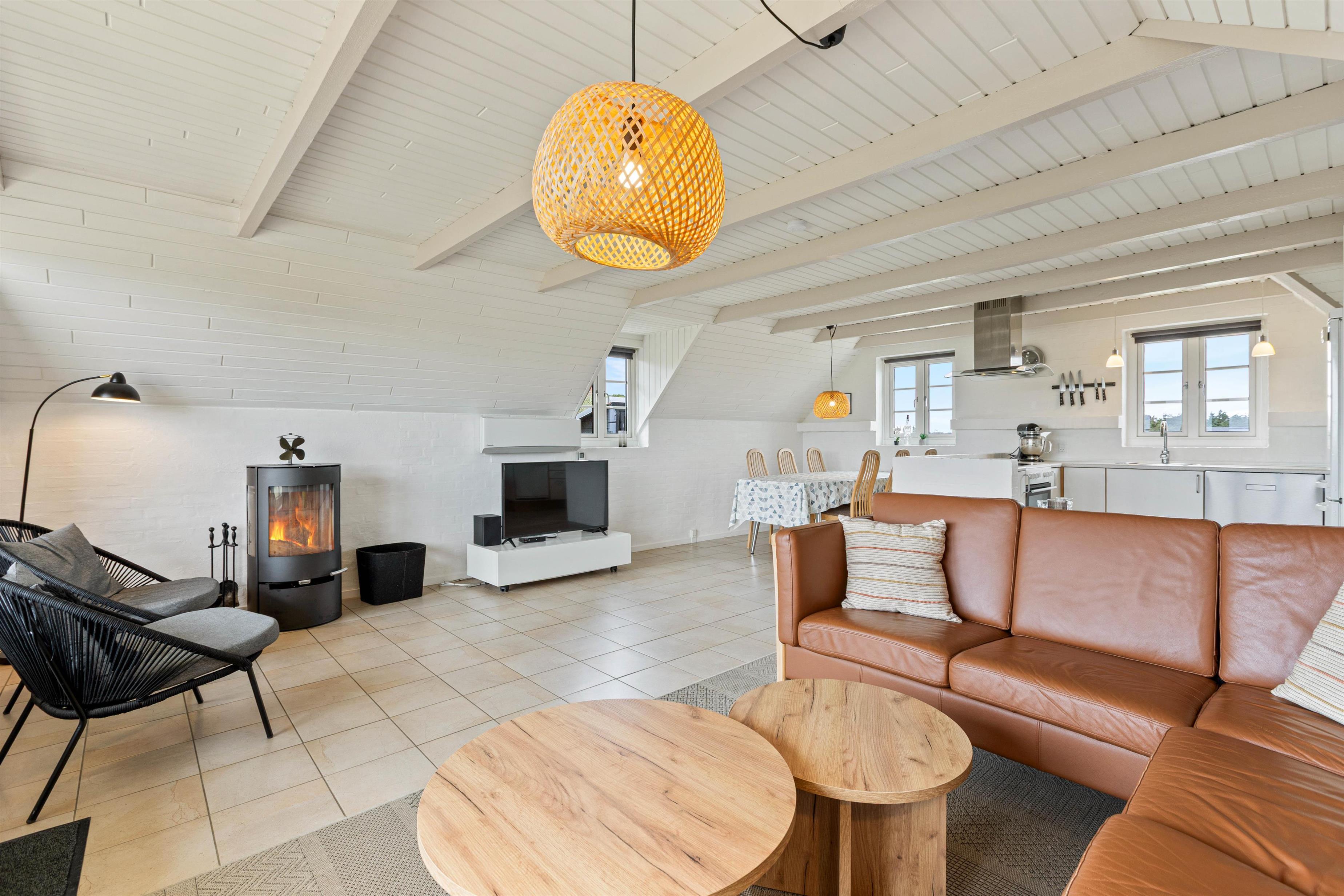 Beautifully situated at Marehalmen 73 in Søndervig, this cosy thatched holiday home offers panoramic views. It accommodates up to 6 people and 1 dog across 87 square metres. Being just 250 metres from the sea, you can enjoy fresh sea air daily and take short walks through the dunes to the breathtaking North Sea. Beyond its stunning views and location, the holiday home boasts excellent amenities including a sauna and wood-burning stove.