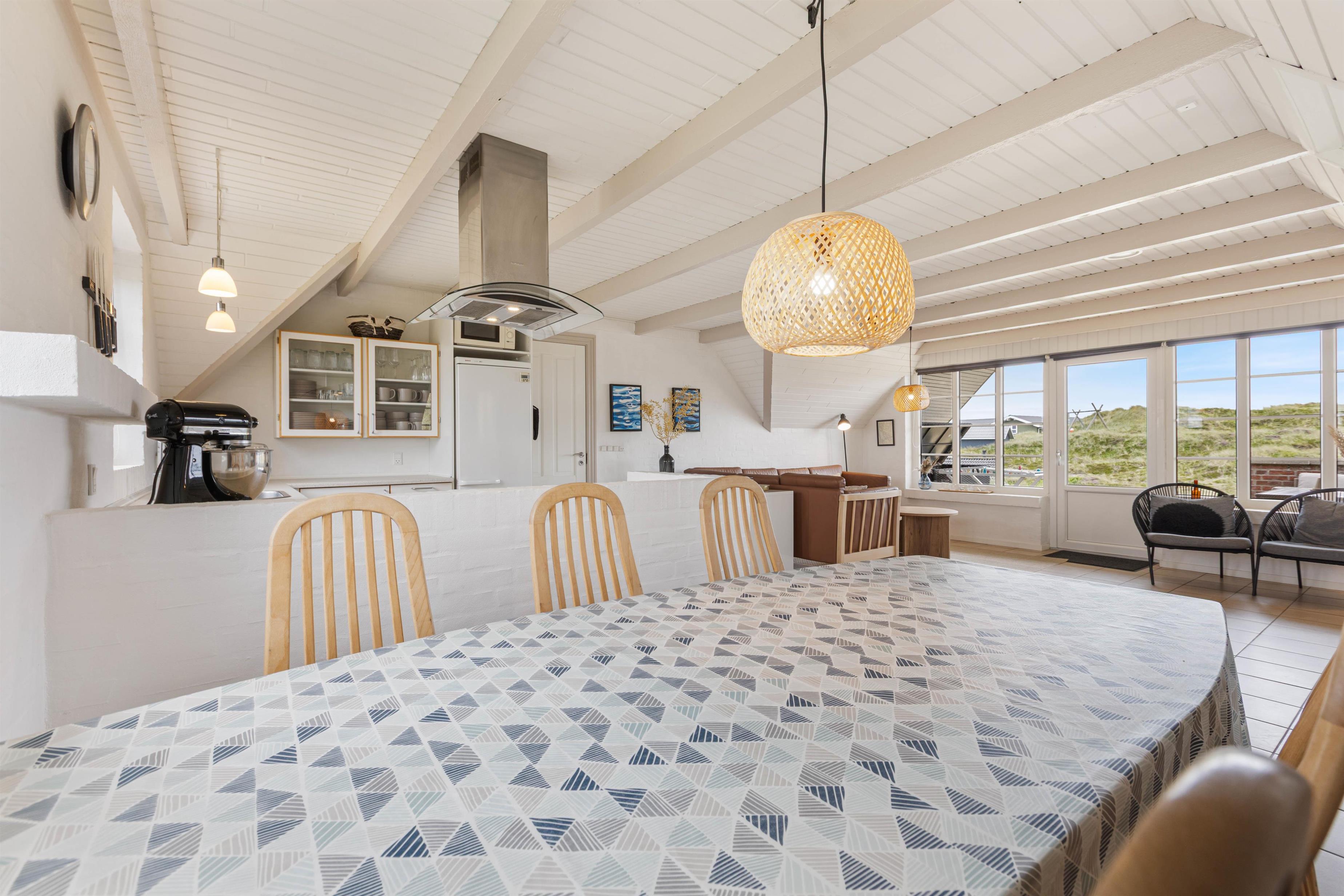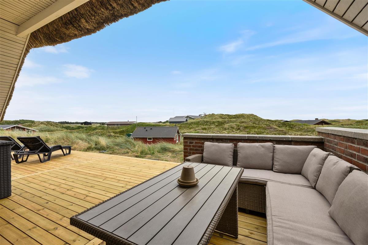 The holiday home's partially covered terrace allows you to spend time outdoors or barbecue even on rainy days. Thanks to its slightly elevated position on a dune, you'll enjoy magnificent panoramic views and a sense of privacy and connection with nature. When the sun shines, the sun loungers invite you to enjoy extended sunbathing. The sea and the wide, seemingly endless sandy beach are just 250 metres away.