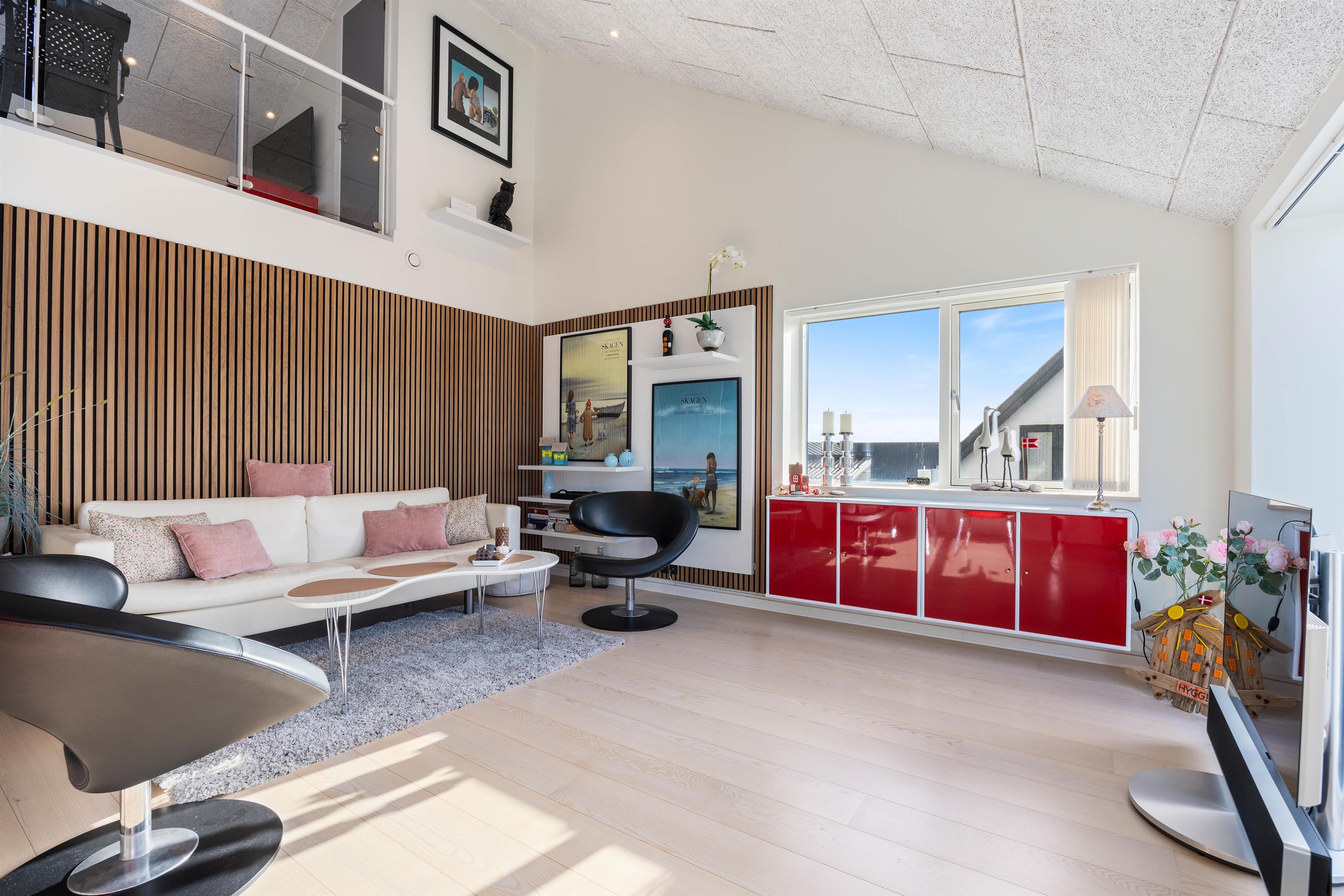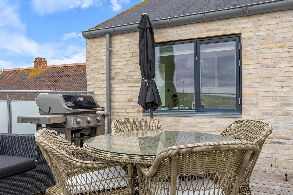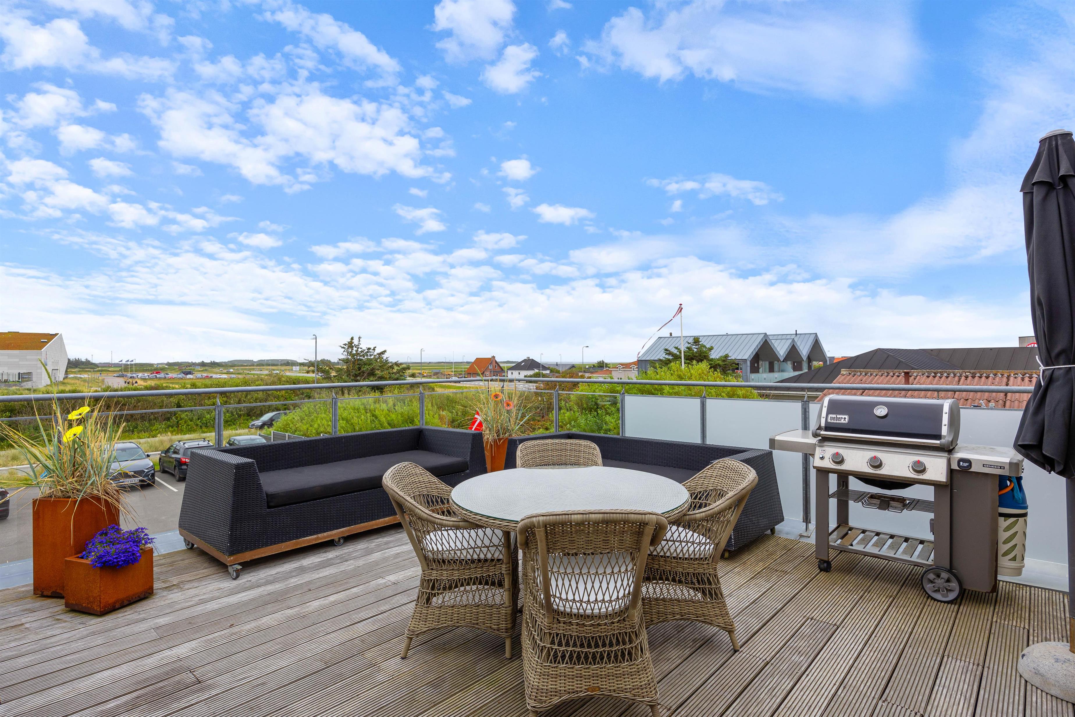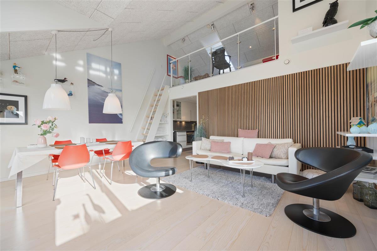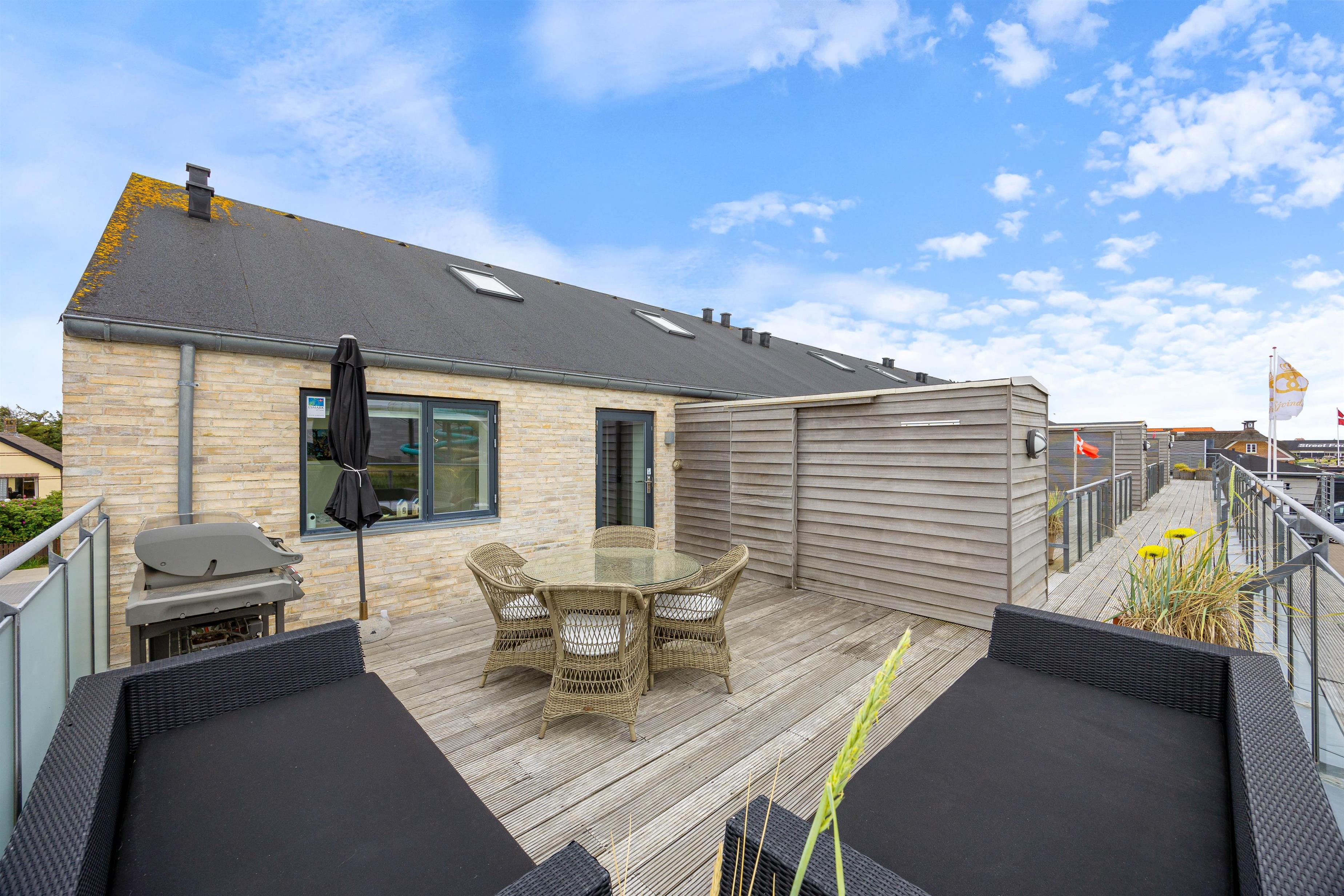 From the living area, you can access the open, sheltered terrace overlooking the bustle of Søndervig. The terrace is furnished with suitable outdoor furniture, perfect for relaxing and enjoying the sunshine. In the evening, you can round off a wonderful day with a casual barbecue using the gas grill.