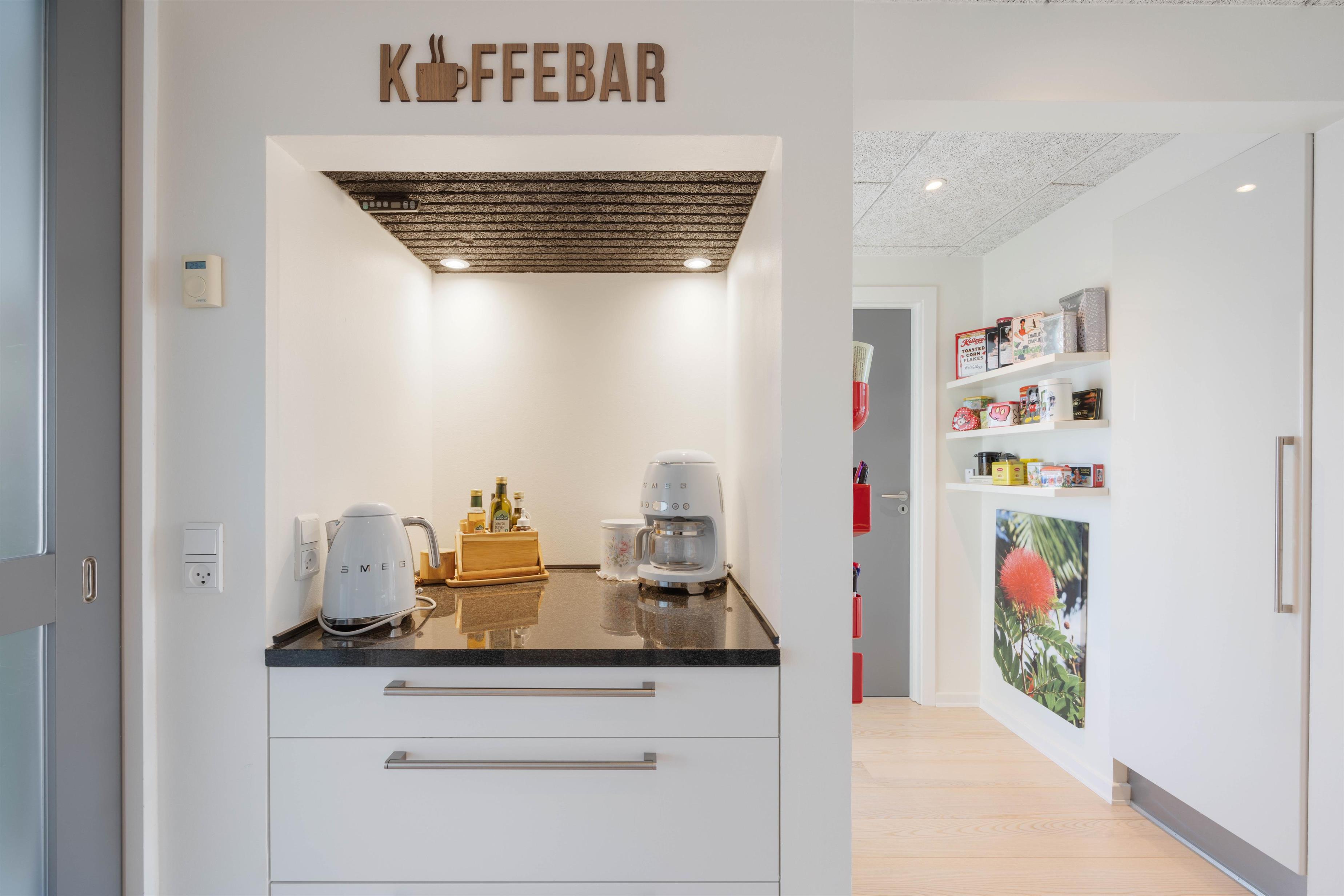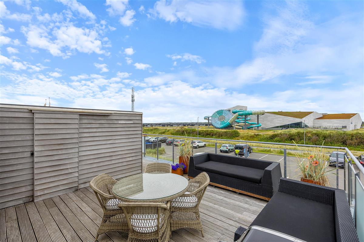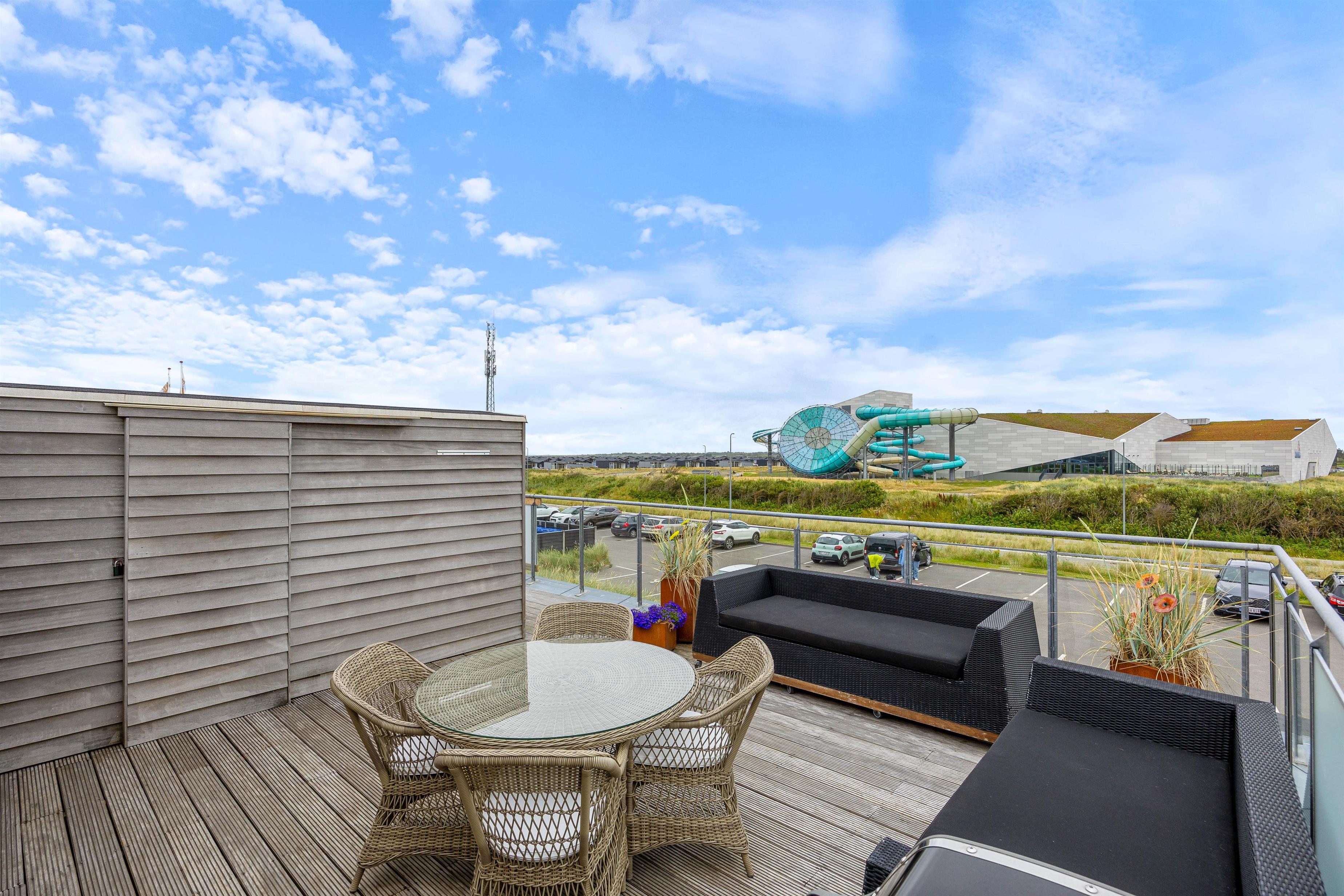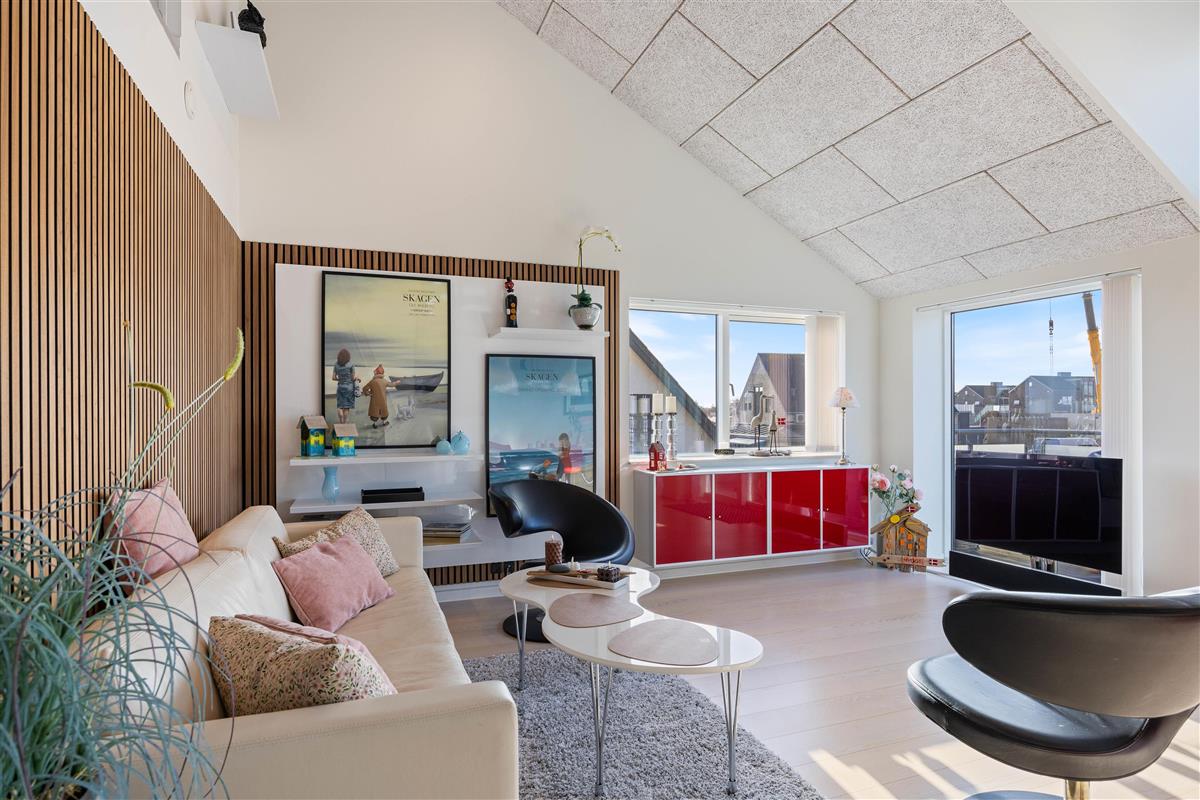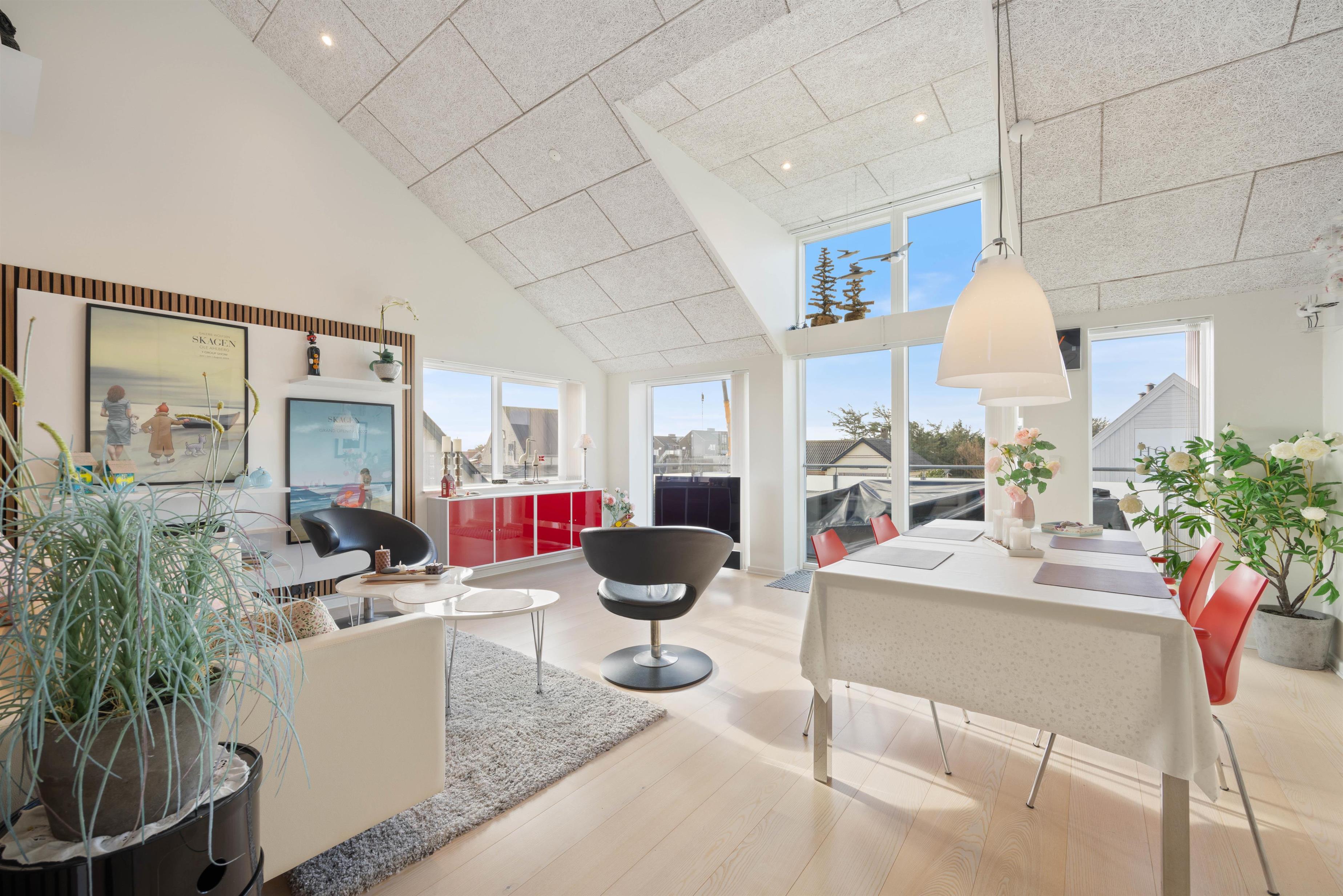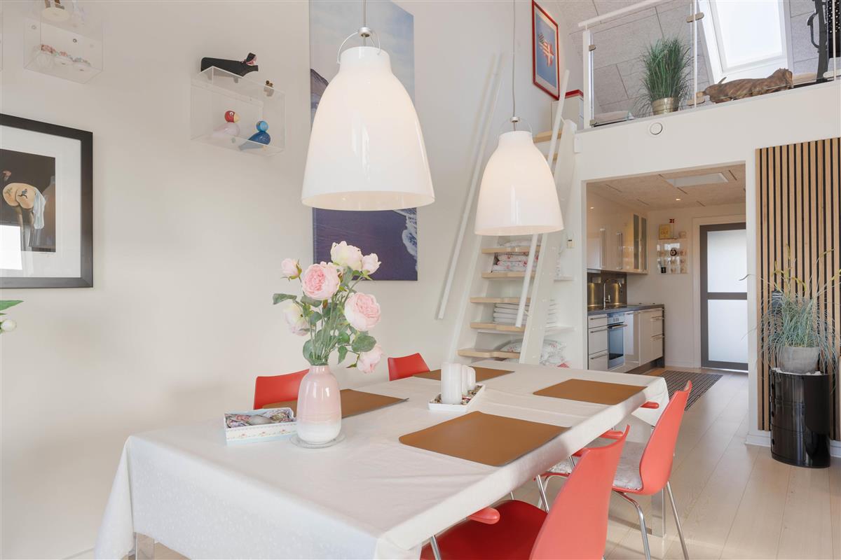 From the living area, you can access the open, sheltered terrace overlooking the bustle of Søndervig. The terrace is furnished with suitable outdoor furniture, perfect for relaxing and enjoying the sunshine. In the evening, you can round off a wonderful day with a casual barbecue using the gas grill.
